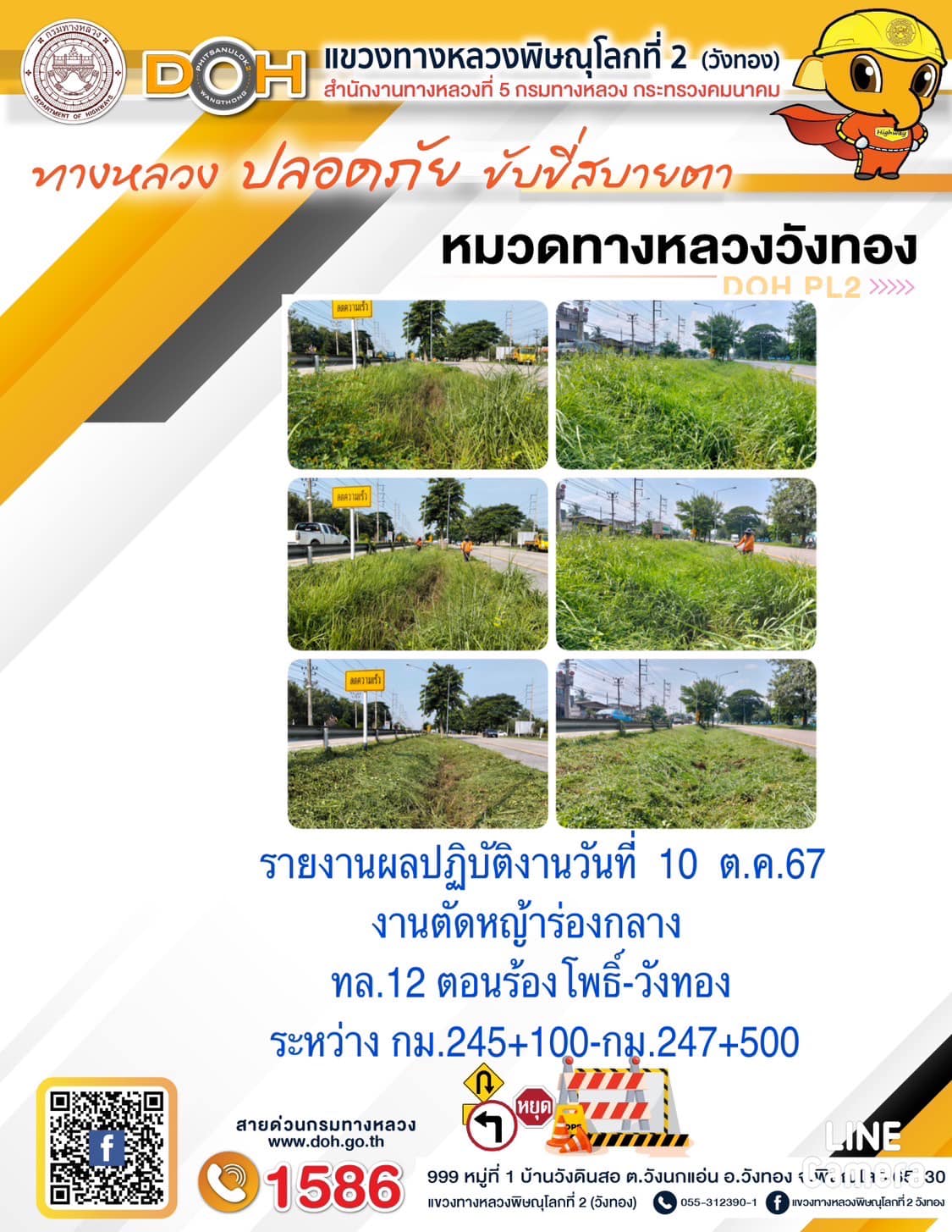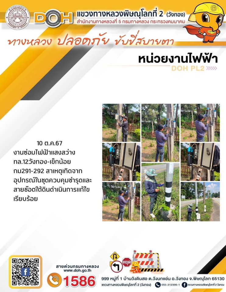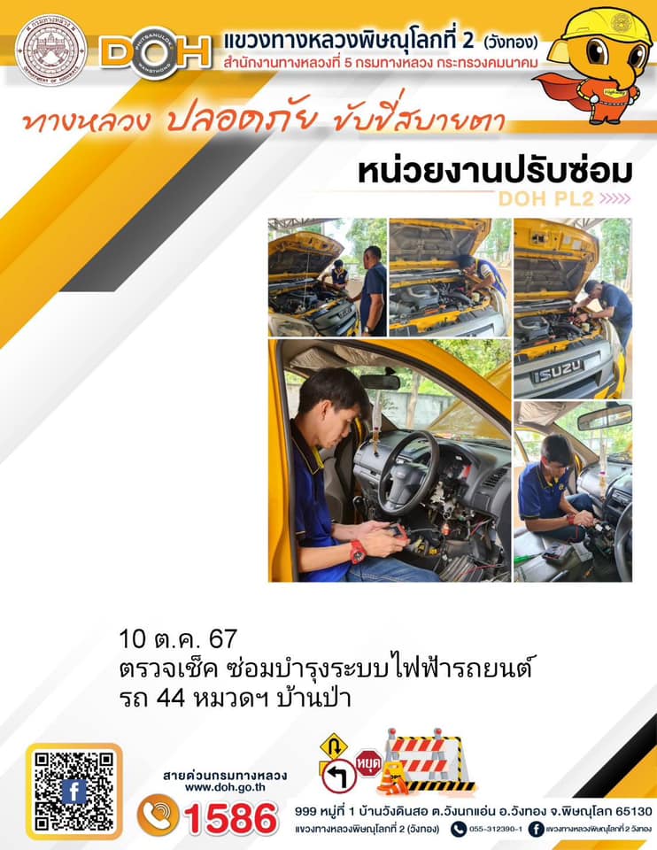การปฏิบัติงานของ หมวดทางหลวง และ หน่วยงานในสังกัด เพื่ออำนวยความสะดวก และปลอดภัยให้กับประชาชนผู้ใช้เส้นทาง ประจำ วันพฤหัสบดี ที่ 10 ตุลาคม 2567