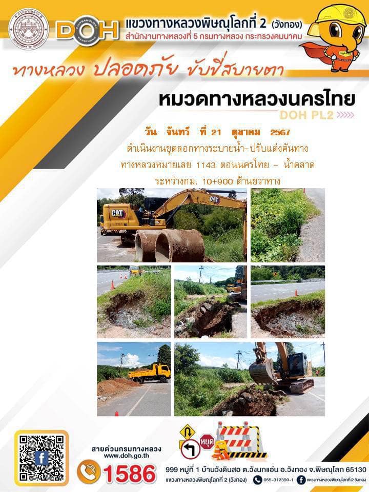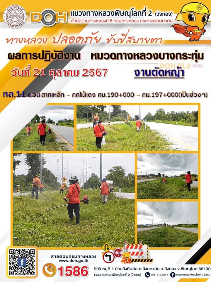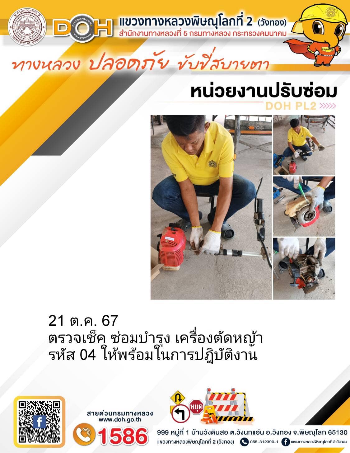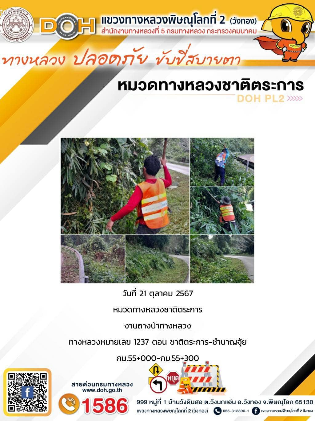 การปฏิบัติงานของ หมวดทางหลวง และ หน่วยงานในสังกัด เพื่ออำนวยความสะดวก และปลอดภัยให้กับประชาชนผู้ใช้เส้นทาง ประจำ วันจันทร์ ที่ 21 ตุลาคม 2567