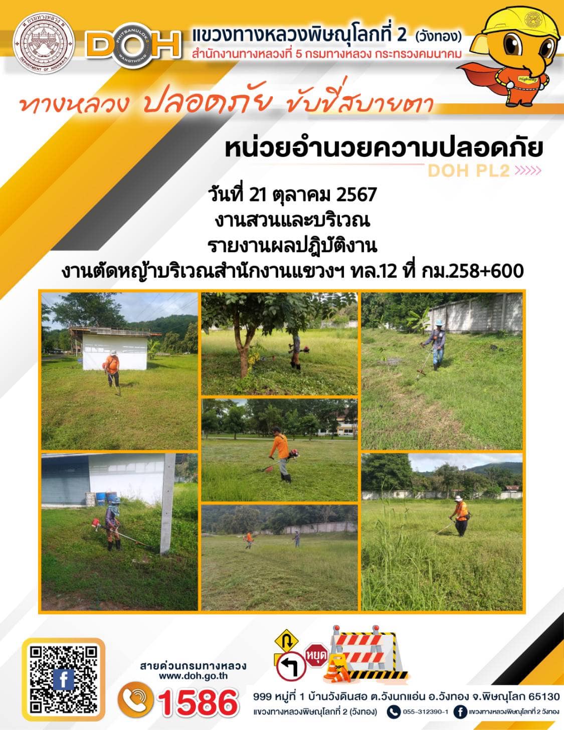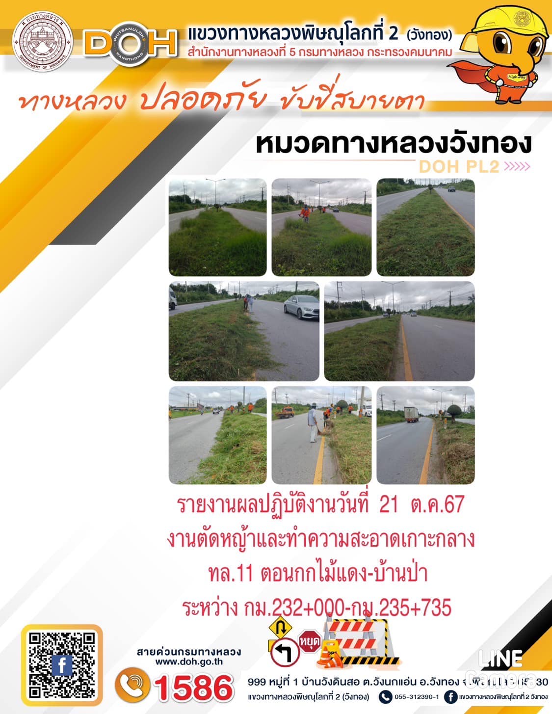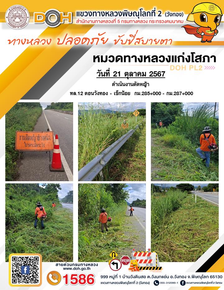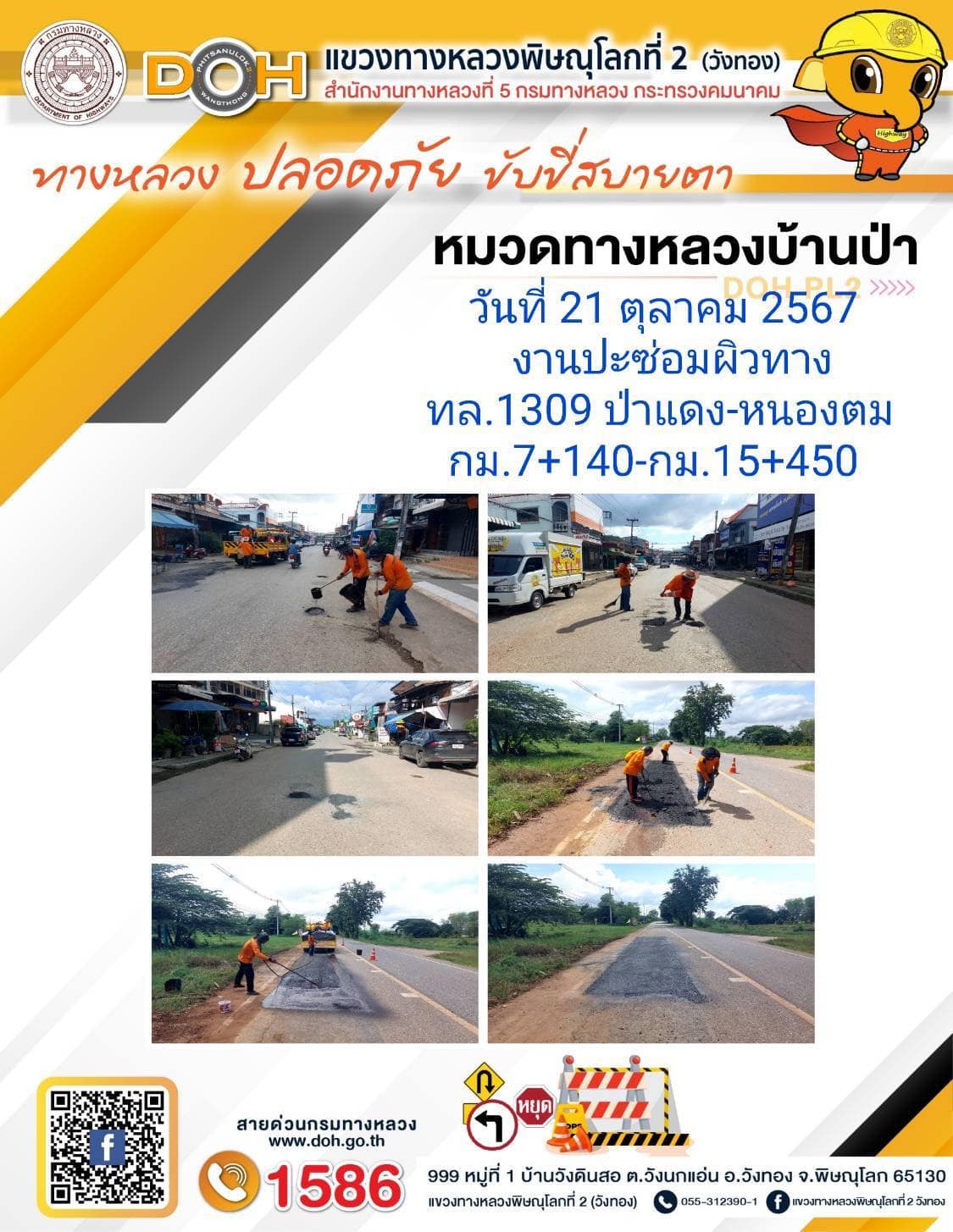 การปฏิบัติงานของ หมวดทางหลวง และ หน่วยงานในสังกัด เพื่ออำนวยความสะดวก และปลอดภัยให้กับประชาชนผู้ใช้เส้นทาง ประจำ วันจันทร์ ที่ 21 ตุลาคม 2567