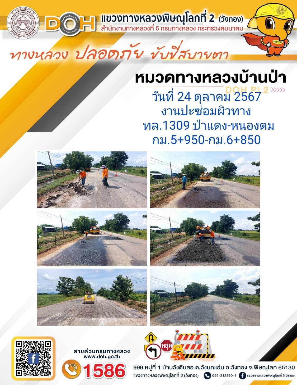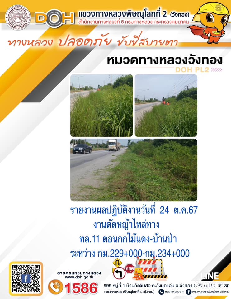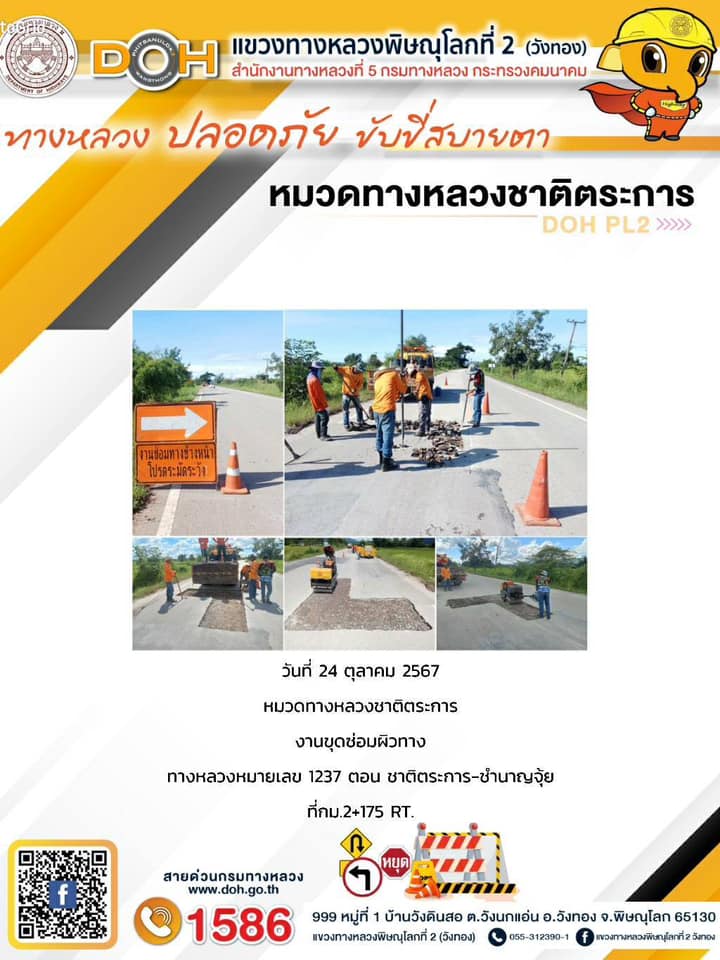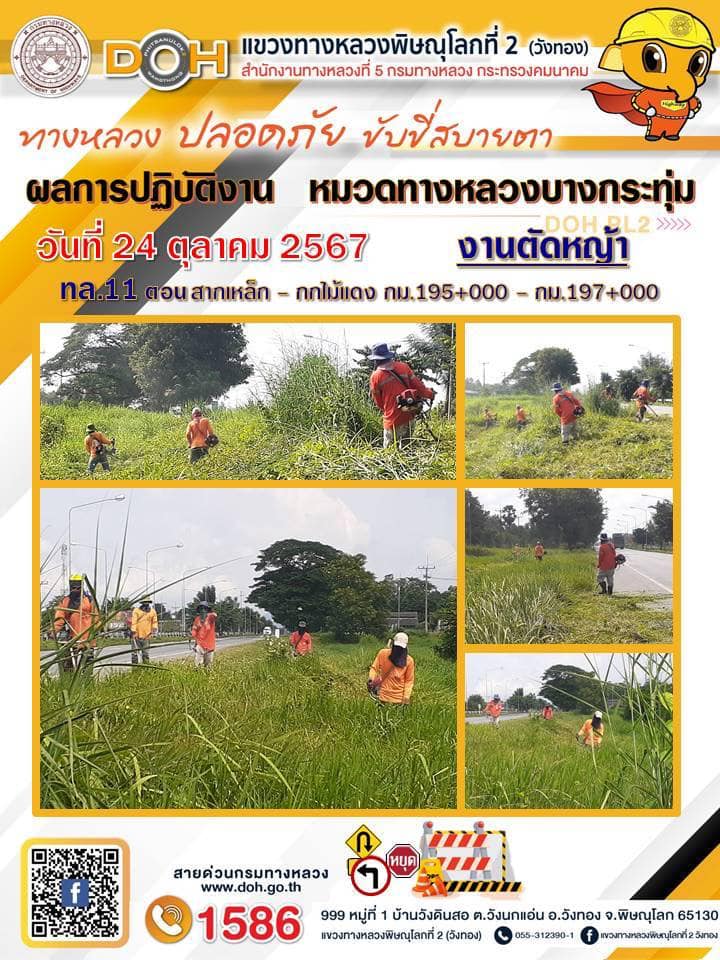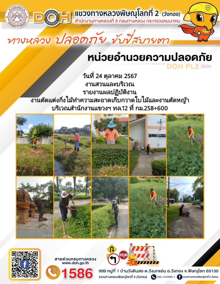 การปฏิบัติงานของ หมวดทางหลวง และ หน่วยงานในสังกัด เพื่ออำนวยความสะดวก และปลอดภัยให้กับประชาชนผู้ใช้เส้นทาง ประจำ วันพฤหัสบดีที่ 24 ตุลาคม 2567
