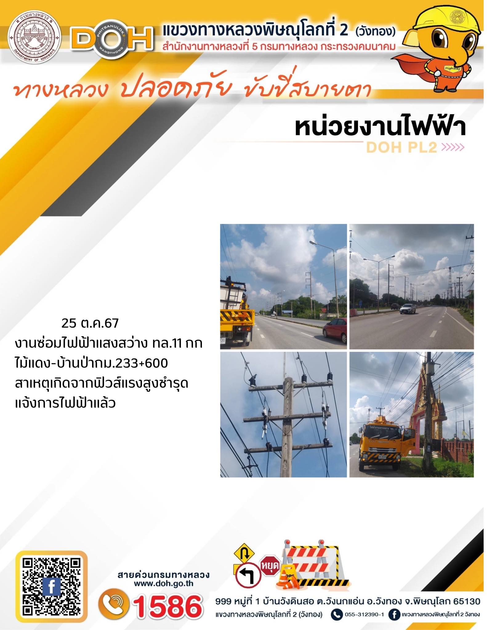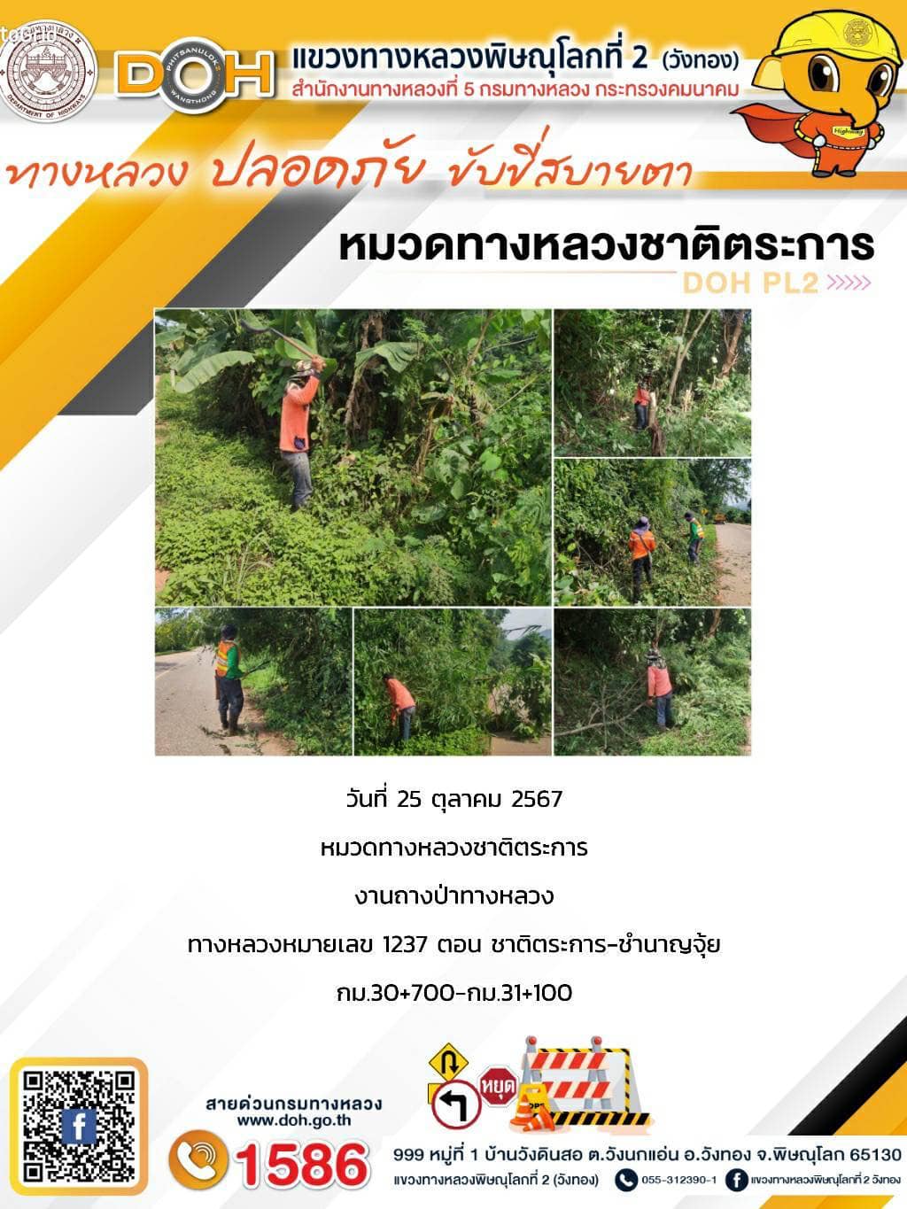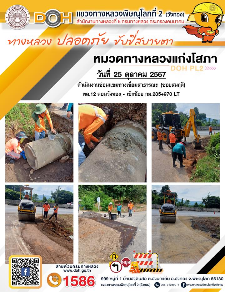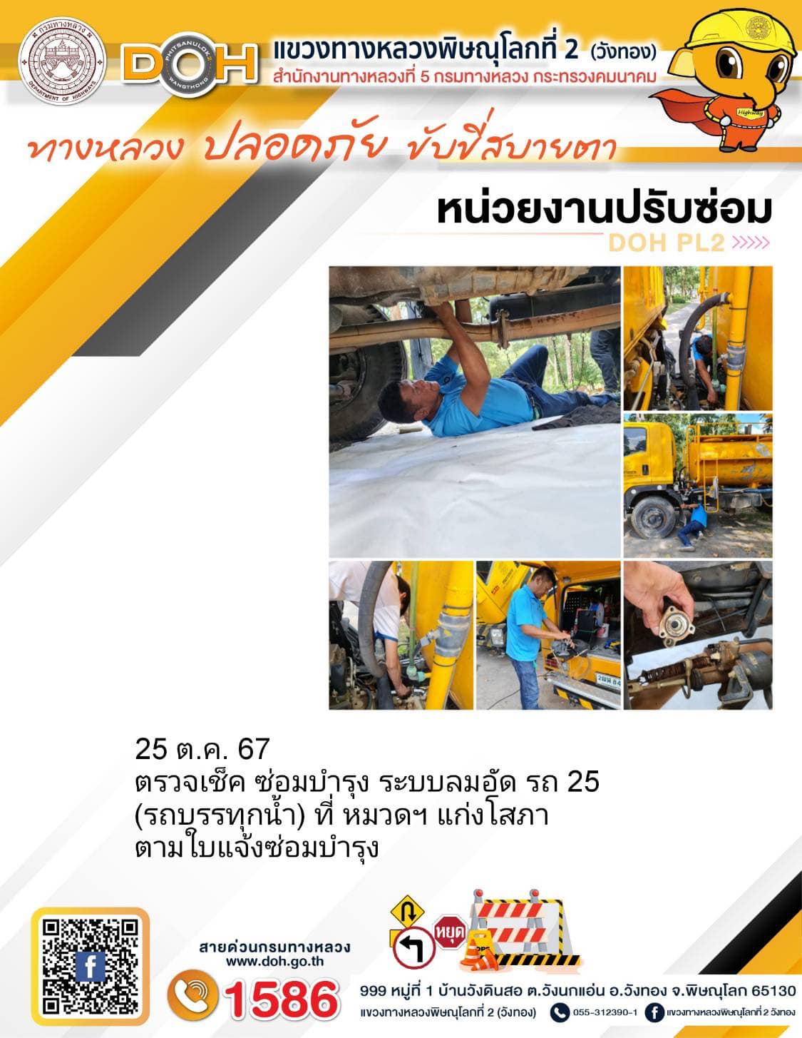 การปฏิบัติงานของ หมวดทางหลวง และ หน่วยงานในสังกัด เพื่ออำนวยความสะดวก และปลอดภัยให้กับประชาชนผู้ใช้เส้นทาง ประจำ วันศุกร์ ที่ 25 ตุลาคม 2567