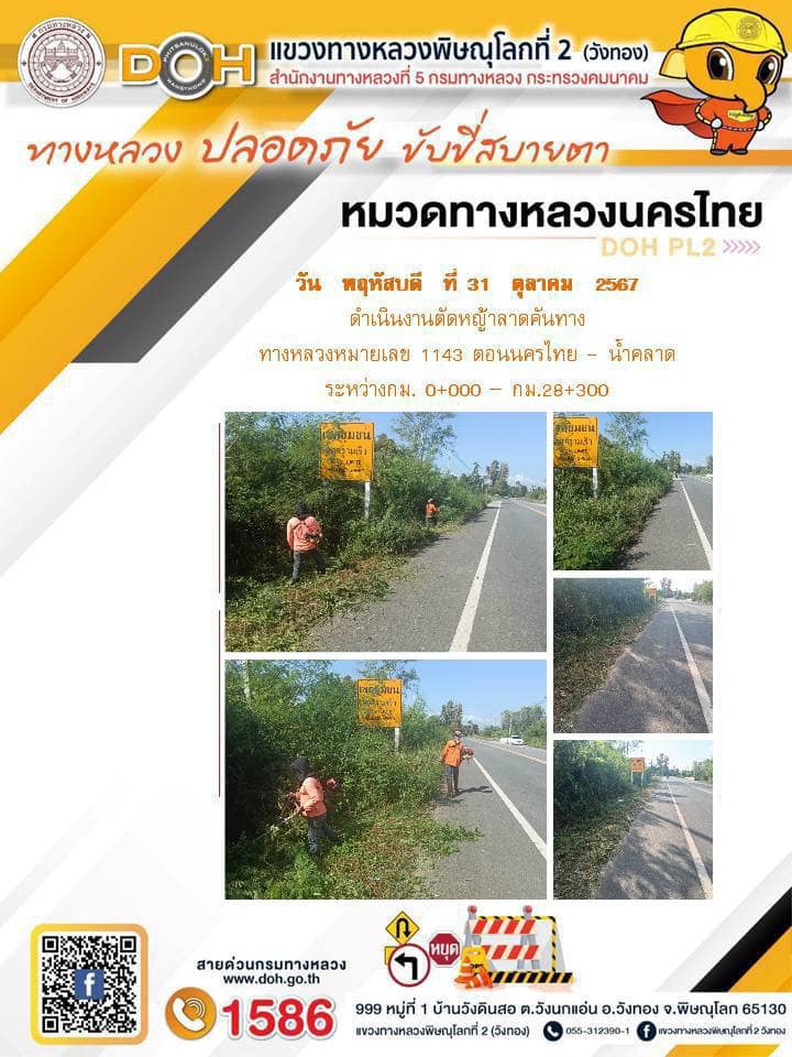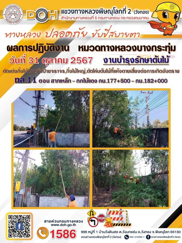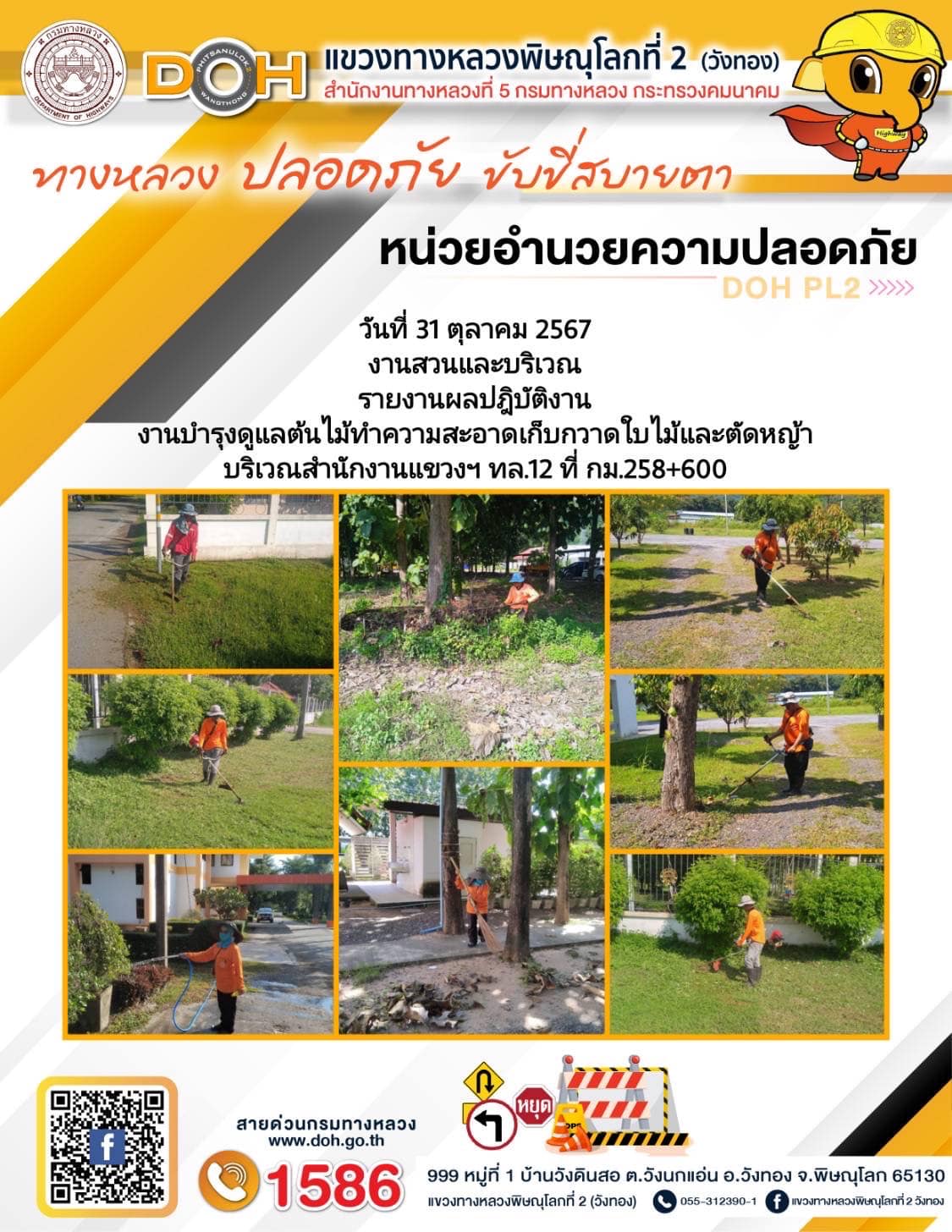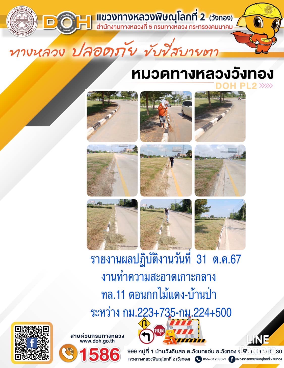 การปฏิบัติงานของ หมวดทางหลวง และ หน่วยงานในสังกัด เพื่ออำนวยความสะดวก และปลอดภัยให้กับประชาชนผู้ใช้เส้นทาง ประจำ วันพฤหัสบดี ที่ 31 ตุลาคม 2567