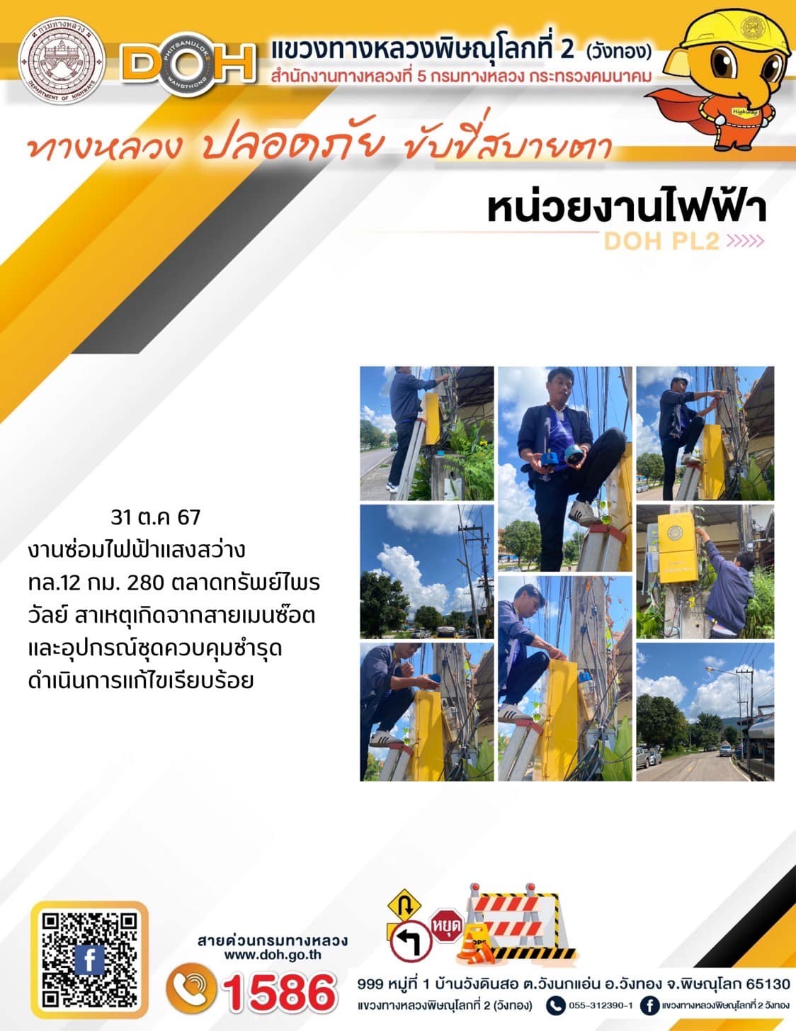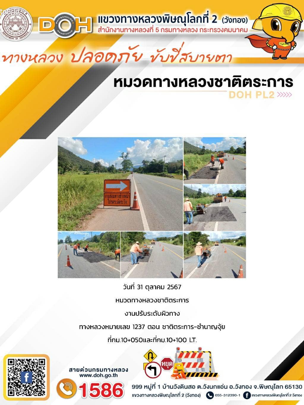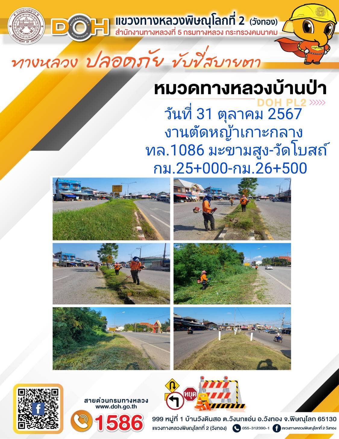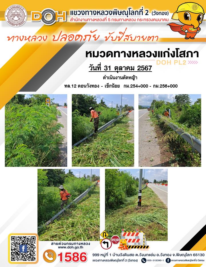 การปฏิบัติงานของ หมวดทางหลวง และ หน่วยงานในสังกัด เพื่ออำนวยความสะดวก และปลอดภัยให้กับประชาชนผู้ใช้เส้นทาง ประจำ วันพฤหัสบดี ที่ 31 ตุลาคม 2567