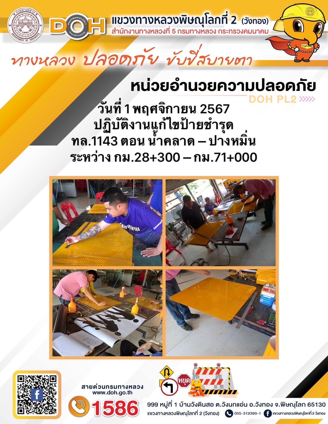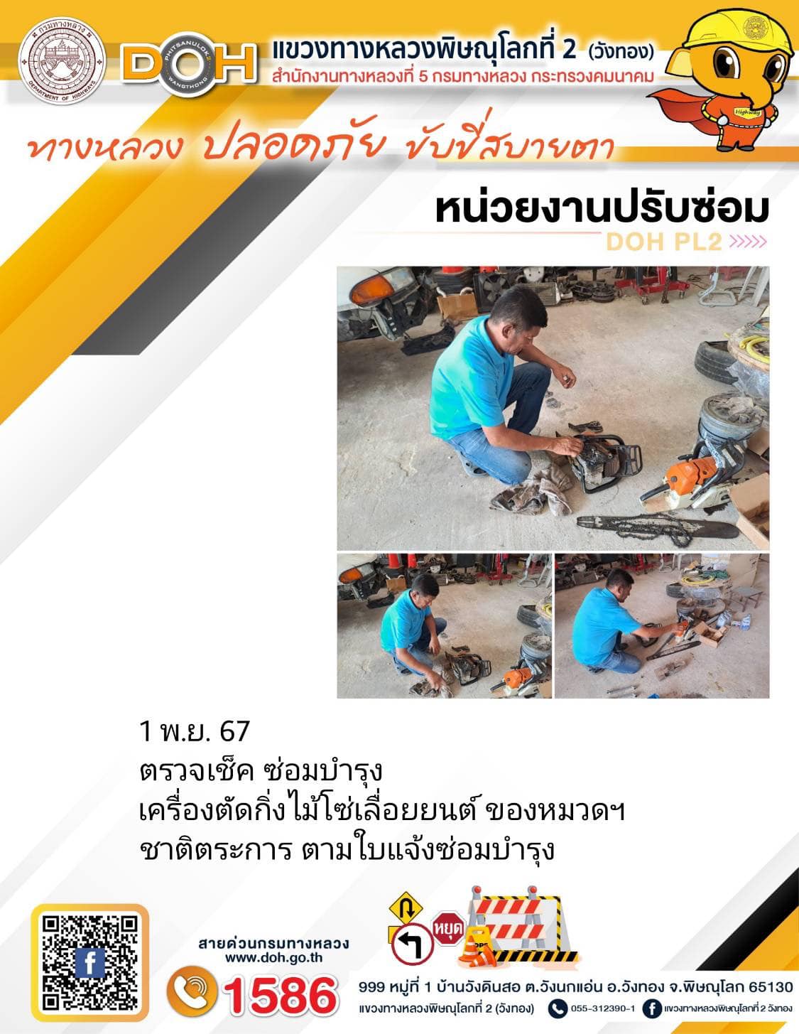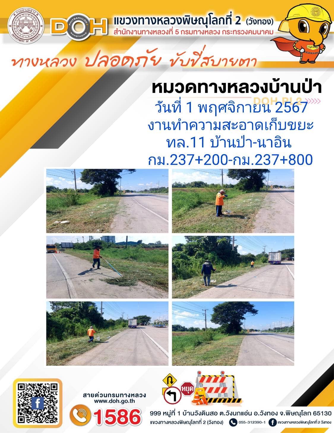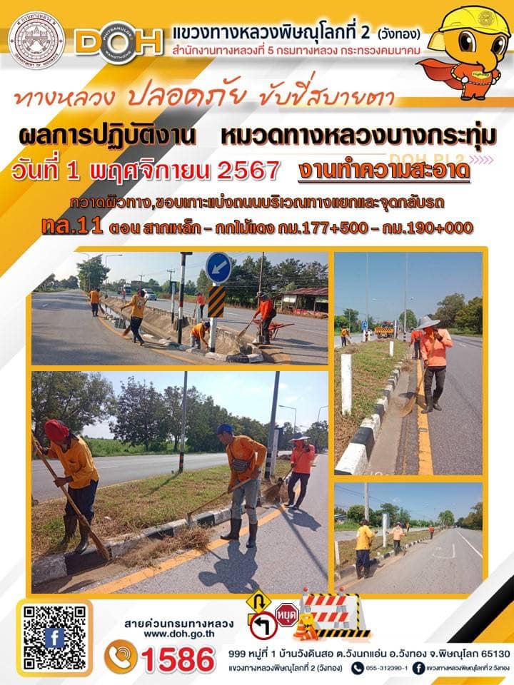 การปฏิบัติงานของ หมวดทางหลวง และ หน่วยงานในสังกัด เพื่ออำนวยความสะดวก และปลอดภัยให้กับประชาชนผู้ใช้เส้นทาง ประจำ วันศุกร์ ที่ 1 พฤศจิกายน 2567