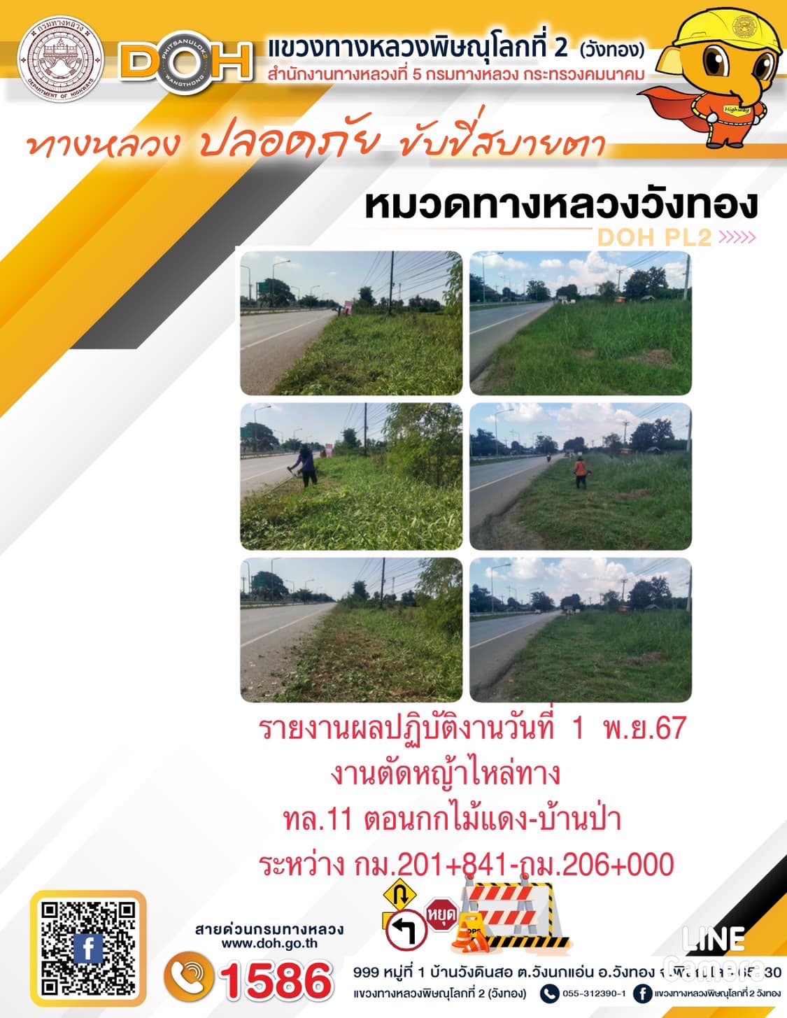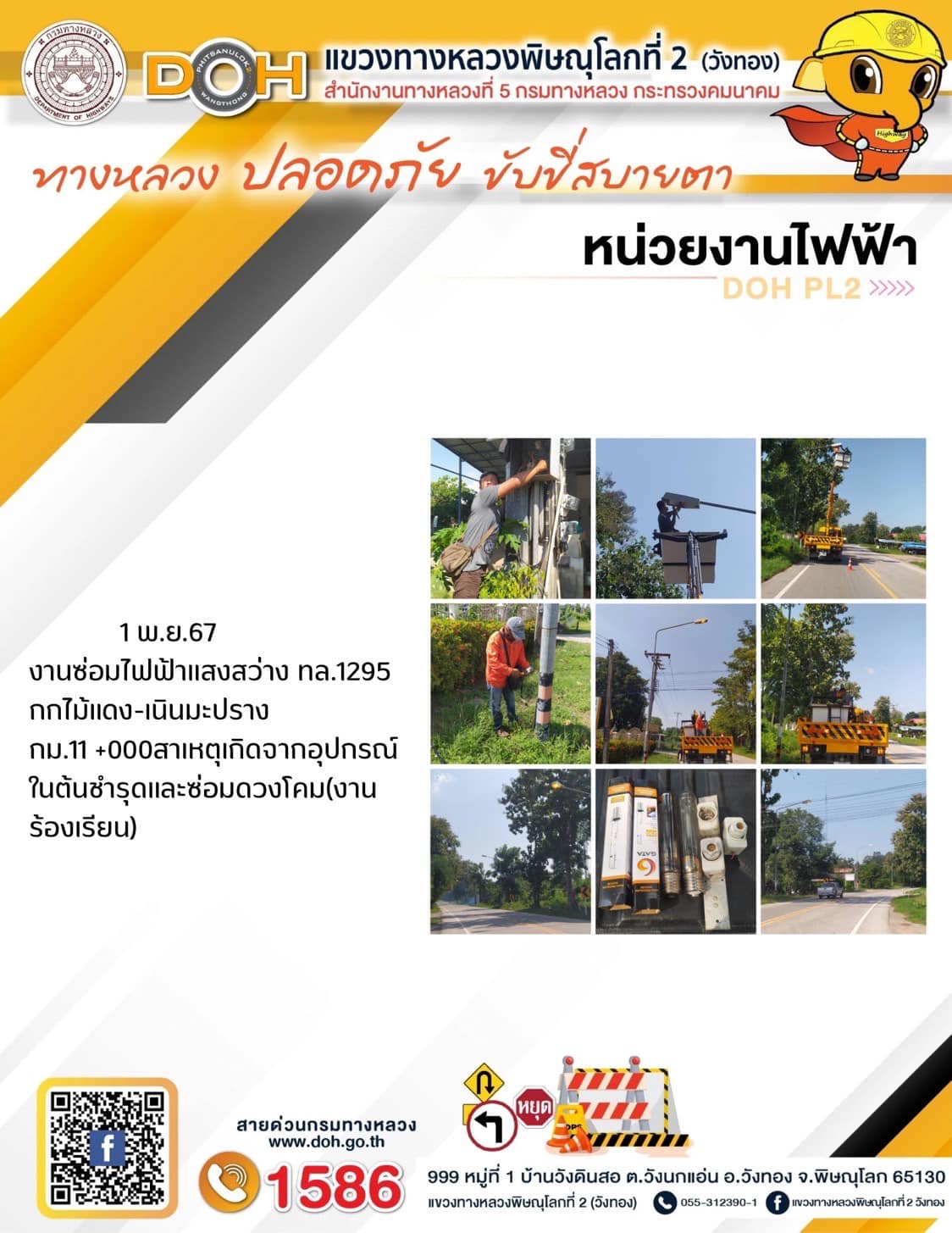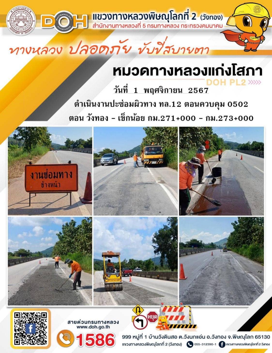 การปฏิบัติงานของ หมวดทางหลวง และ หน่วยงานในสังกัด เพื่ออำนวยความสะดวก และปลอดภัยให้กับประชาชนผู้ใช้เส้นทาง ประจำ วันศุกร์ ที่ 1 พฤศจิกายน 2567