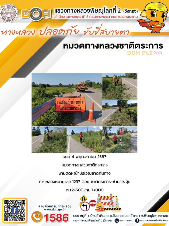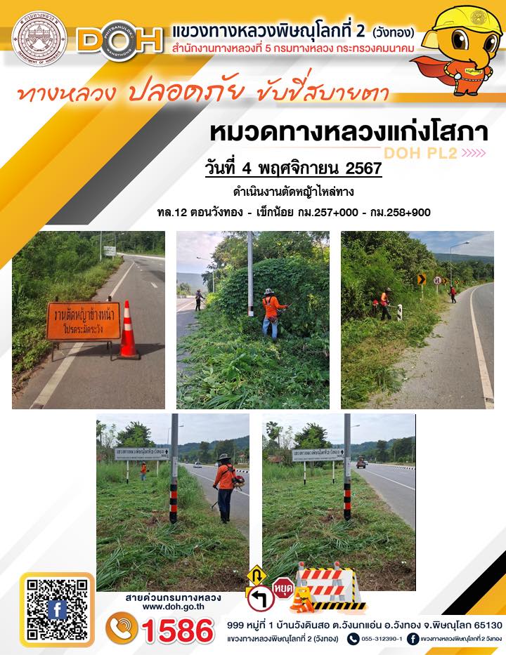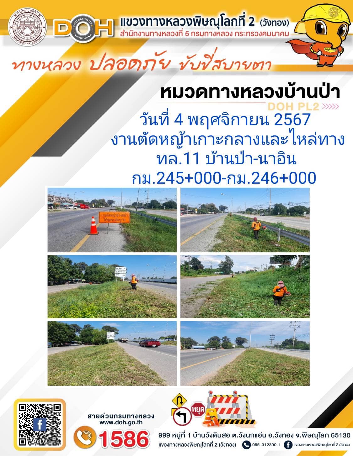 การปฏิบัติงานของ หมวดทางหลวง และ หน่วยงานในสังกัด เพื่ออำนวยความสะดวก และปลอดภัยให้กับประชาชนผู้ใช้เส้นทาง ประจำ วันจันทร์ ที่ 4 พฤศจิกายน 2567