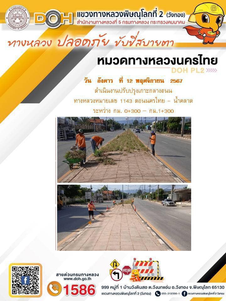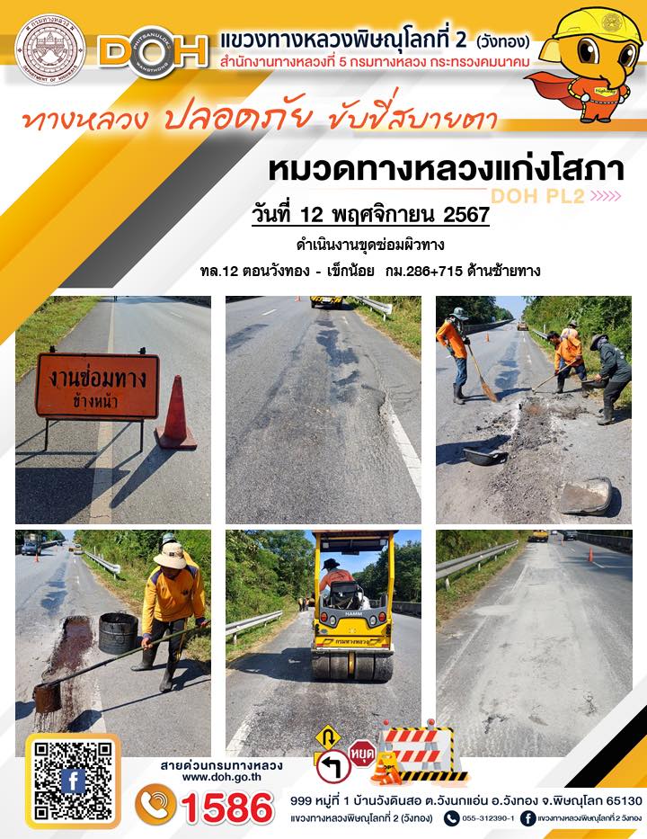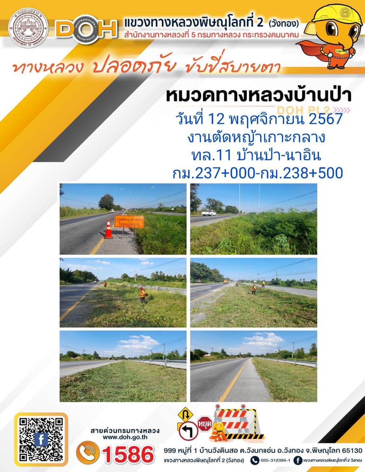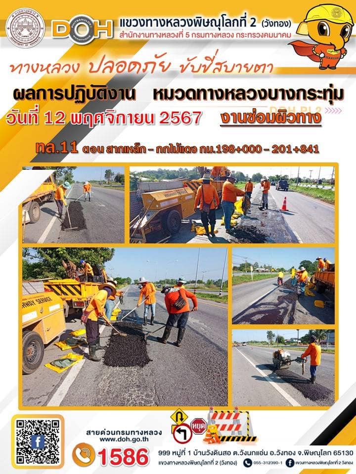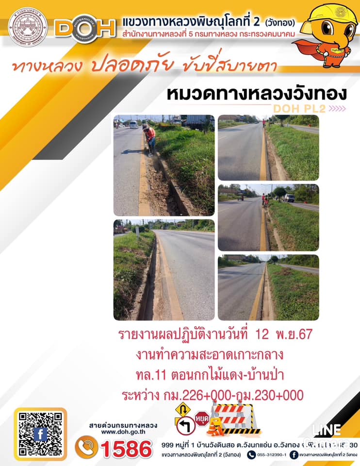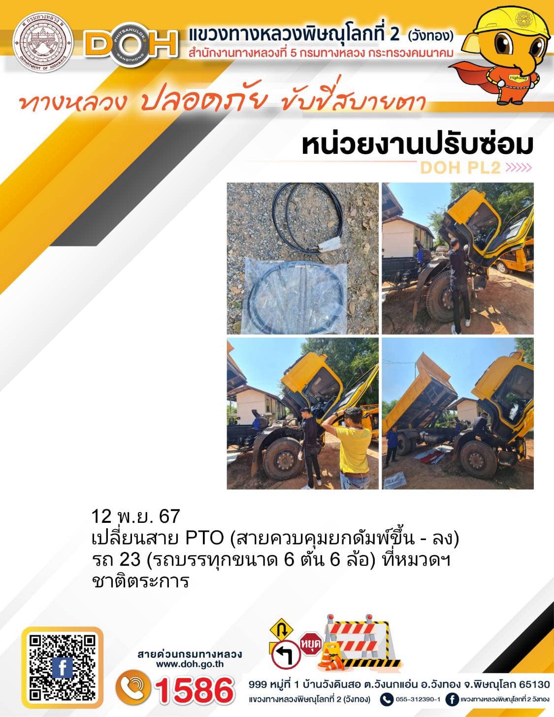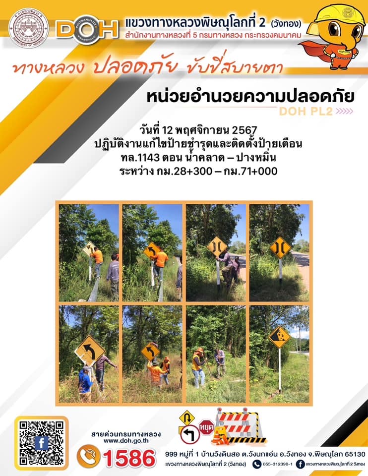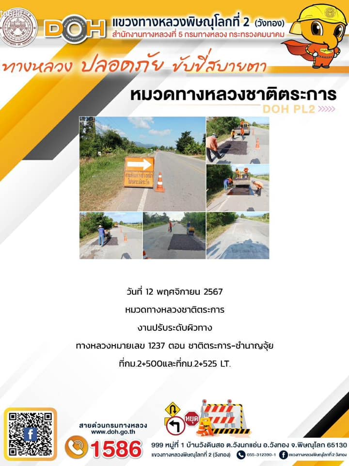 การปฏิบัติงานของ หมวดทางหลวง และ หน่วยงานในสังกัด เพื่ออำนวยความสะดวก และปลอดภัยให้กับประชาชนผู้ใช้เส้นทาง ประจำ วันอังคาร ที่ 12 พฤศจิกายน 2567
