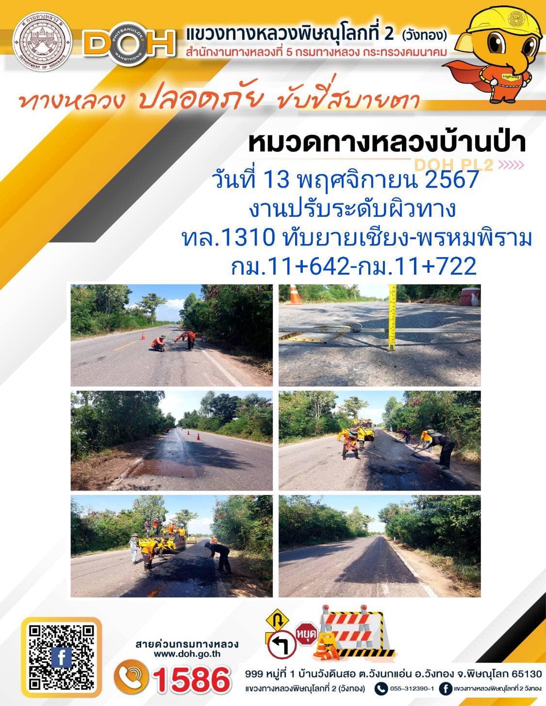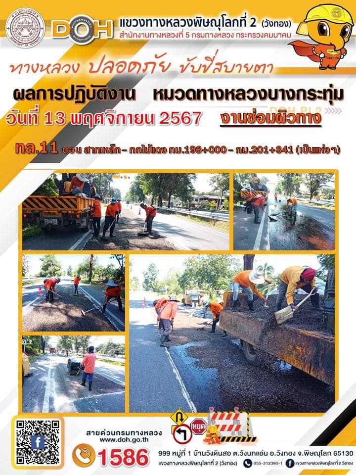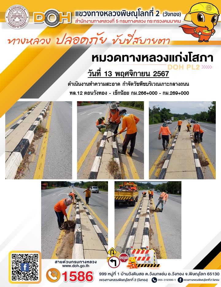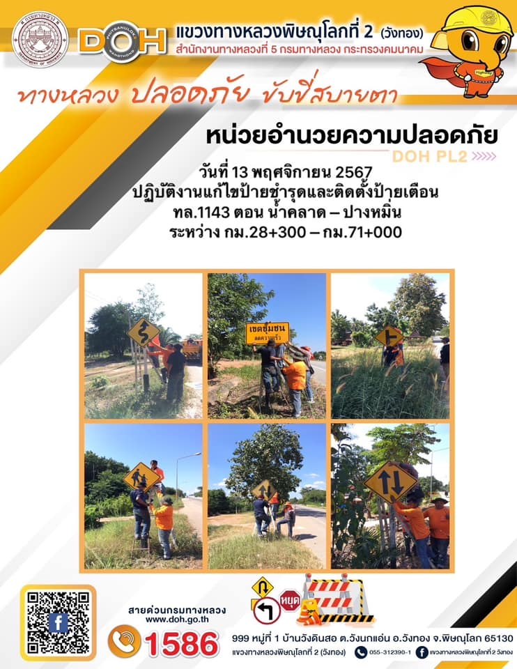 การปฏิบัติงานของ หมวดทางหลวง และ หน่วยงานในสังกัด เพื่ออำนวยความสะดวก และปลอดภัยให้กับประชาชนผู้ใช้เส้นทาง ประจำ วันพุธ ที่ 13 พฤศจิกายน 2567