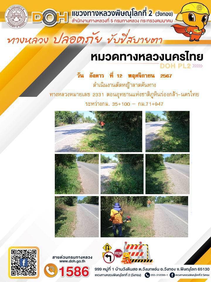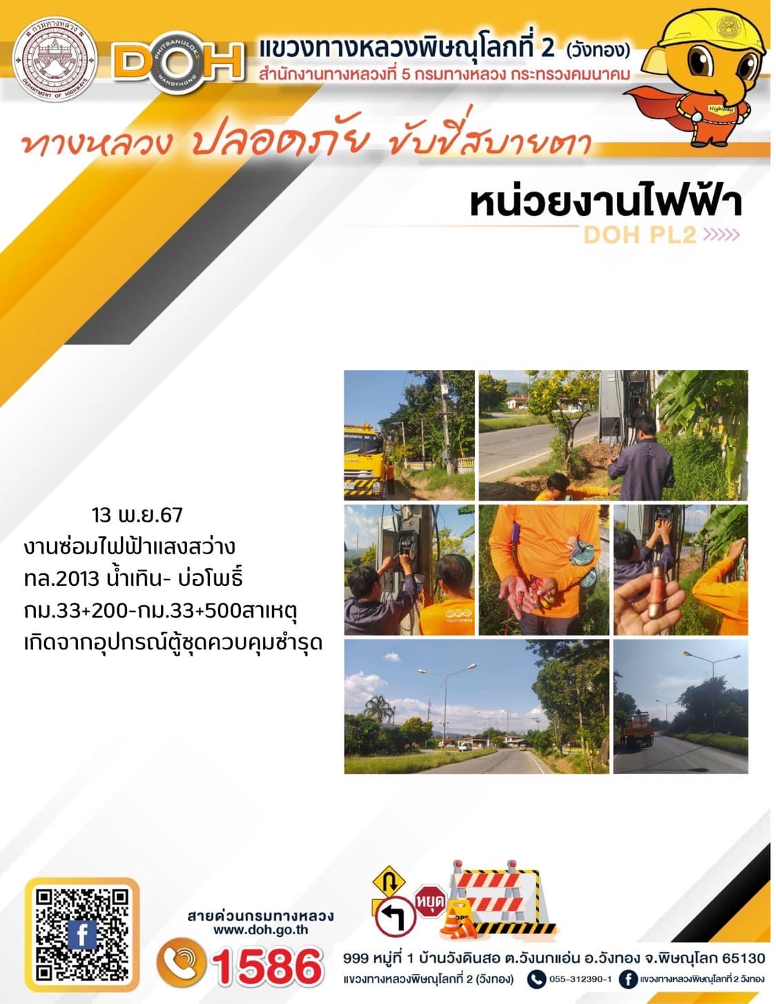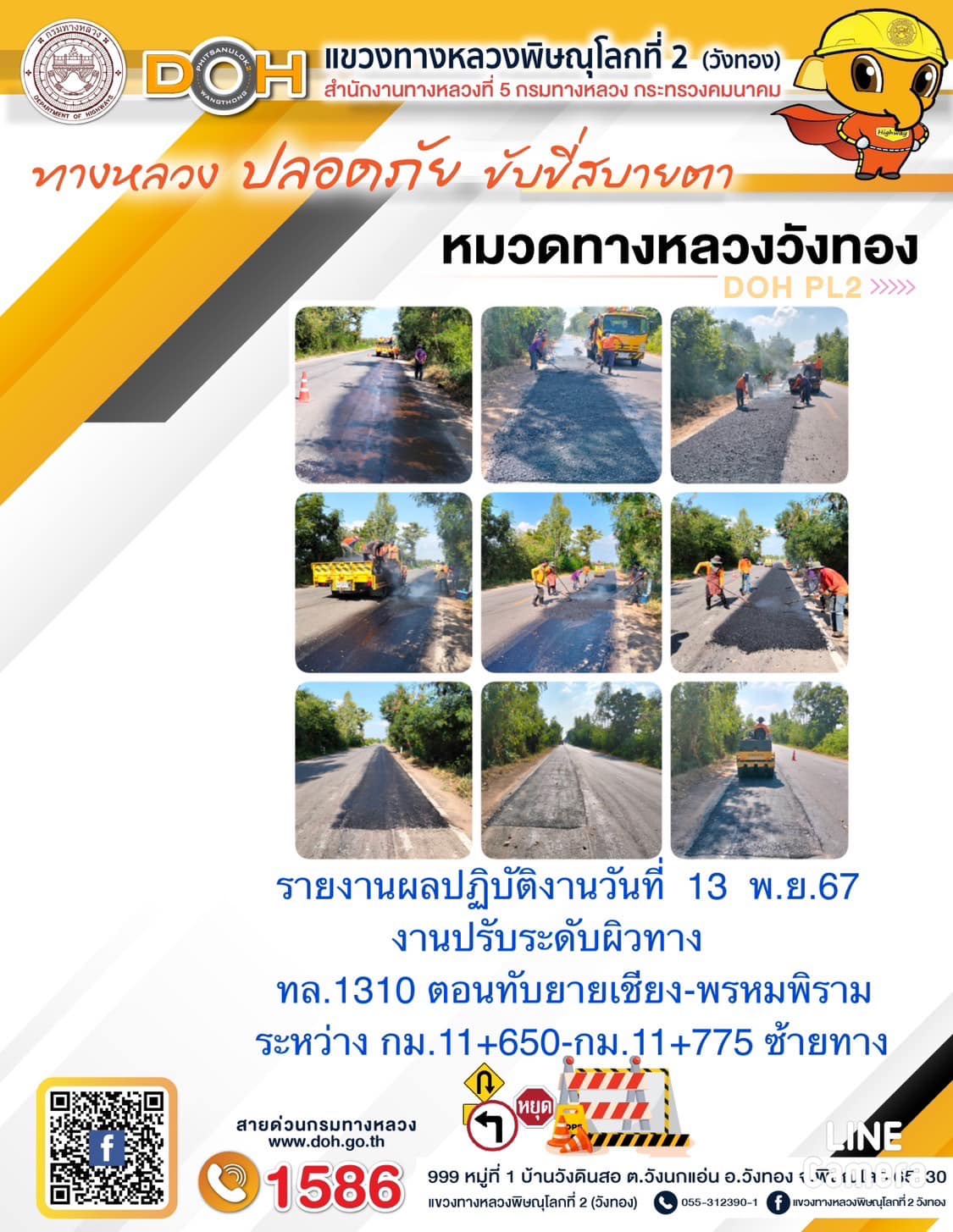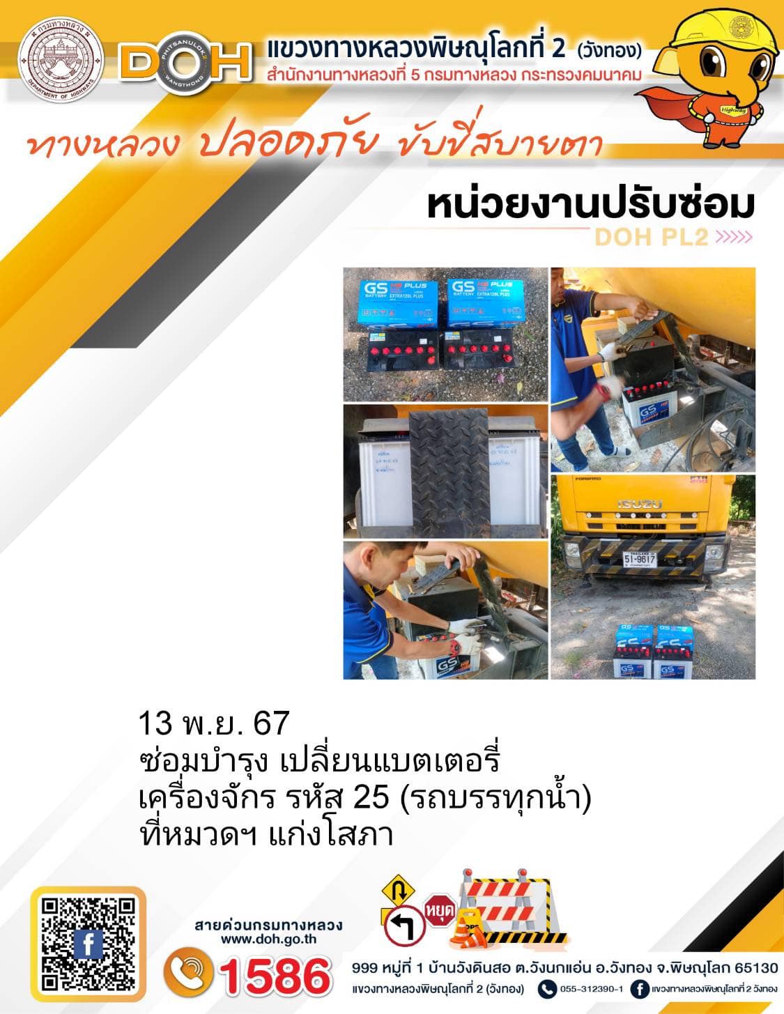 การปฏิบัติงานของ หมวดทางหลวง และ หน่วยงานในสังกัด เพื่ออำนวยความสะดวก และปลอดภัยให้กับประชาชนผู้ใช้เส้นทาง ประจำ วันพุธ ที่ 13 พฤศจิกายน 2567