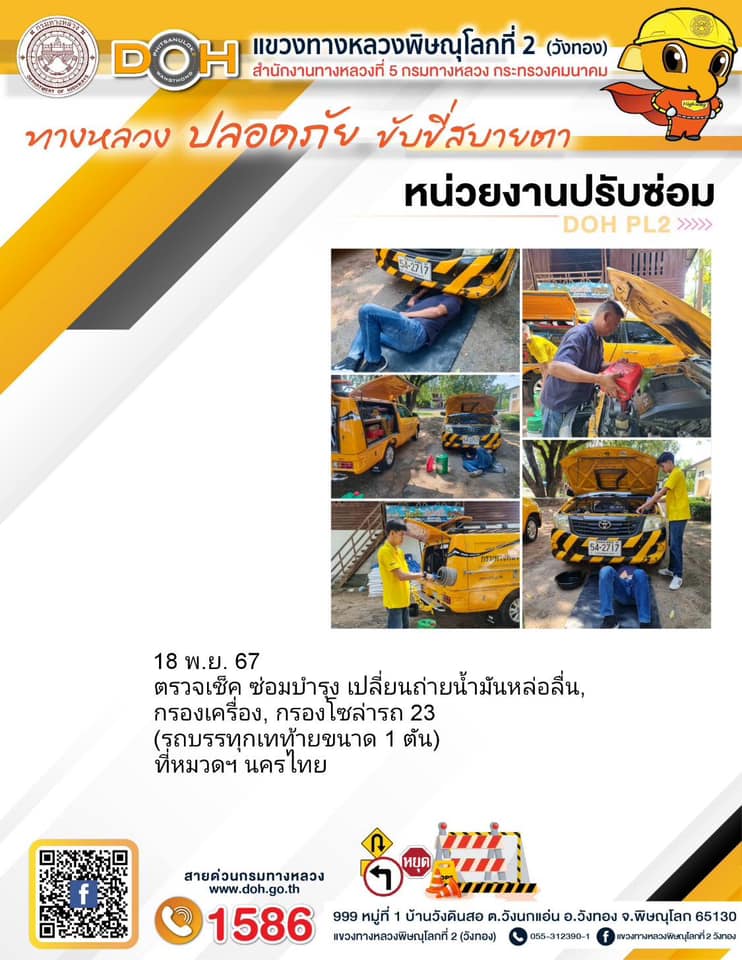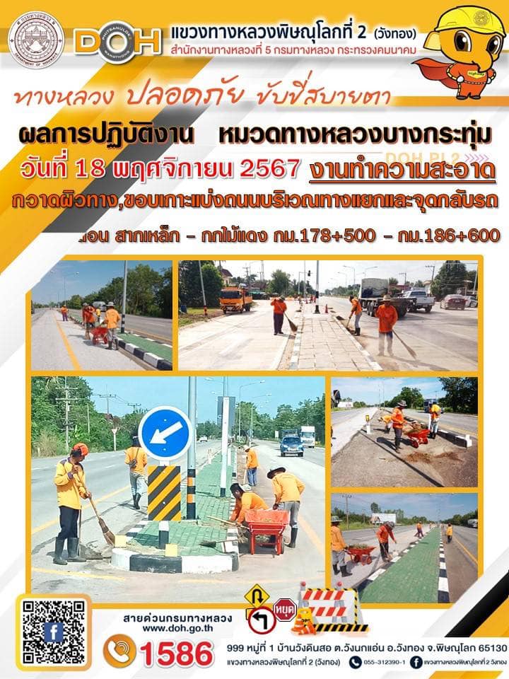 การปฏิบัติงานของ หมวดทางหลวง และ หน่วยงานในสังกัด เพื่ออำนวยความสะดวก และปลอดภัยให้กับประชาชนผู้ใช้เส้นทาง ประจำ วันจันทร์ ที่ 18 พฤศจิกายน 2567