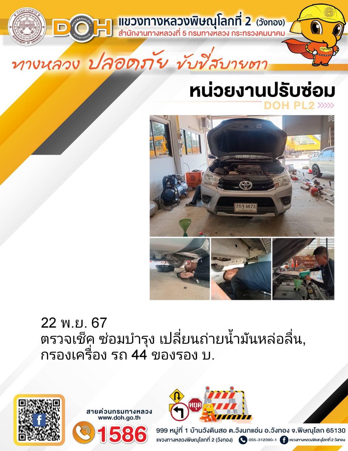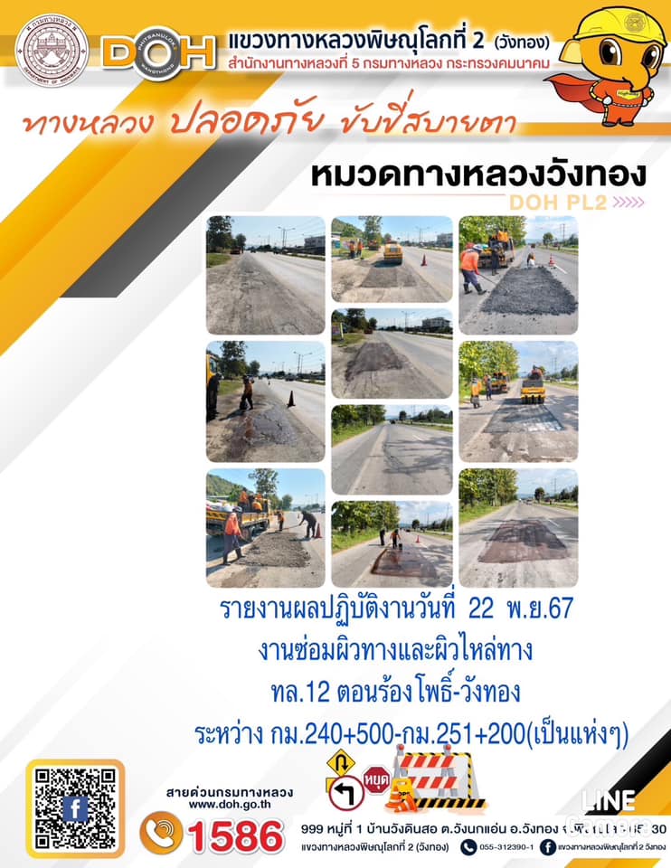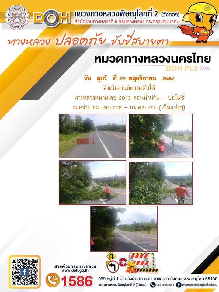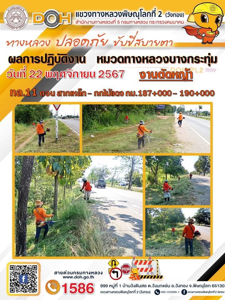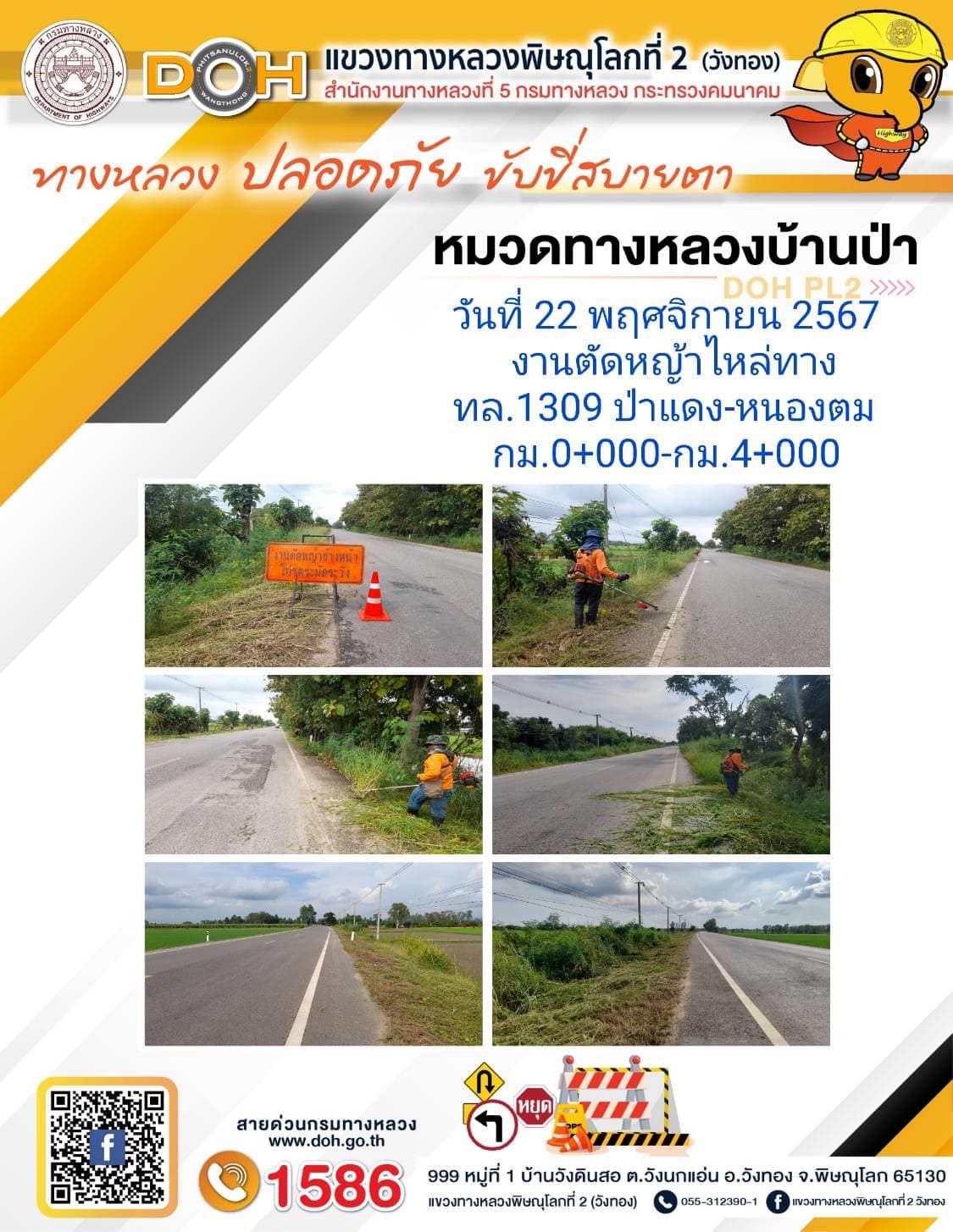 การปฏิบัติงานของ หมวดทางหลวง และ หน่วยงานในสังกัด เพื่ออำนวยความสะดวก และปลอดภัยให้กับประชาชนผู้ใช้เส้นทาง ประจำ วันศุกร์ ที่ 22 พฤศจิกายน 2567