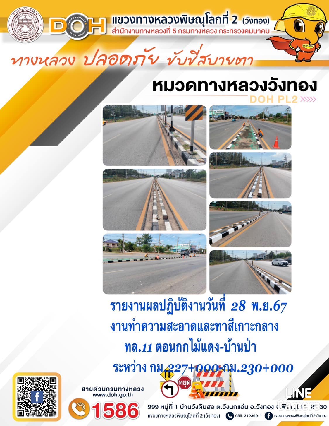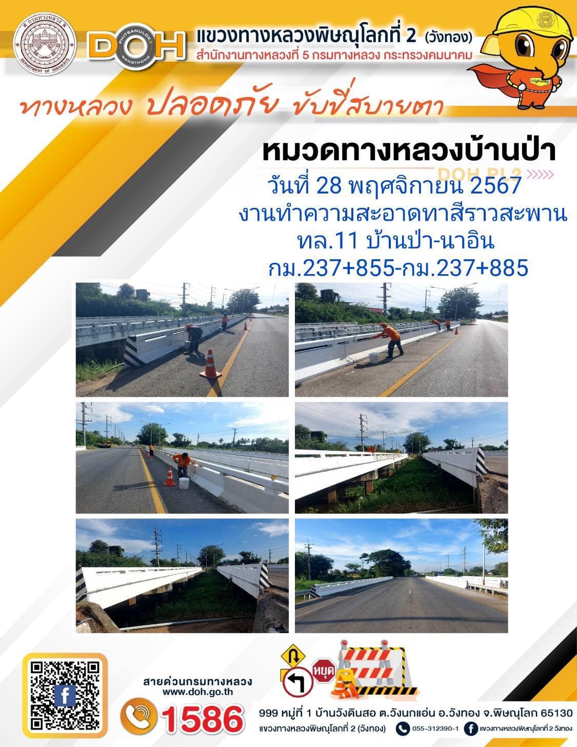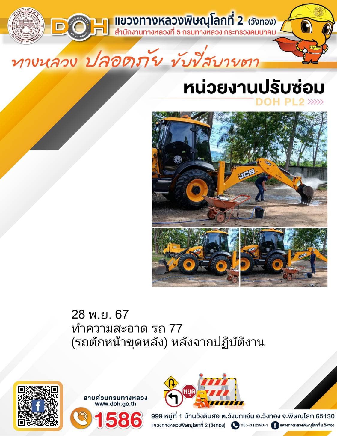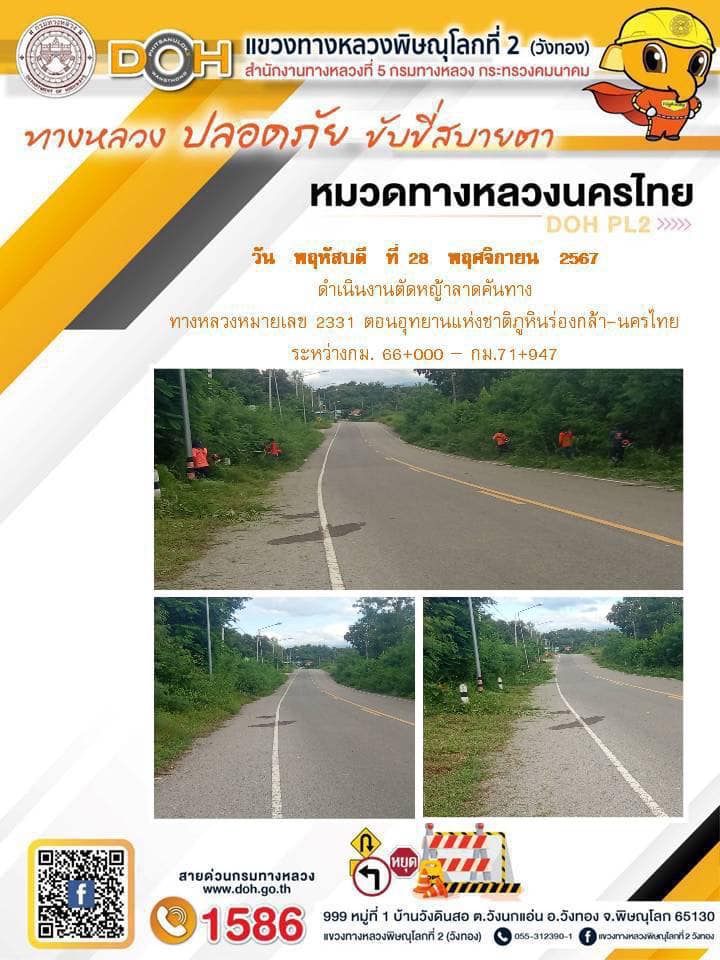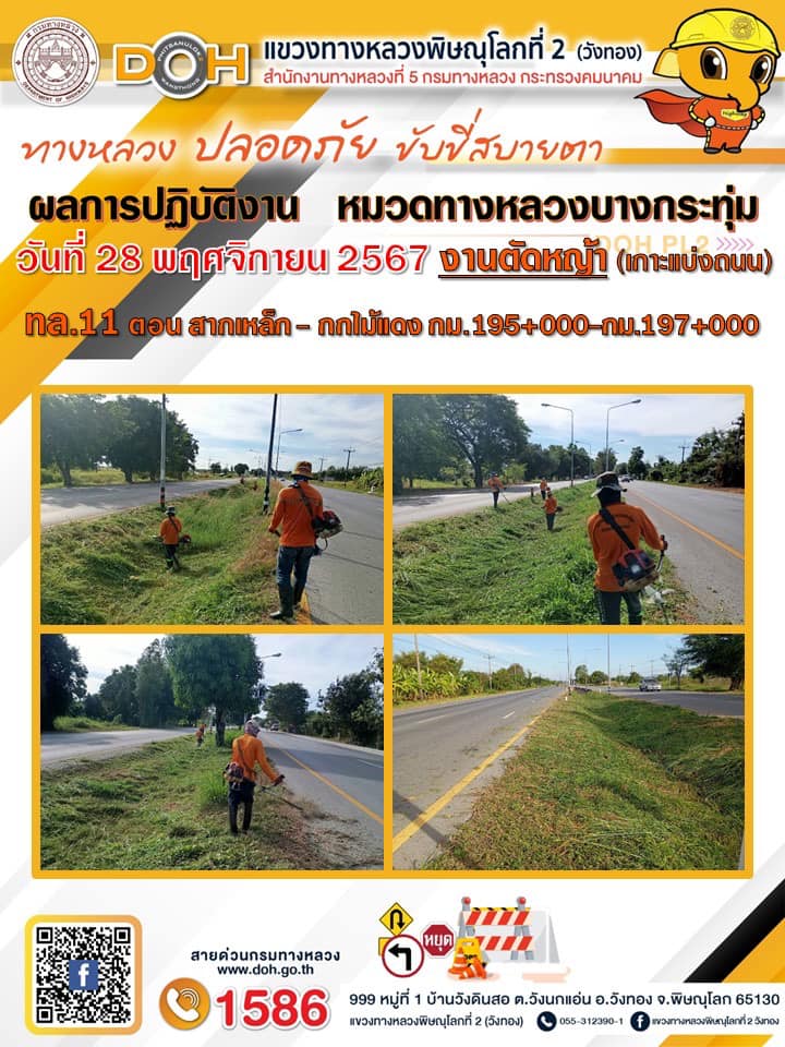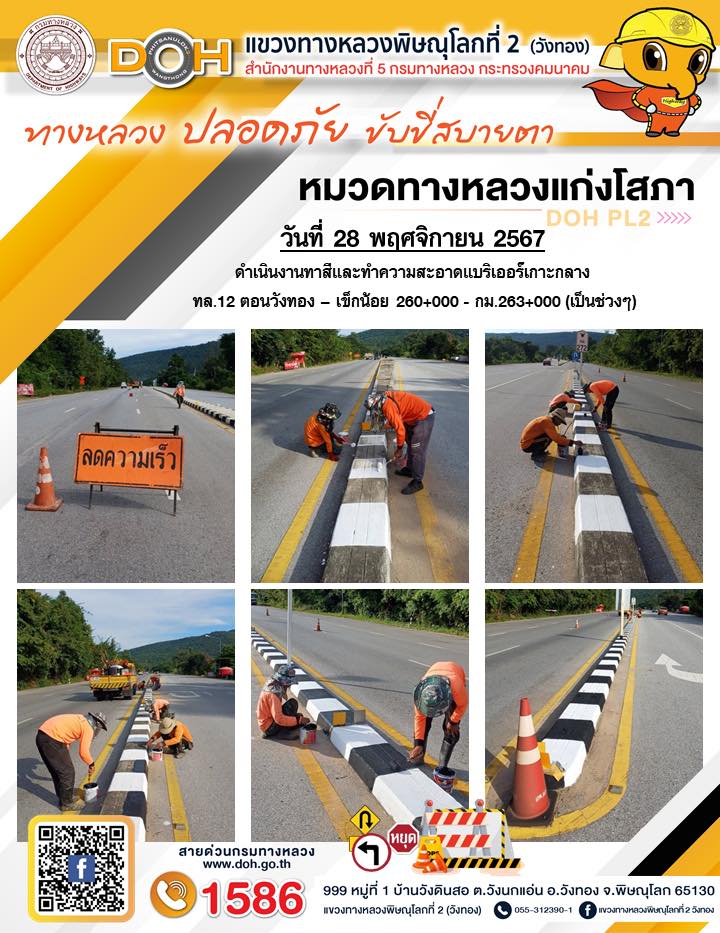 การปฏิบัติงานของ หมวดทางหลวง และ หน่วยงานในสังกัด เพื่ออำนวยความสะดวก และปลอดภัยให้กับประชาชนผู้ใช้เส้นทาง ประจำ วันพฤหัสบดี ที่ 28 พฤศจิกายน 2567