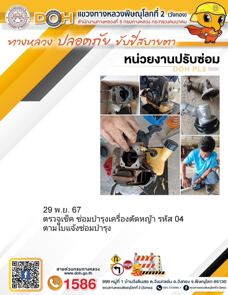 การปฏิบัติงานของ หมวดทางหลวง และ หน่วยงานในสังกัด เพื่ออำนวยความสะดวก และปลอดภัยให้กับประชาชนผู้ใช้เส้นทาง ประจำ วันศุกร์ ที่ 29 พฤศจิกายน 2567