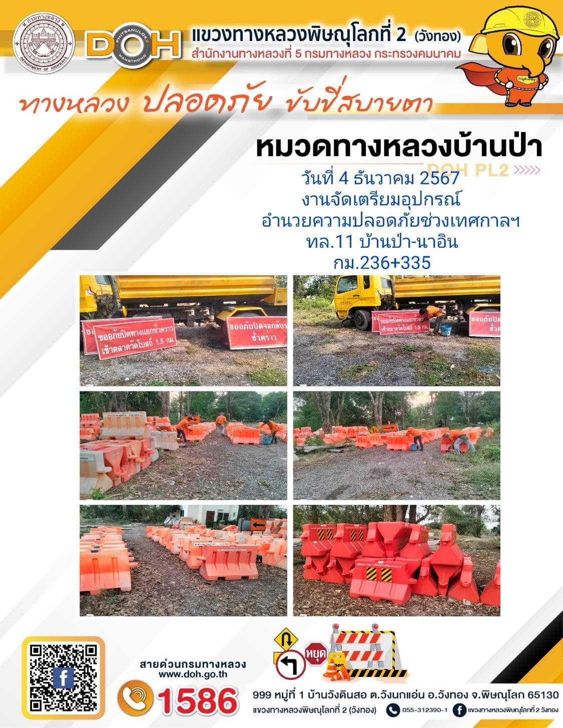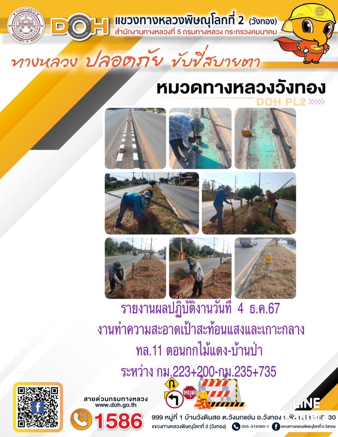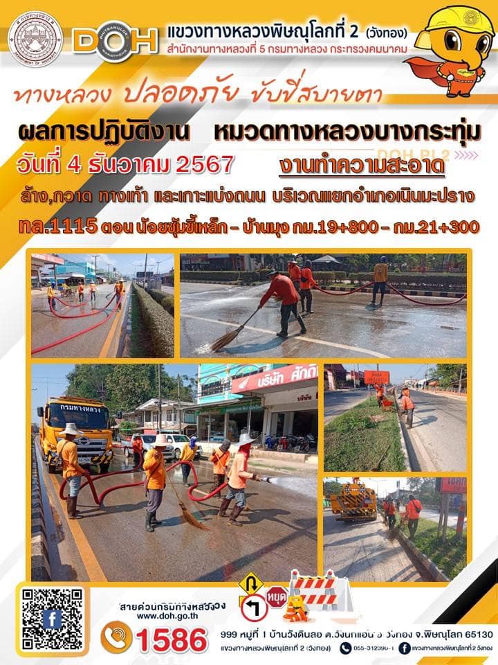 การปฏิบัติงานของ หมวดทางหลวง และ หน่วยงานในสังกัด เพื่ออำนวยความสะดวก และปลอดภัยให้กับประชาชนผู้ใช้เส้นทาง ประจำ วันพุธ ที่ 4 ธันวาคม 2567