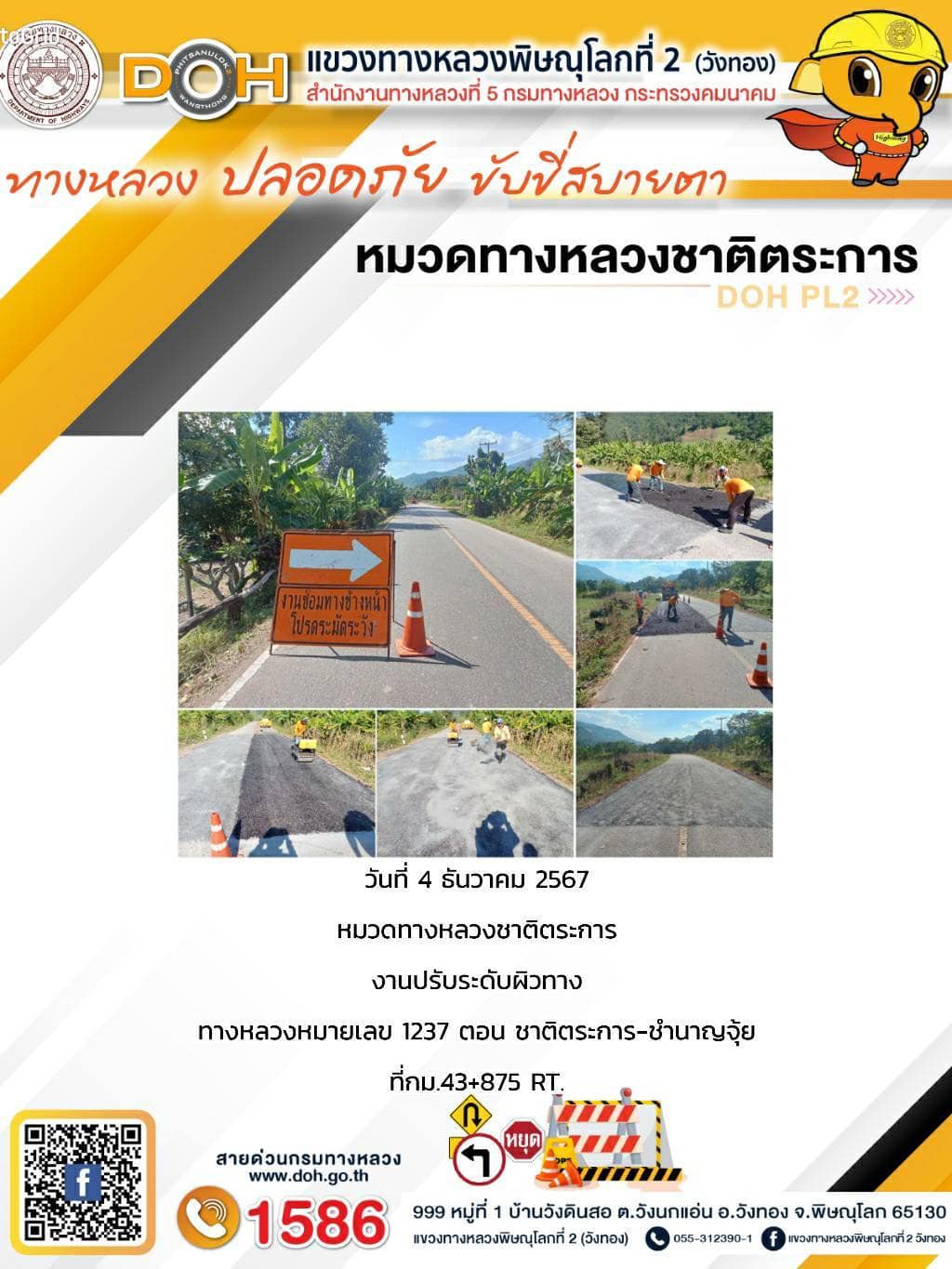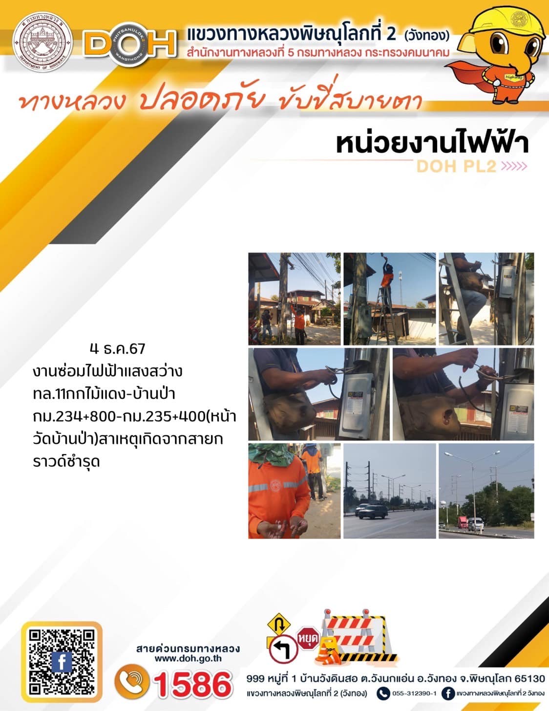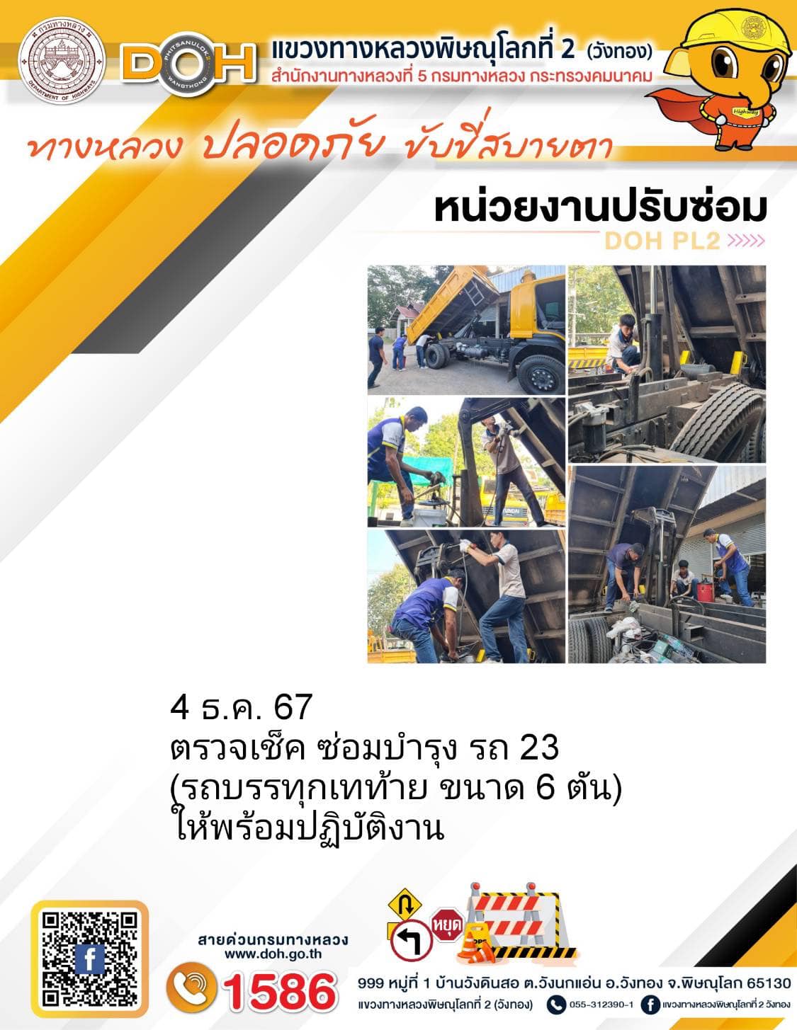 การปฏิบัติงานของ หมวดทางหลวง และ หน่วยงานในสังกัด เพื่ออำนวยความสะดวก และปลอดภัยให้กับประชาชนผู้ใช้เส้นทาง ประจำ วันพุธ ที่ 4 ธันวาคม 2567