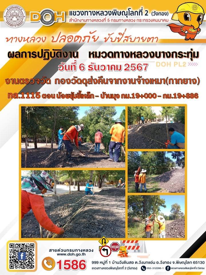 การปฏิบัติงานของ หมวดทางหลวง และ หน่วยงานในสังกัด เพื่ออำนวยความสะดวก และปลอดภัยให้กับประชาชนผู้ใช้เส้นทาง ประจำ วันศุกร์ ที่ 6 ธันวาคม 2567