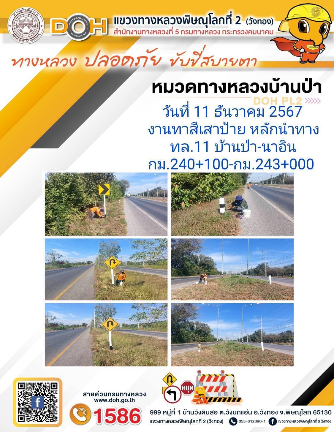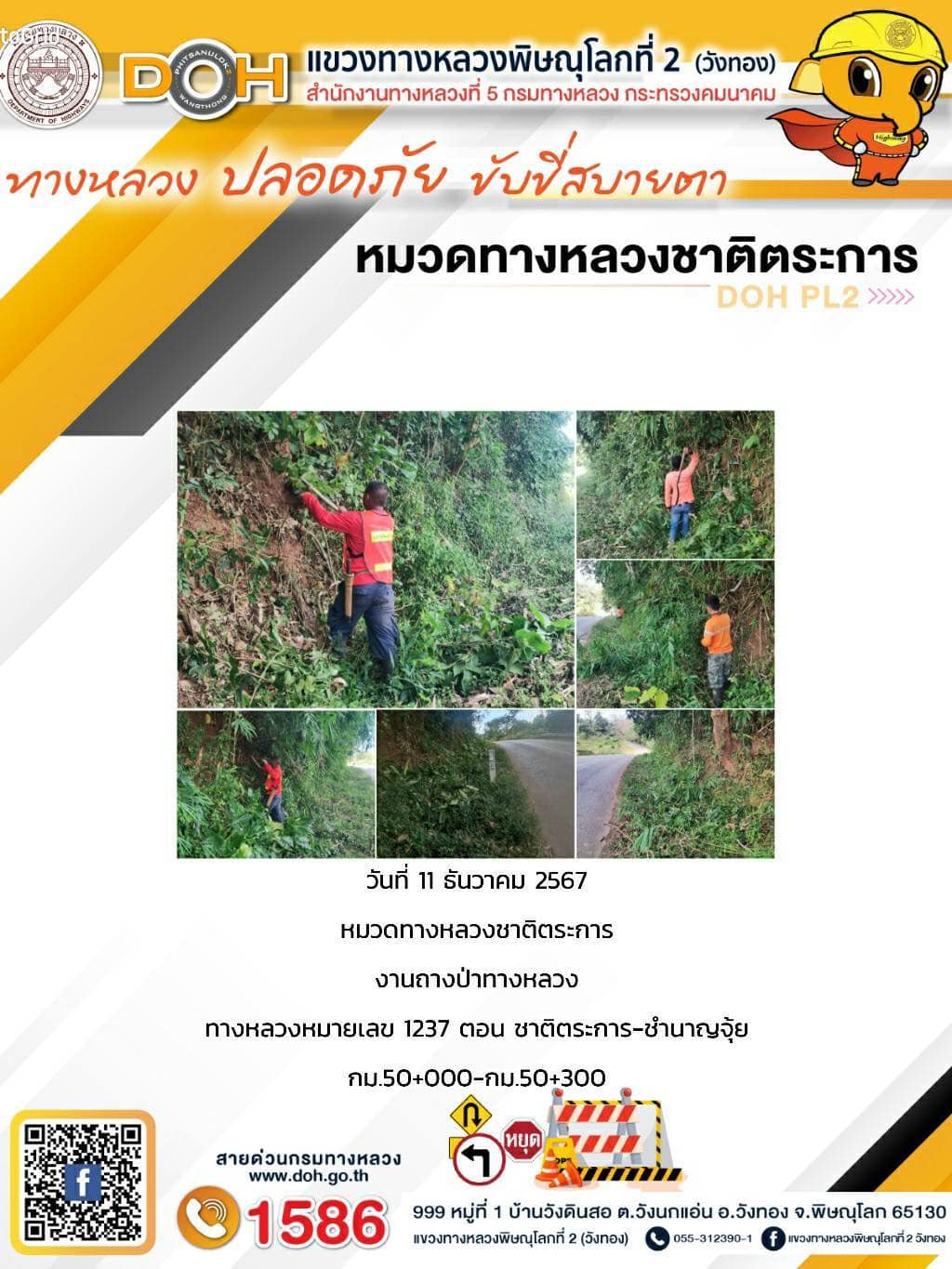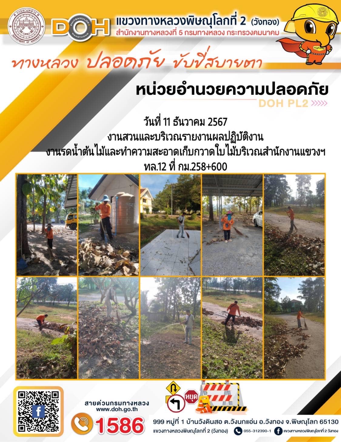 การปฏิบัติงานของ หมวดทางหลวง และ หน่วยงานในสังกัด เพื่ออำนวยความสะดวก และปลอดภัยให้กับประชาชนผู้ใช้เส้นทาง ประจำ วันพุธ ที่ 11 ธันวาคม 2567
