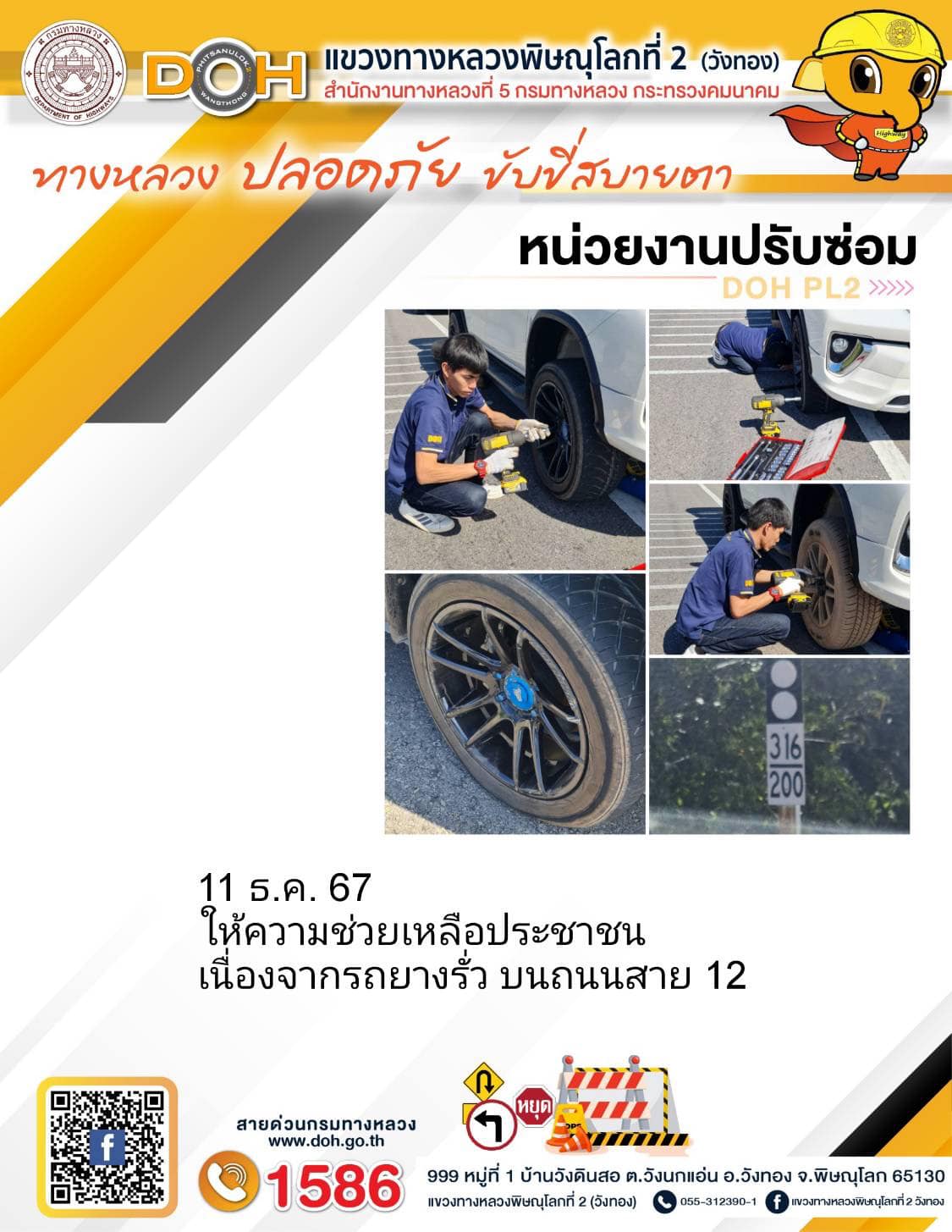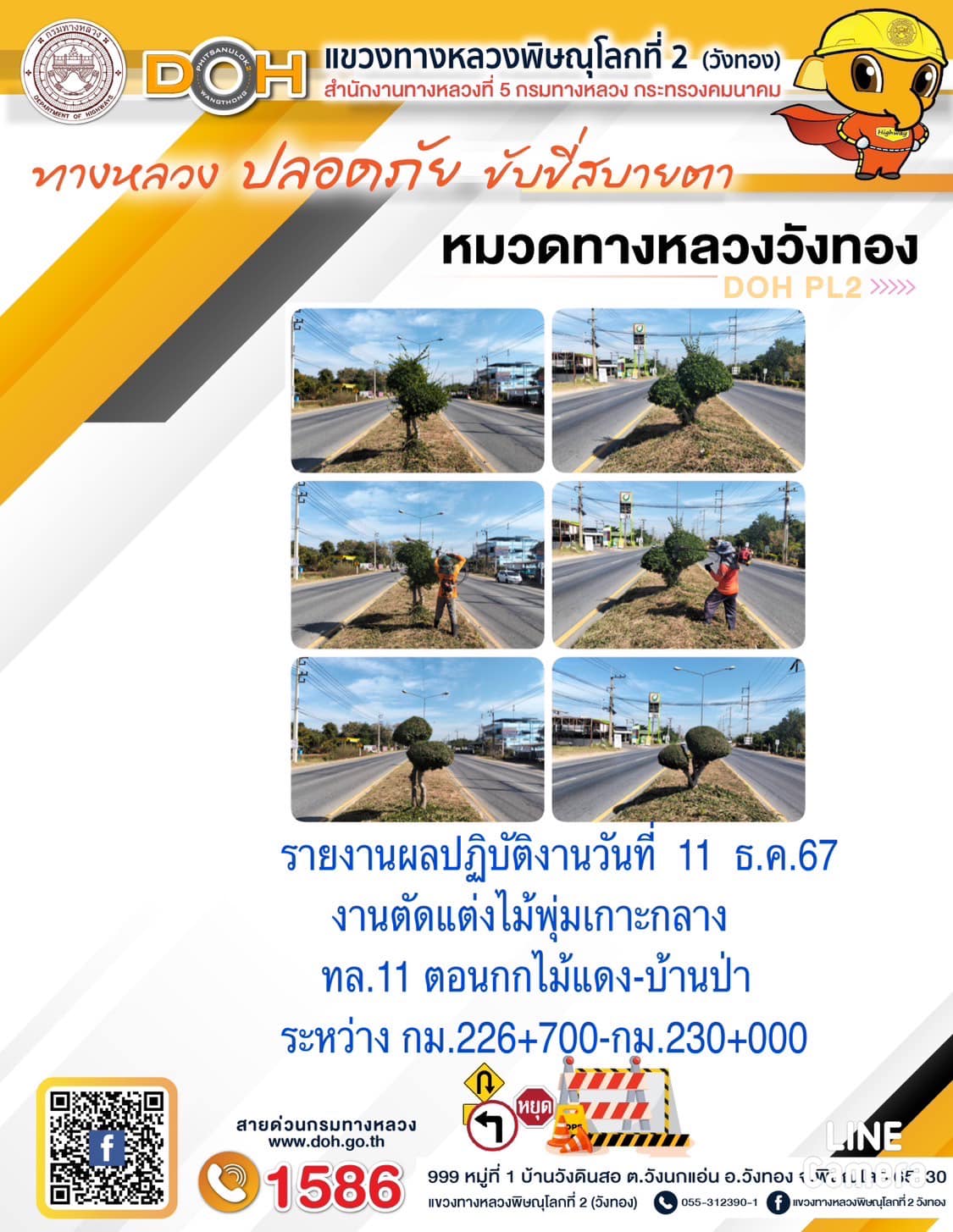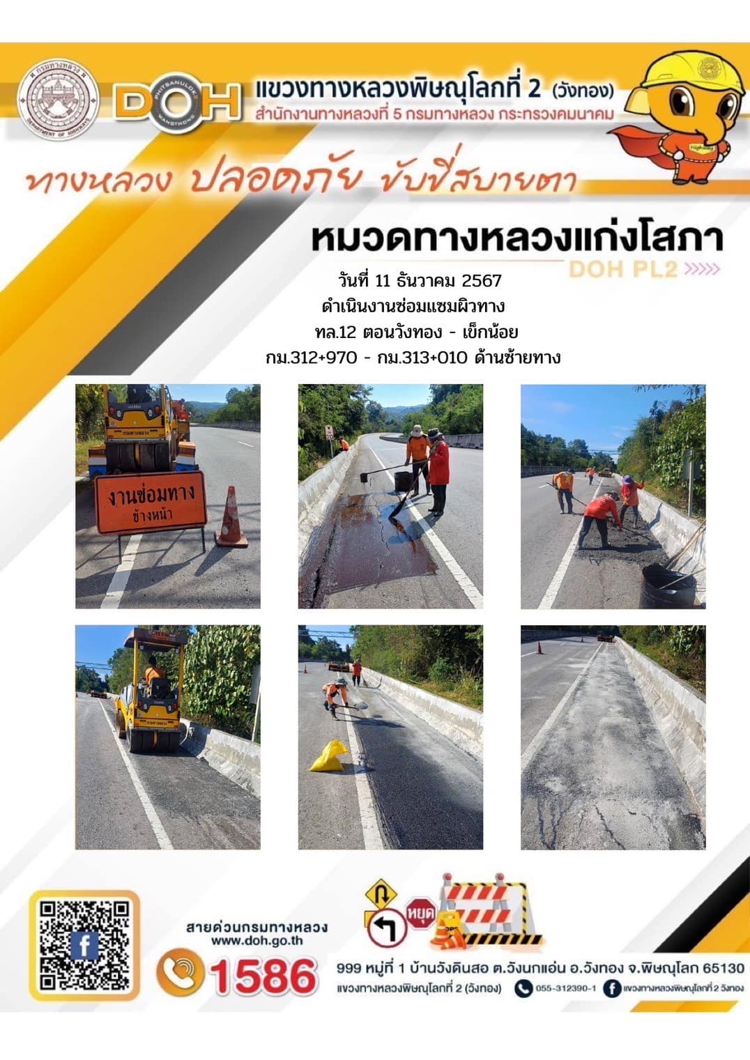 การปฏิบัติงานของ หมวดทางหลวง และ หน่วยงานในสังกัด เพื่ออำนวยความสะดวก และปลอดภัยให้กับประชาชนผู้ใช้เส้นทาง ประจำ วันพุธ ที่ 11 ธันวาคม 2567