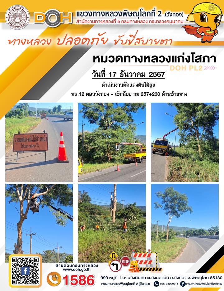การปฏิบัติงานของ หมวดทางหลวง และ หน่วยงานในสังกัด เพื่ออำนวยความสะดวก และปลอดภัยให้กับประชาชนผู้ใช้เส้นทาง ประจำ วันอังคาร ที่ 17 ธันวาคม 2567