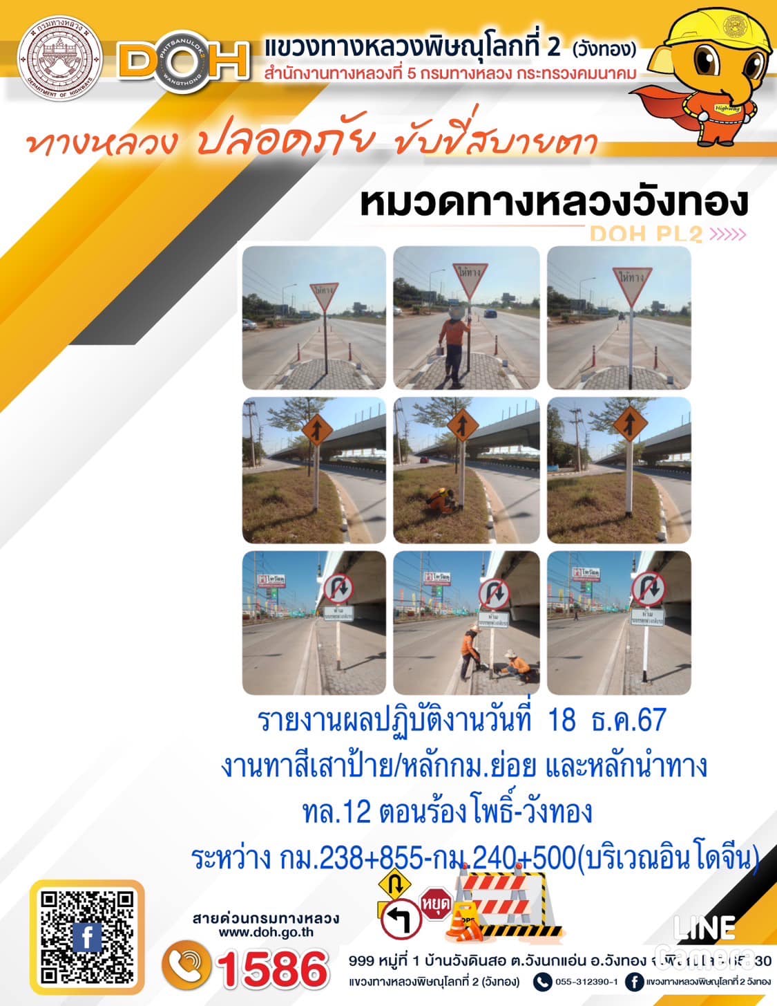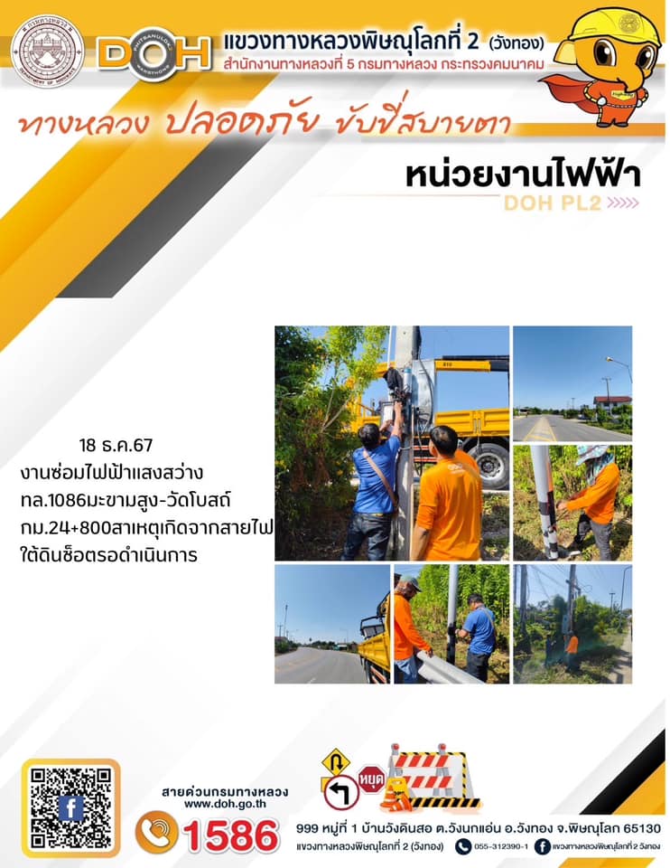 การปฏิบัติงานของ หมวดทางหลวง และ หน่วยงานในสังกัด เพื่ออำนวยความสะดวก และปลอดภัยให้กับประชาชนผู้ใช้เส้นทาง ประจำ วันพุธ ที่ 18 ธันวาคม 2567