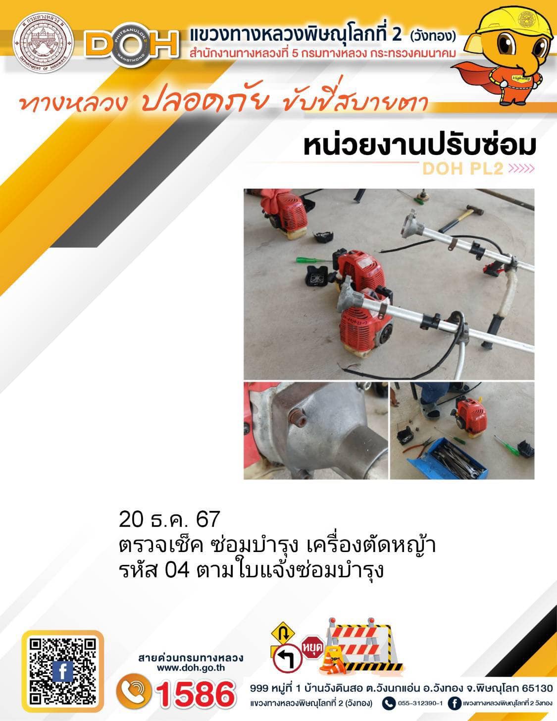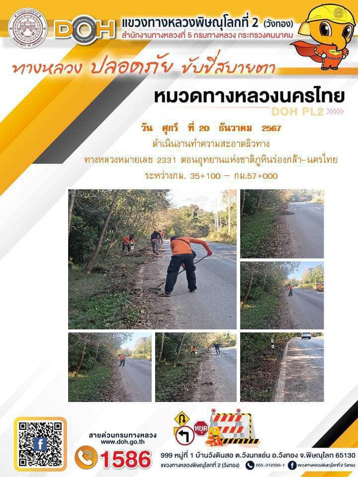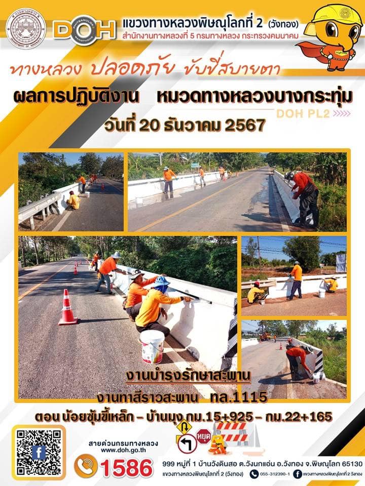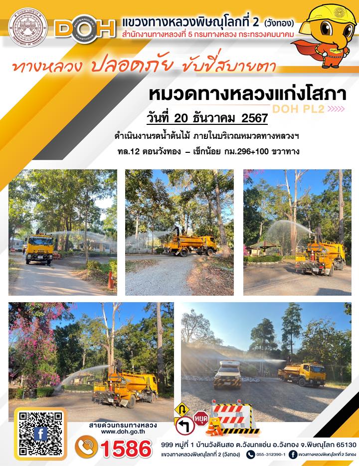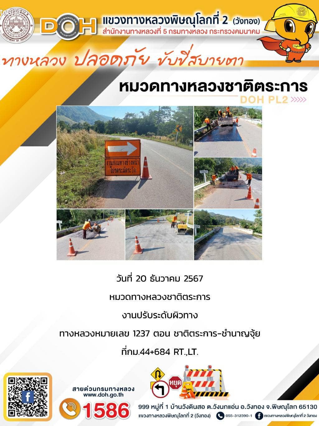การปฏิบัติงานของ หมวดทางหลวง และ หน่วยงานในสังกัด เพื่ออำนวยความสะดวก และปลอดภัยให้กับประชาชนผู้ใช้เส้นทาง ประจำ วันศุกร์ ที่ 20 ธันวาคม 2567