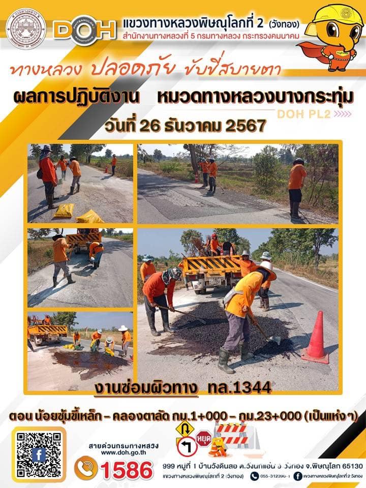การปฏิบัติงานของ หมวดทางหลวง และ หน่วยงานในสังกัด เพื่ออำนวยความสะดวก และปลอดภัยให้กับประชาชนผู้ใช้เส้นทาง ประจำ วันพฤหัสบดี ที่ 26 ธันวาคม 2567