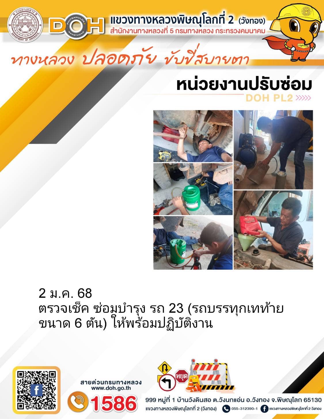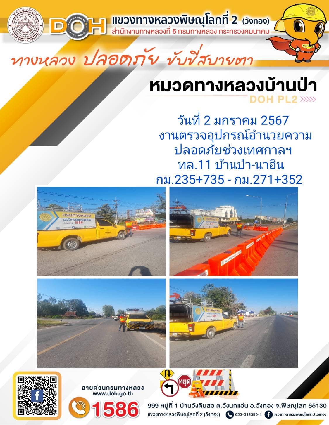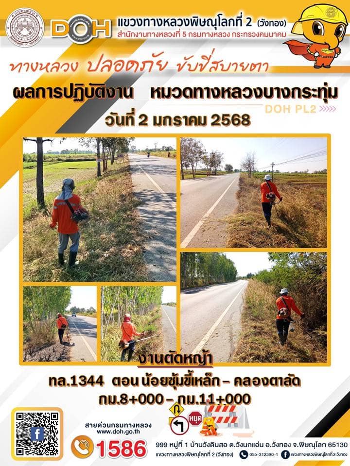 การปฏิบัติงานของ หมวดทางหลวง และ หน่วยงานในสังกัด เพื่ออำนวยความสะดวก และปลอดภัยให้กับประชาชนผู้ใช้เส้นทาง ประจำ วันพฤหัสบดี ที่ 2 มกราคม 2568