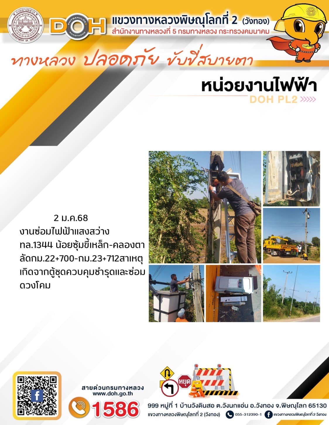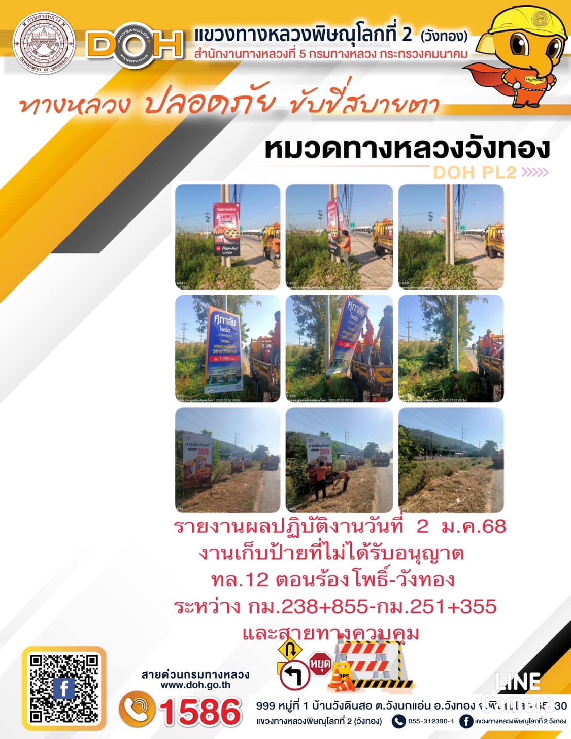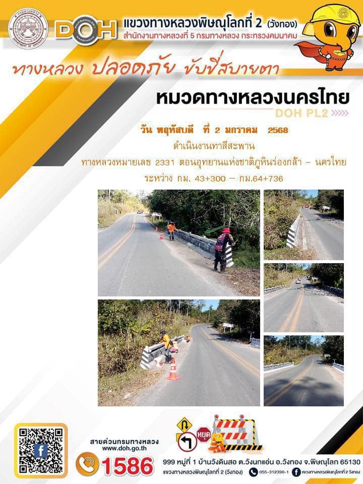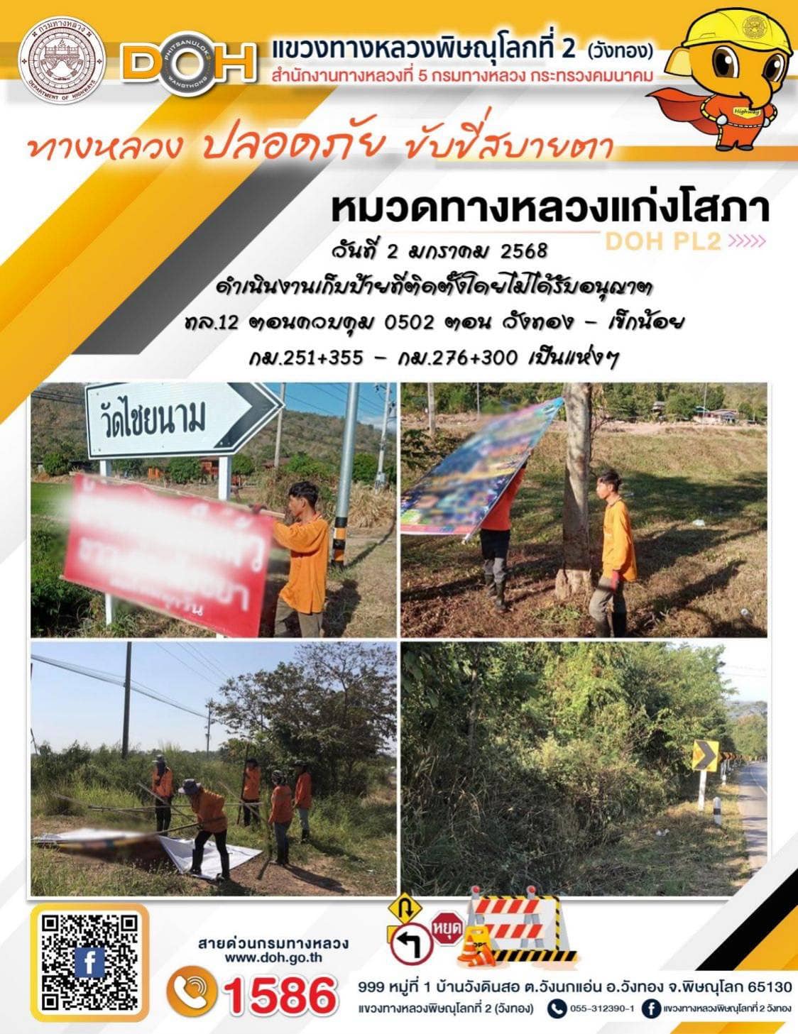 การปฏิบัติงานของ หมวดทางหลวง และ หน่วยงานในสังกัด เพื่ออำนวยความสะดวก และปลอดภัยให้กับประชาชนผู้ใช้เส้นทาง ประจำ วันพฤหัสบดี ที่ 2 มกราคม 2568