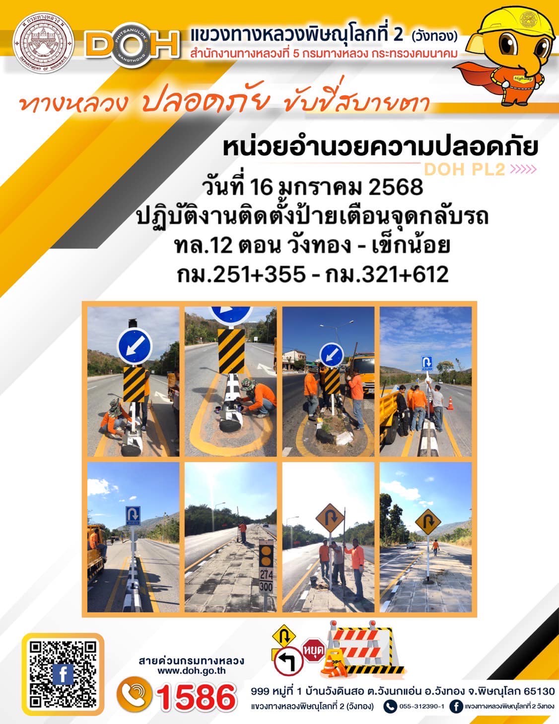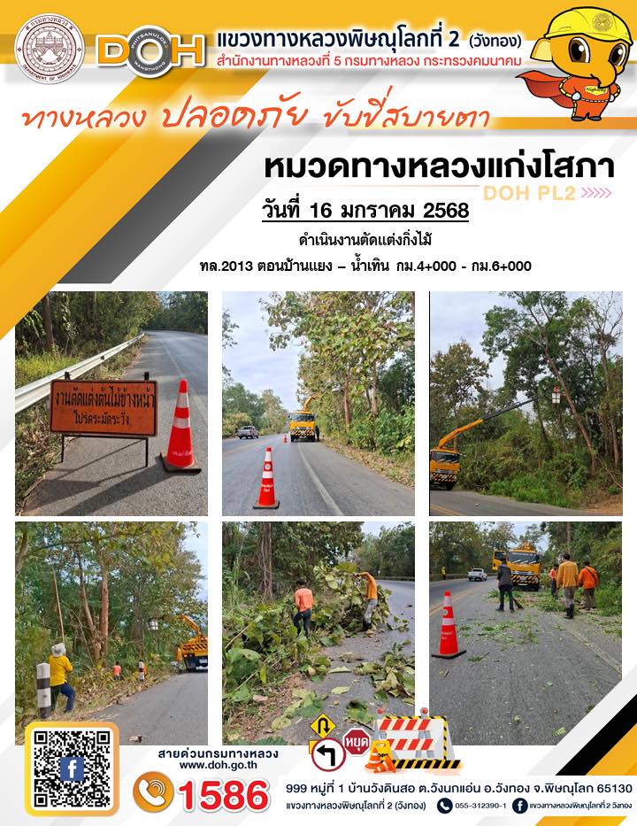 การปฏิบัติงานของ หมวดทางหลวง และ หน่วยงานในสังกัด เพื่ออำนวยความสะดวก และปลอดภัยให้กับประชาชนผู้ใช้เส้นทาง ประจำ วันพฤหัสบดี ที่ 16 มกราคม 2568