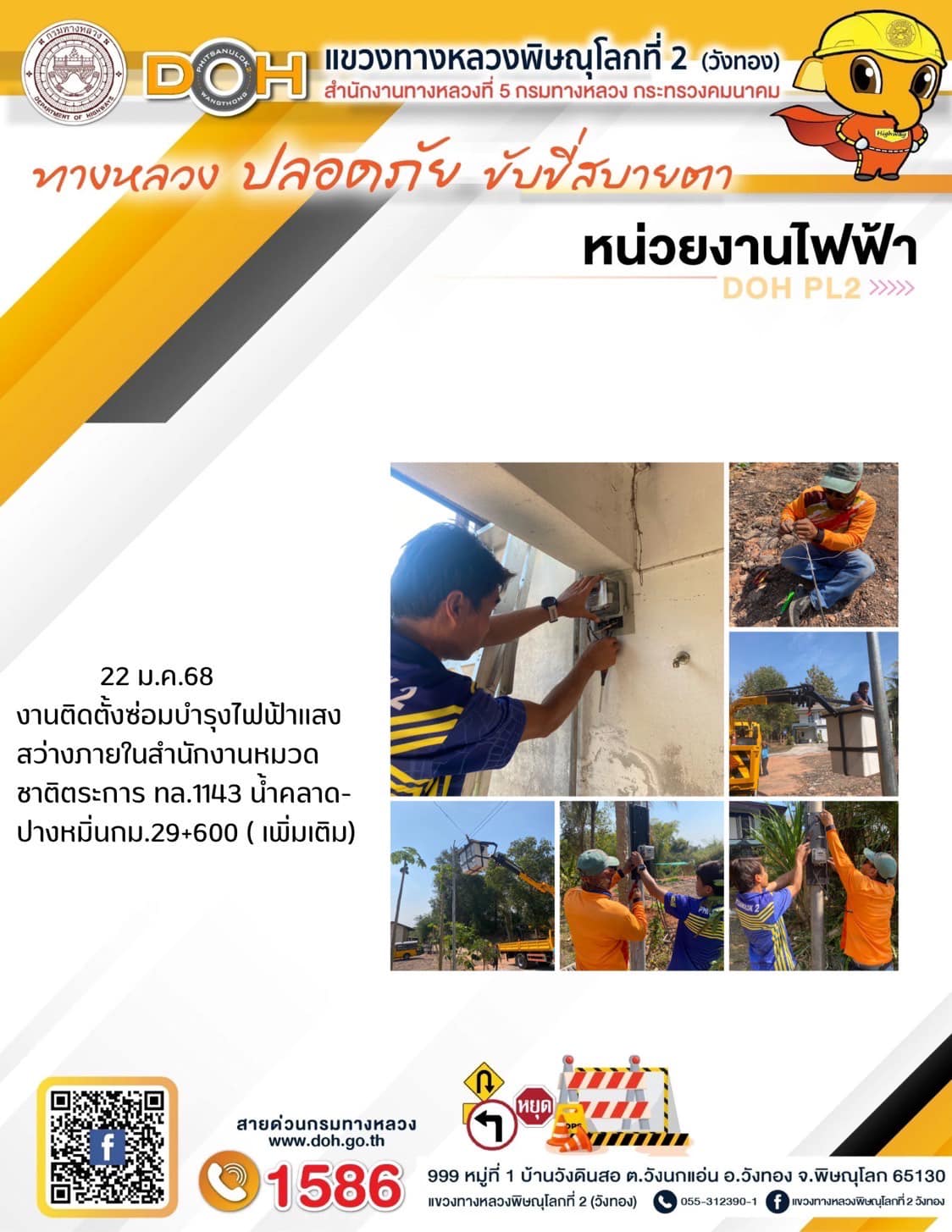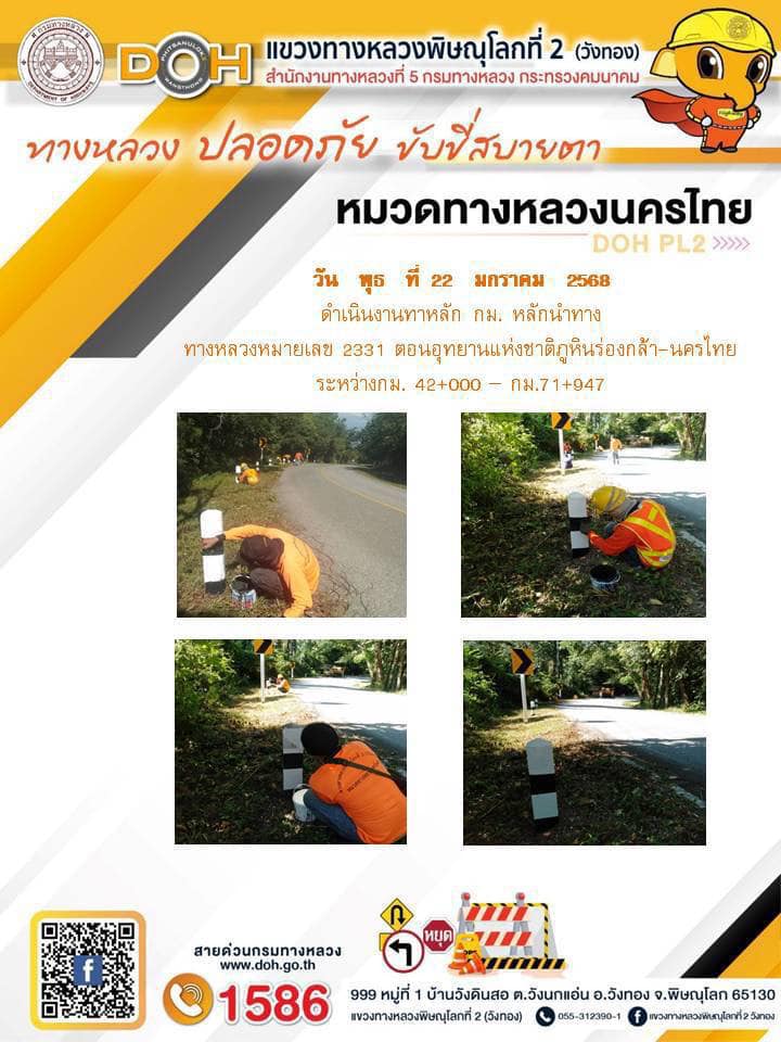 การปฏิบัติงานของ หมวดทางหลวง และ หน่วยงานในสังกัด เพื่ออำนวยความสะดวก และปลอดภัยให้กับประชาชนผู้ใช้เส้นทาง ประจำ วันพุธ ที่ 22 มกราคม 2568