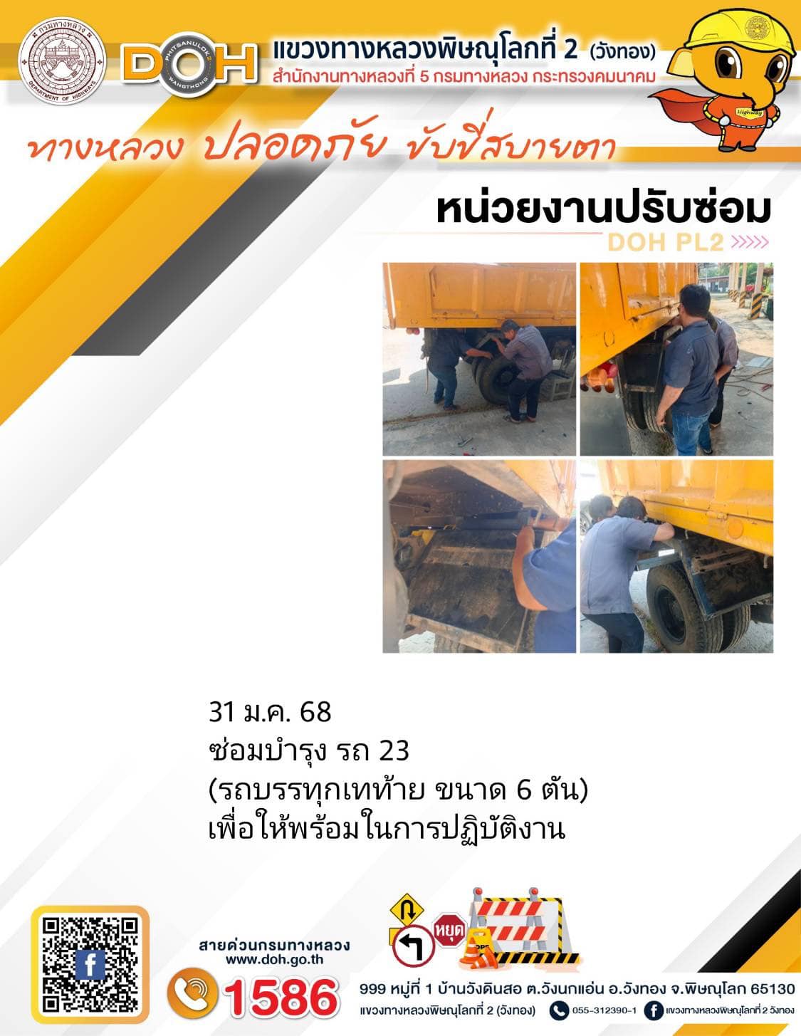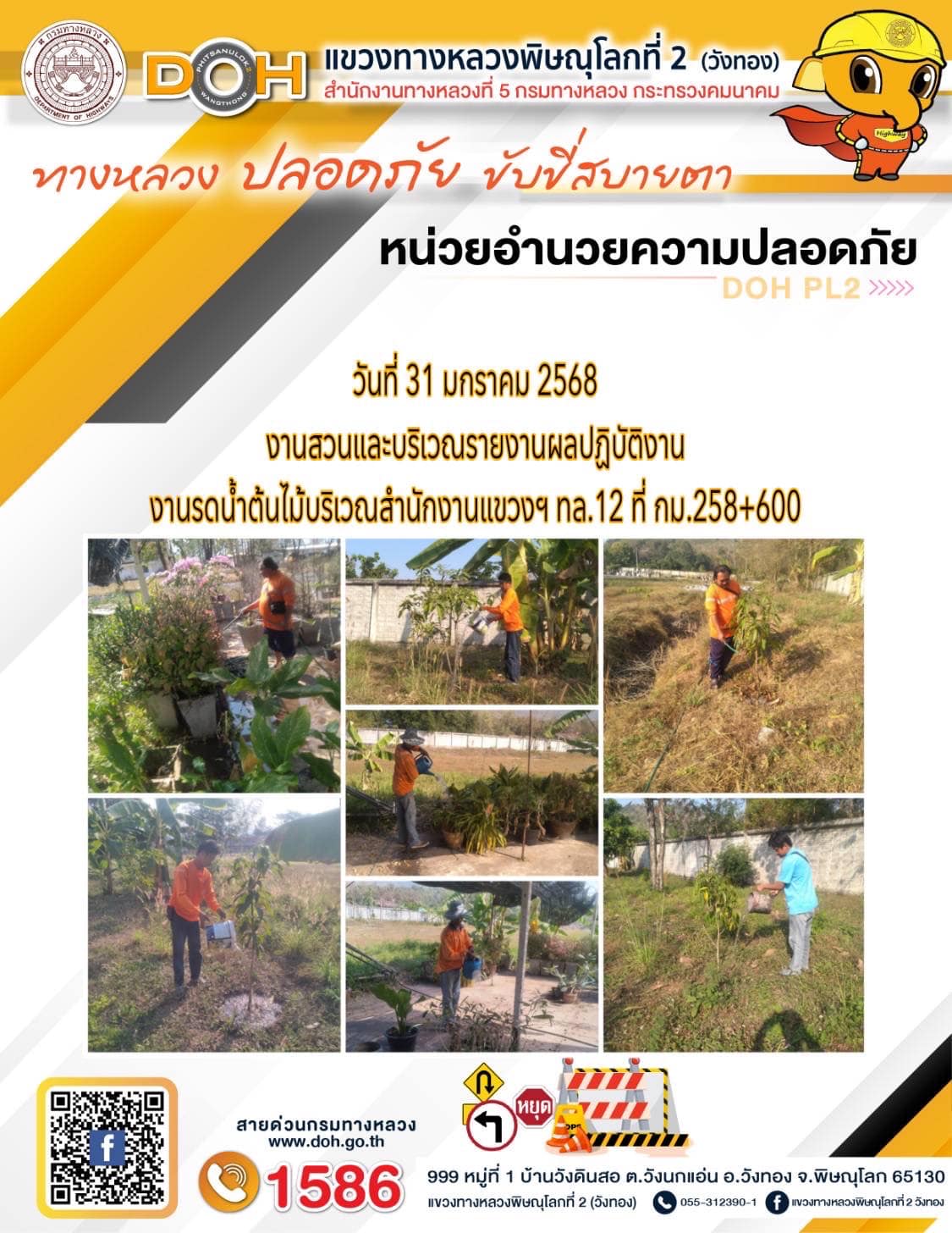 การปฏิบัติงานของ หมวดทางหลวง และ หน่วยงานในสังกัด เพื่ออำนวยความสะดวก และปลอดภัยให้กับประชาชนผู้ใช้เส้นทาง ประจำ วันศุกร์ ที่ 31 มกราคม 2568