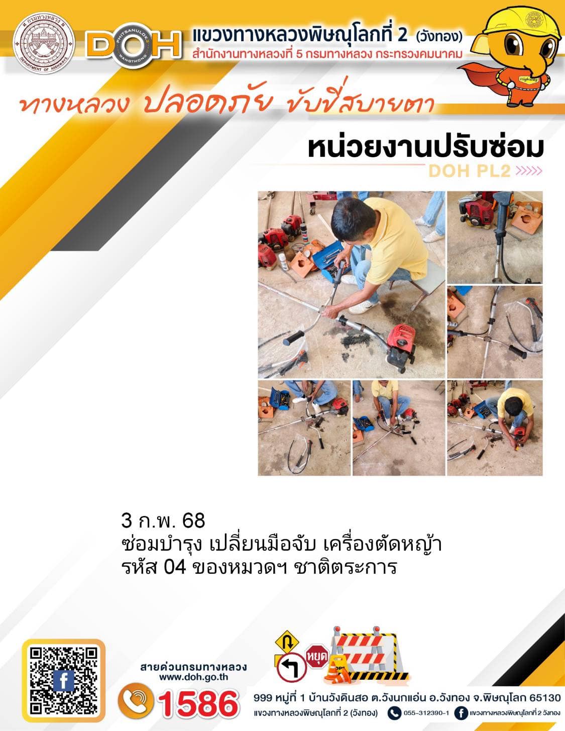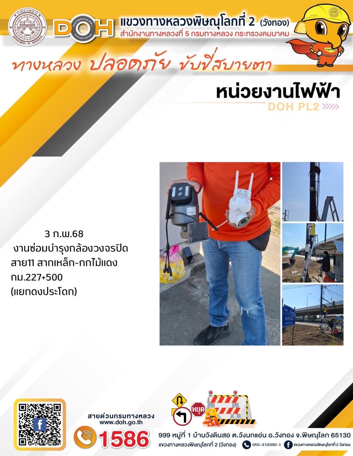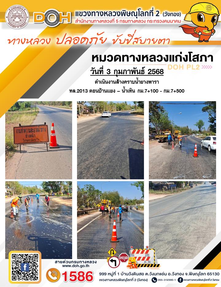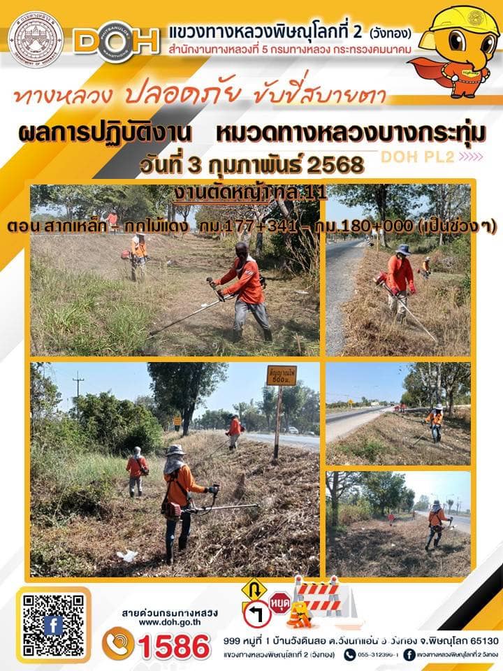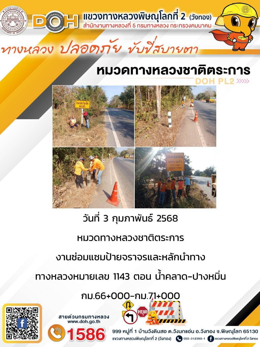 การปฏิบัติงานของ หมวดทางหลวง และ หน่วยงานในสังกัด เพื่ออำนวยความสะดวก และปลอดภัยให้กับประชาชนผู้ใช้เส้นทาง ประจำ วันจันทร์ ที่ 3 กุมภาพันธ์ 2568
