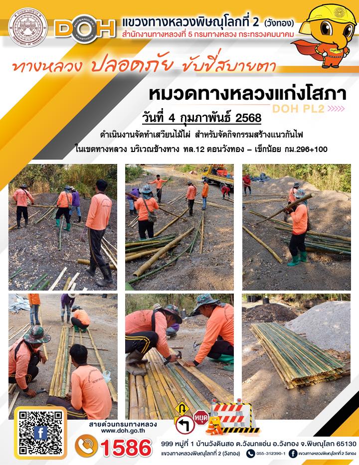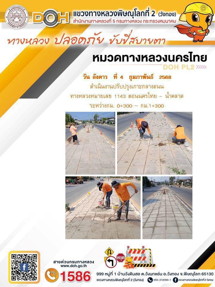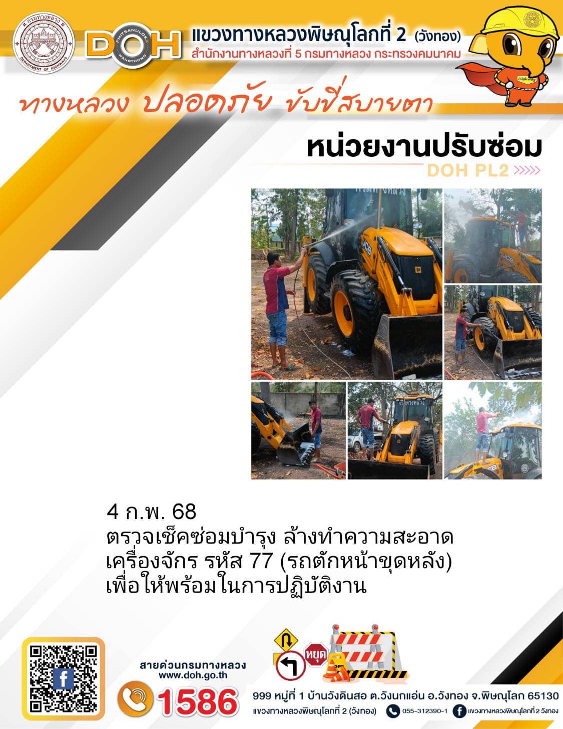 การปฏิบัติงานของ หมวดทางหลวง และ หน่วยงานในสังกัด เพื่ออำนวยความสะดวก และปลอดภัยให้กับประชาชนผู้ใช้เส้นทาง ประจำ วันอังคาร ที่ 4 กุมภาพันธ์ 2568
