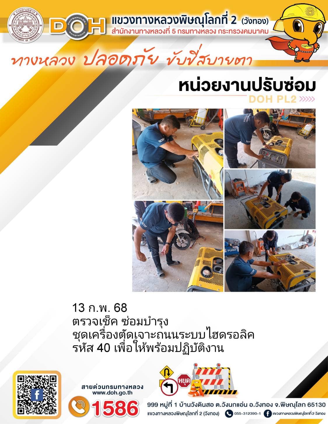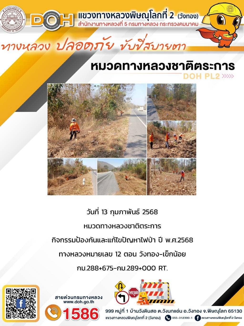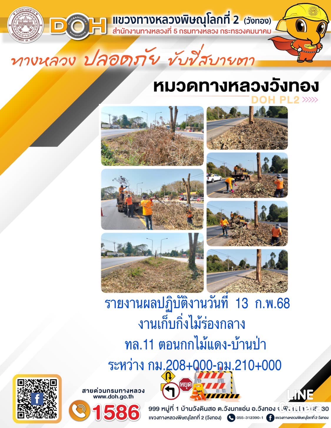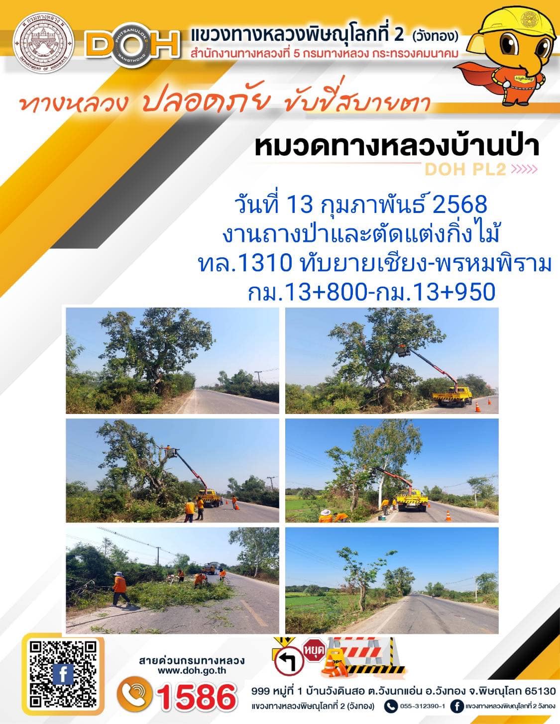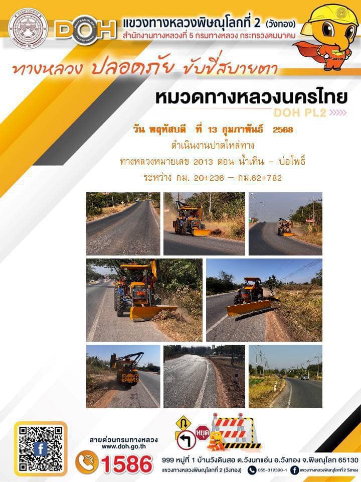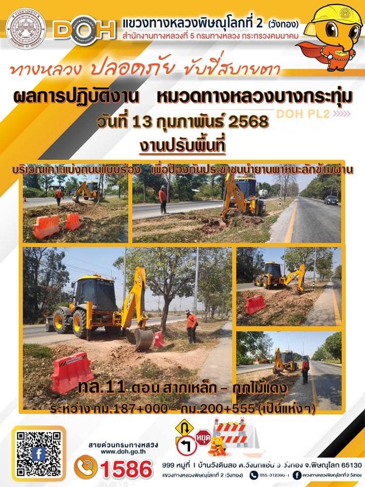 การปฏิบัติงานของ หมวดทางหลวง และ หน่วยงานในสังกัด เพื่ออำนวยความสะดวก และปลอดภัยให้กับประชาชนผู้ใช้เส้นทาง ประจำวันพฤหัสบดี ที่ 13 กุมภาพันธ์ 2568