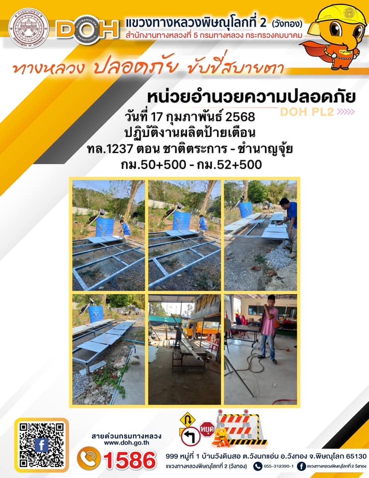 การปฏิบัติงานของ หมวดทางหลวง และ หน่วยงานในสังกัด เพื่ออำนวยความสะดวก และปลอดภัยให้กับประชาชนผู้ใช้เส้นทาง ประจำวันจันทร์ ที่ 17 กุมภาพันธ์ 2568