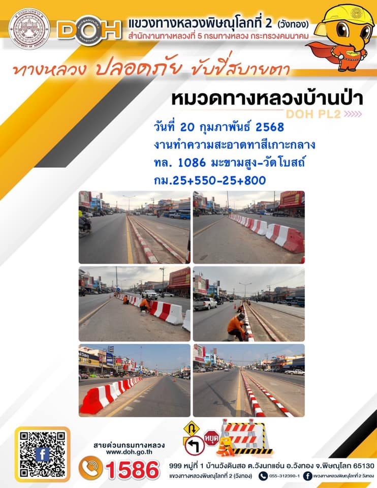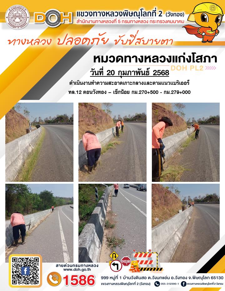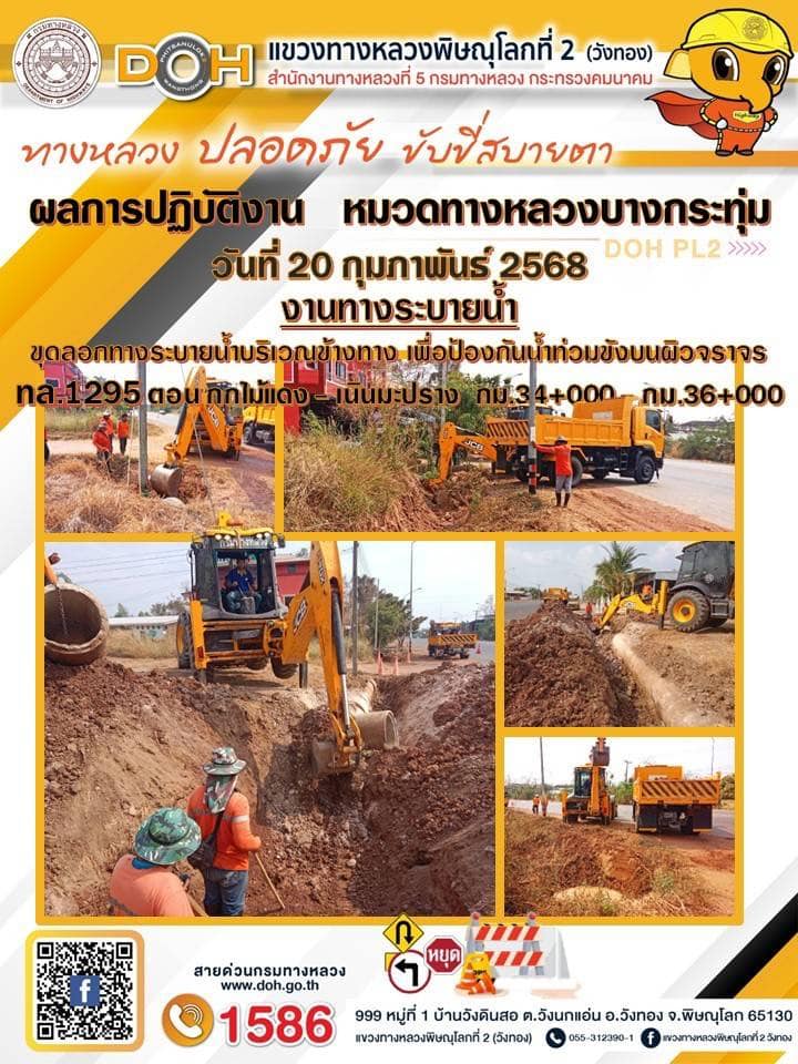 การปฏิบัติงานของ หมวดทางหลวง และ หน่วยงานในสังกัด เพื่ออำนวยความสะดวก และปลอดภัยให้กับประชาชนผู้ใช้เส้นทาง ประจำวันพฤหัสบดี ที่ 20 กุมภาพันธ์ 2568