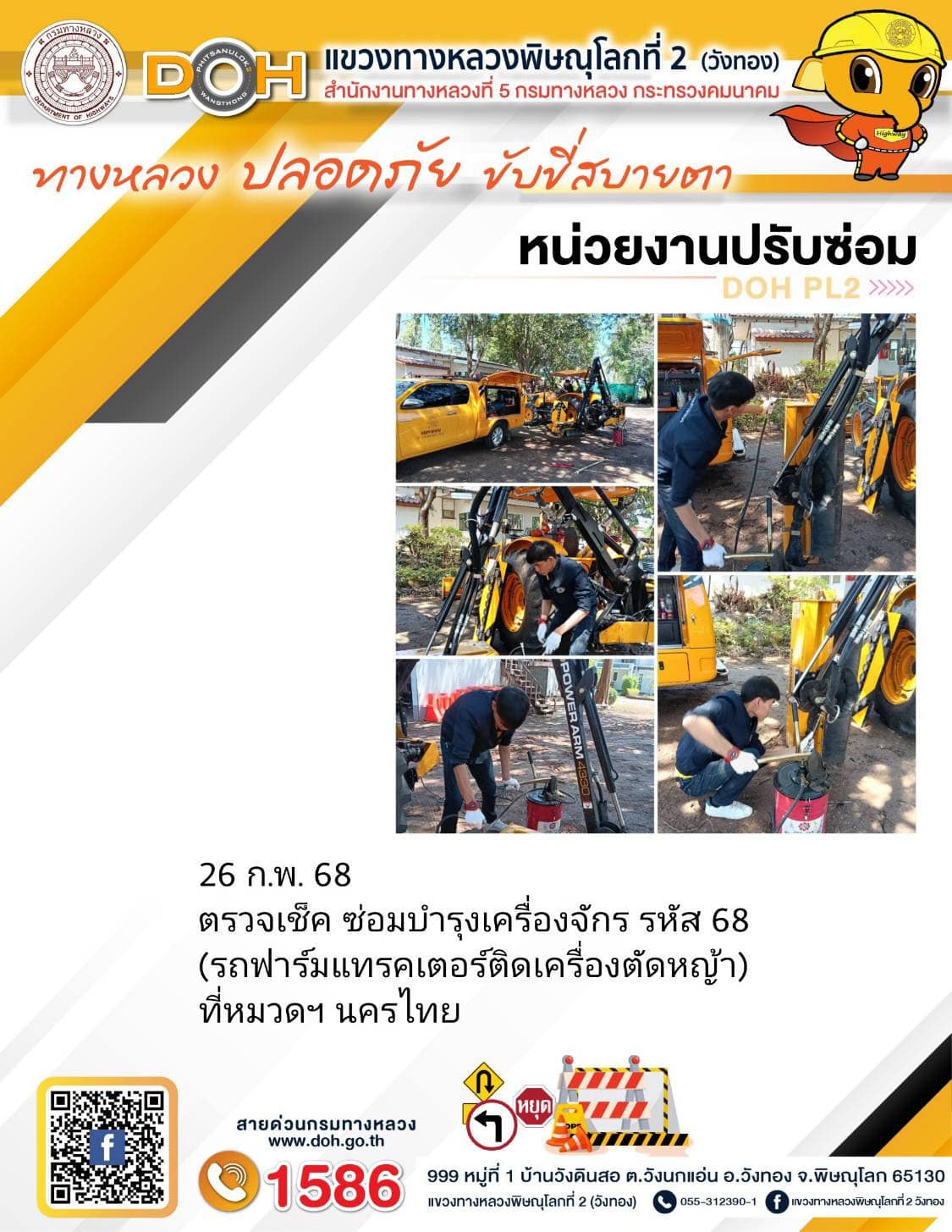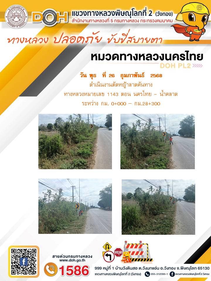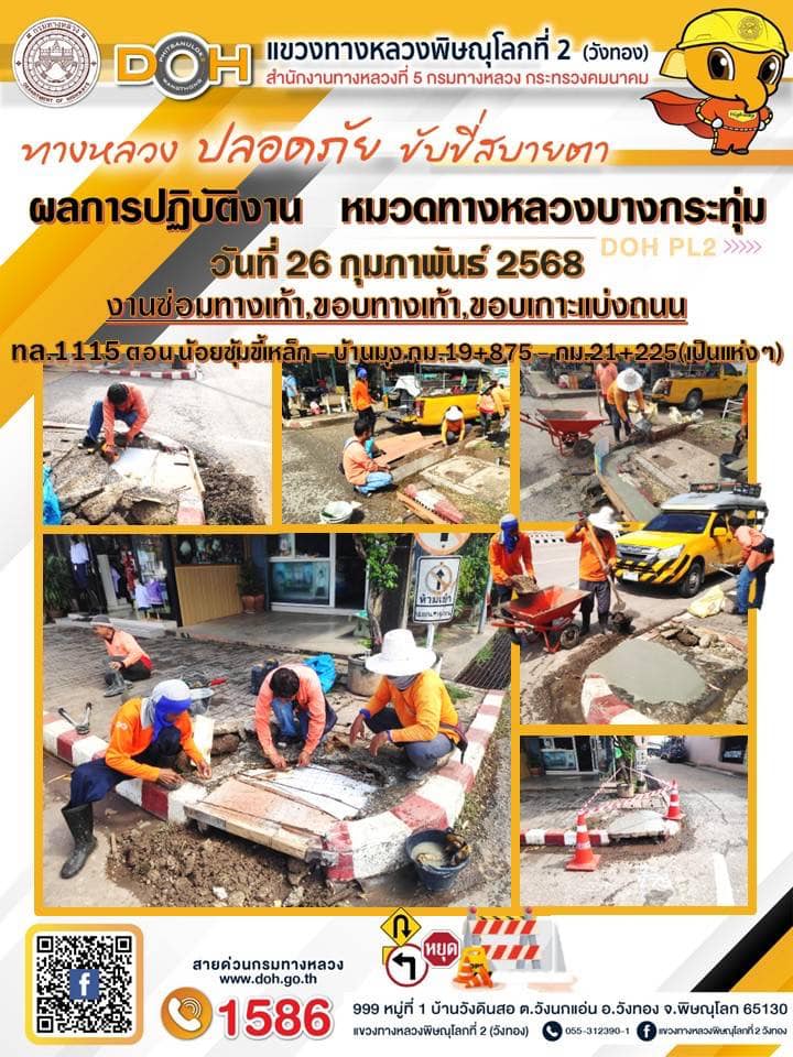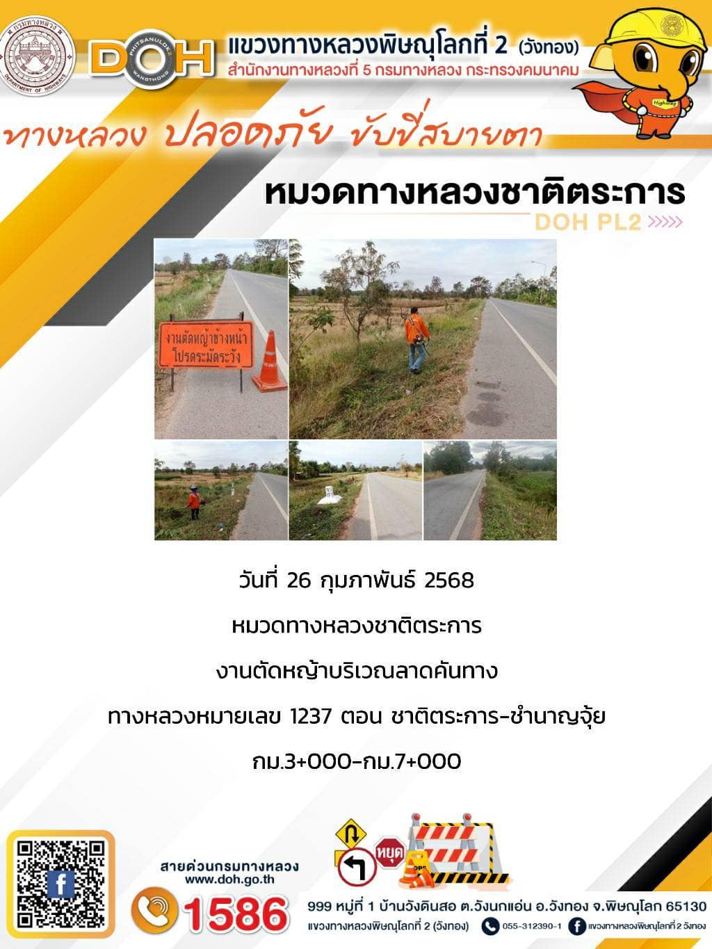 การปฏิบัติงานของ หมวดทางหลวง และ หน่วยงานในสังกัด เพื่ออำนวยความสะดวก และปลอดภัยให้กับประชาชนผู้ใช้เส้นทาง ประจำวันพุธ ที่ 26 กุมภาพันธ์ 2568