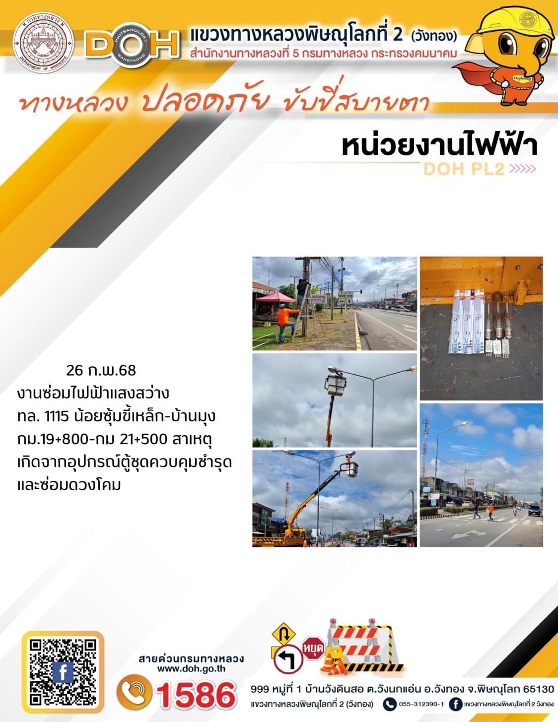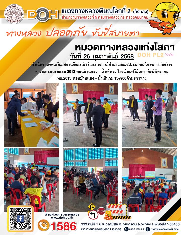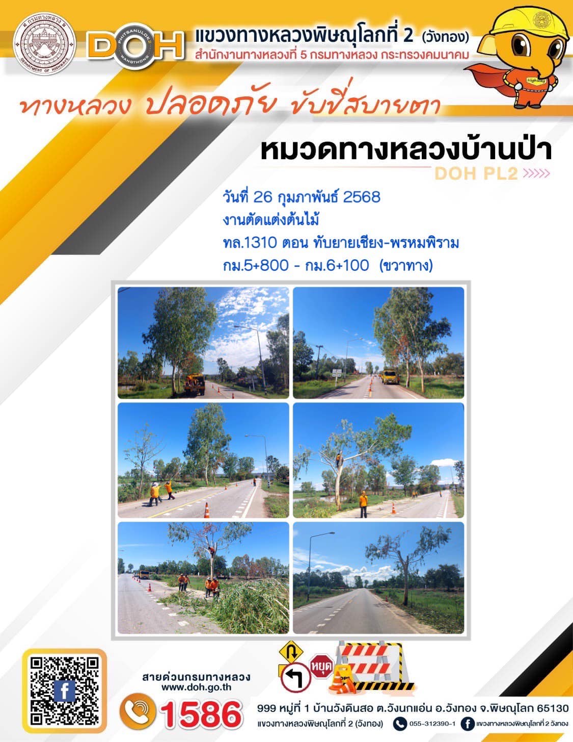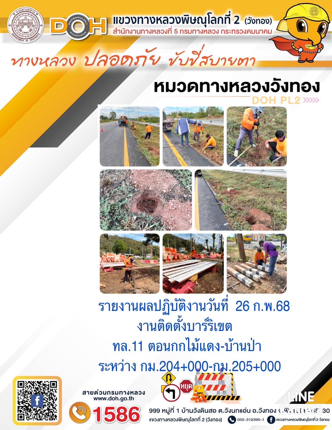 การปฏิบัติงานของ หมวดทางหลวง และ หน่วยงานในสังกัด เพื่ออำนวยความสะดวก และปลอดภัยให้กับประชาชนผู้ใช้เส้นทาง ประจำวันพุธ ที่ 26 กุมภาพันธ์ 2568