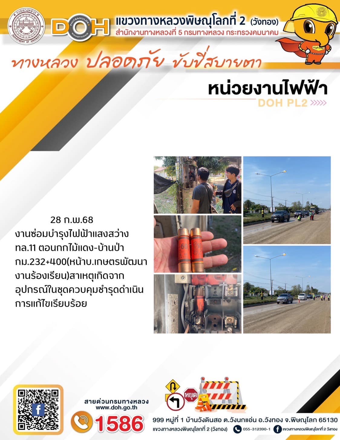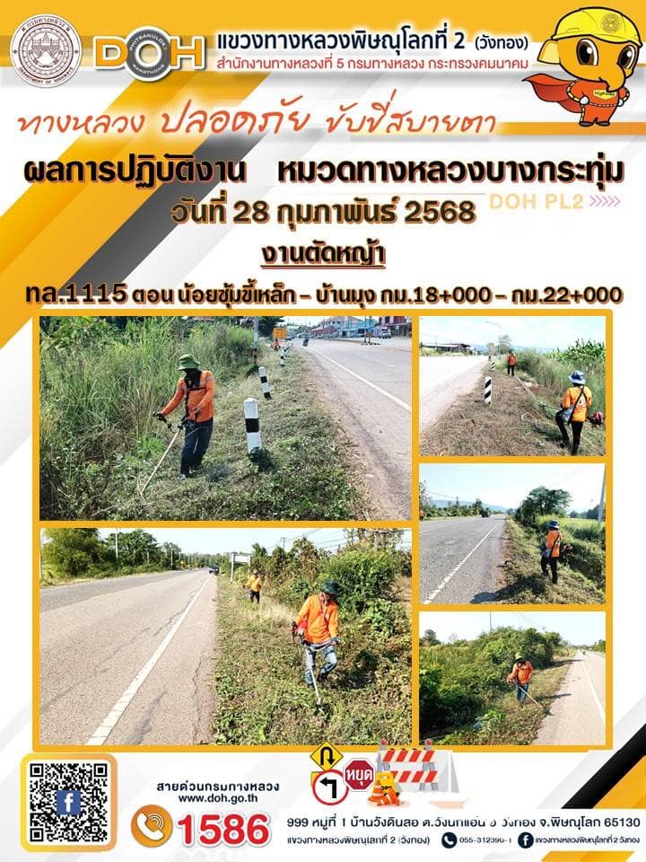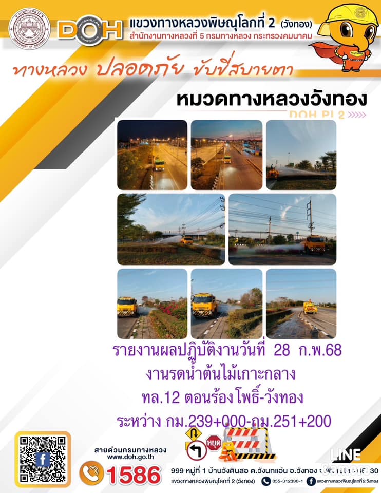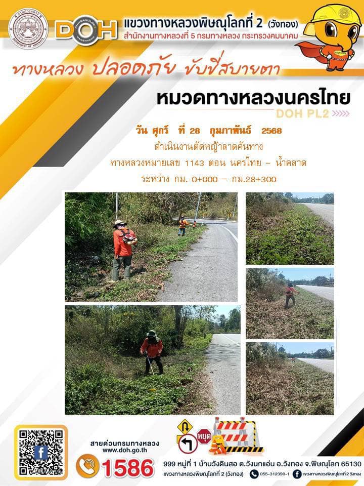 การปฏิบัติงานของ หมวดทางหลวง และ หน่วยงานในสังกัด เพื่ออำนวยความสะดวก และปลอดภัยให้กับประชาชนผู้ใช้เส้นทาง ประจำวันศุกร์ ที่ 28 กุมภาพันธ์ 2568