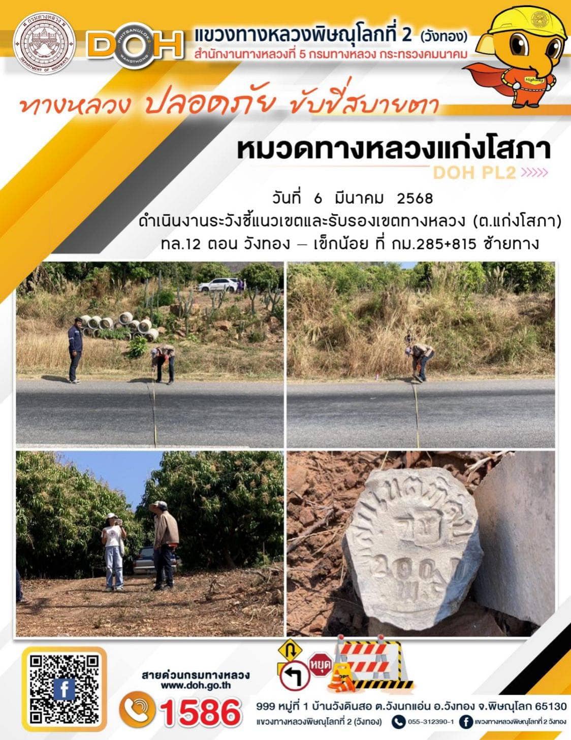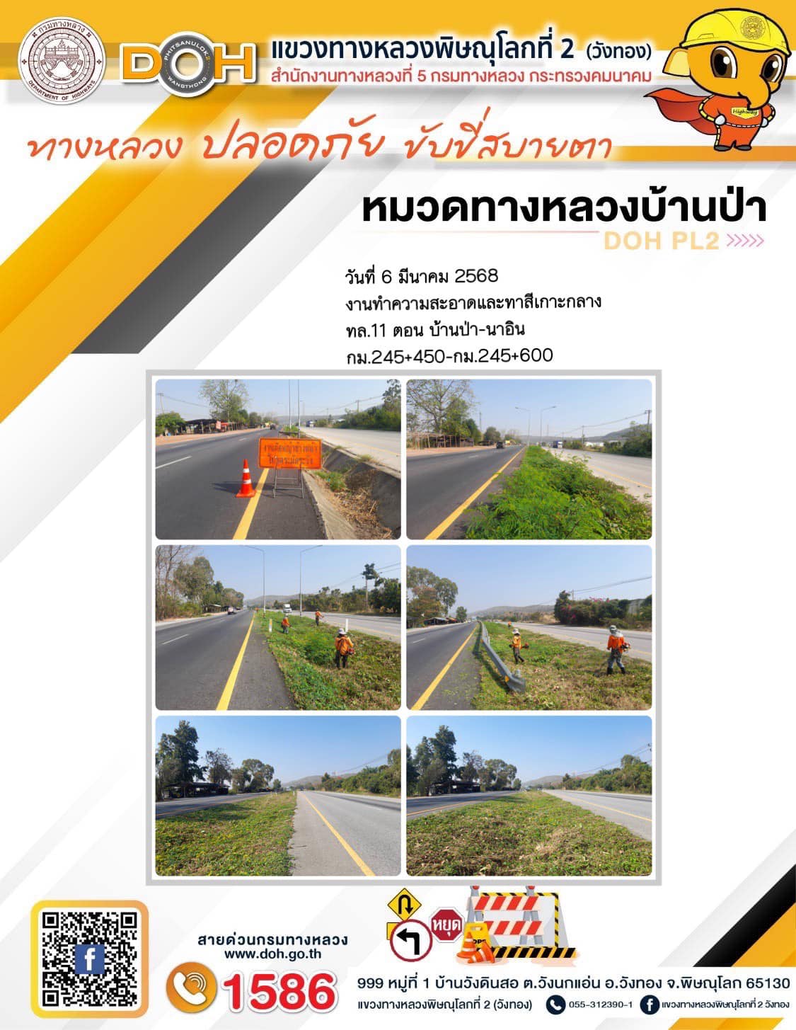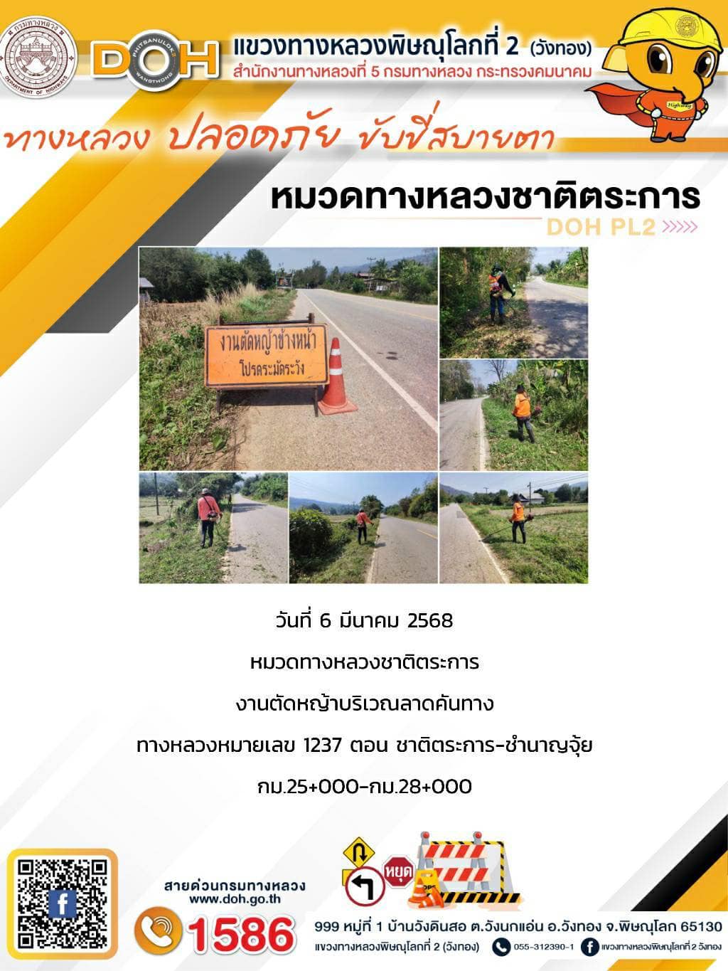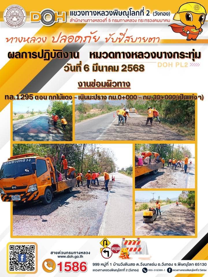 การปฏิบัติงานของ หมวดทางหลวง และ หน่วยงานในสังกัด เพื่ออำนวยความสะดวก และปลอดภัยให้กับประชาชนผู้ใช้เส้นทาง ประจำวันพฤหัสบดี ที่ 6 มีนาคม 2568