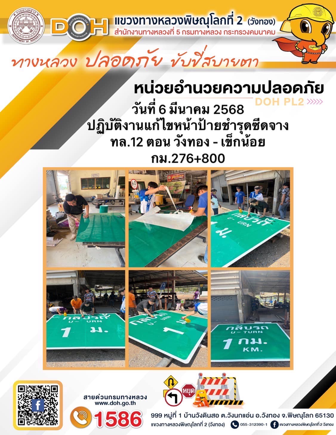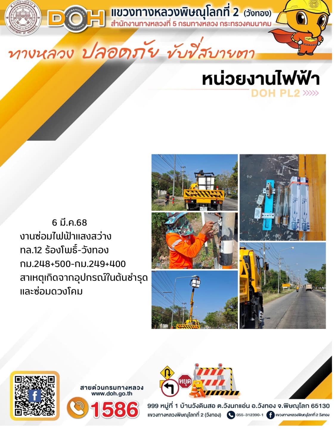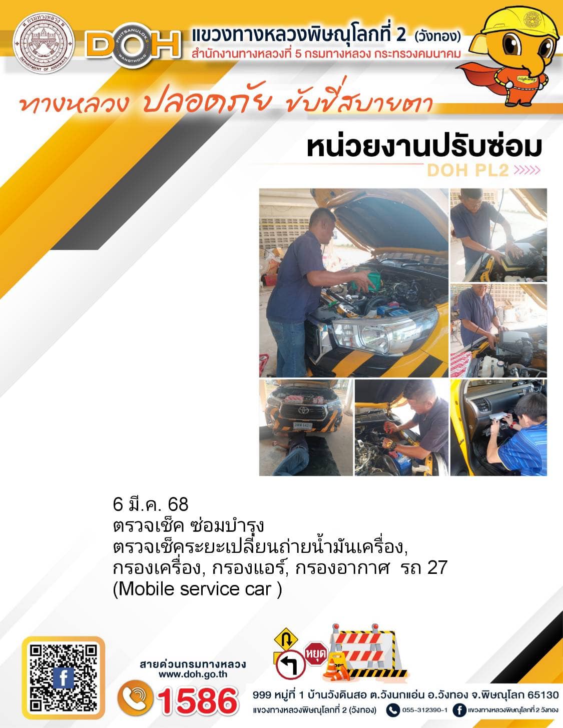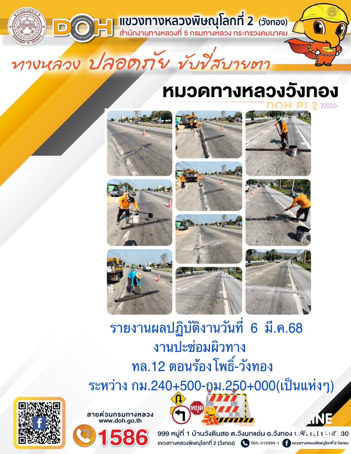 การปฏิบัติงานของ หมวดทางหลวง และ หน่วยงานในสังกัด เพื่ออำนวยความสะดวก และปลอดภัยให้กับประชาชนผู้ใช้เส้นทาง ประจำวันพฤหัสบดี ที่ 6 มีนาคม 2568