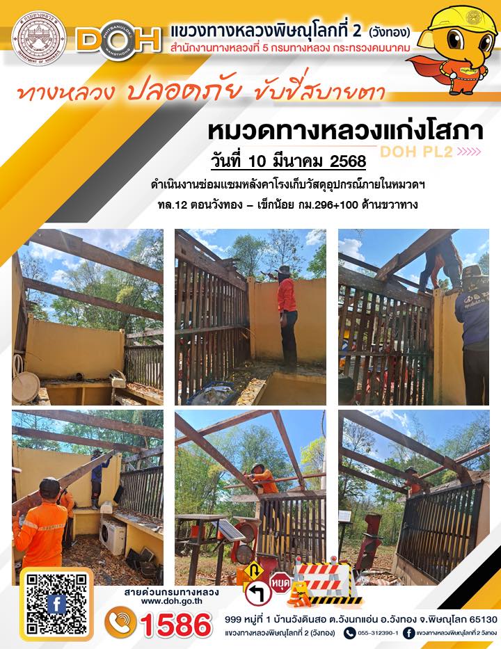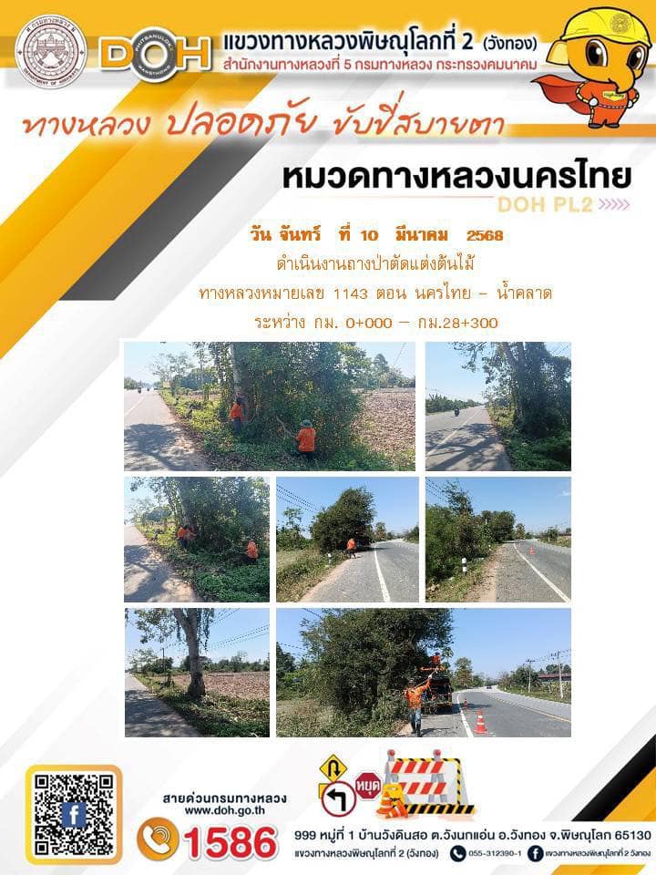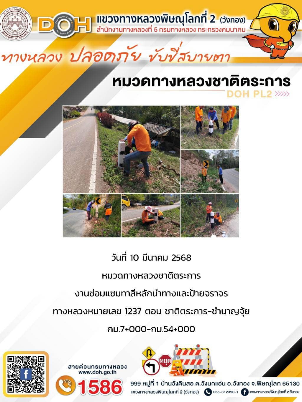 การปฏิบัติงานของ หมวดทางหลวง และ หน่วยงานในสังกัด เพื่ออำนวยความสะดวก และปลอดภัยให้กับประชาชนผู้ใช้เส้นทาง ประจำวันจันทร์ ที่ 10 มีนาคม 2568