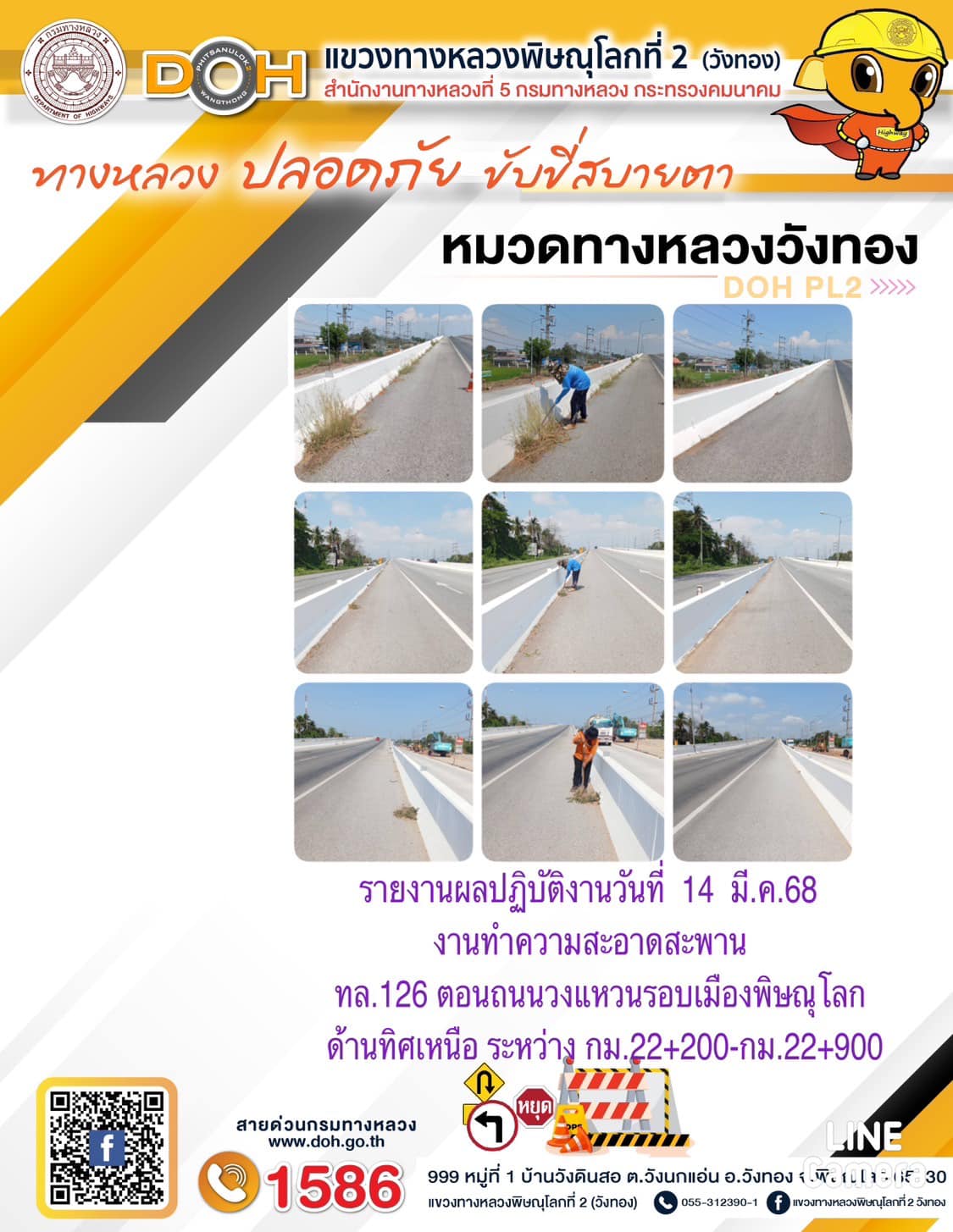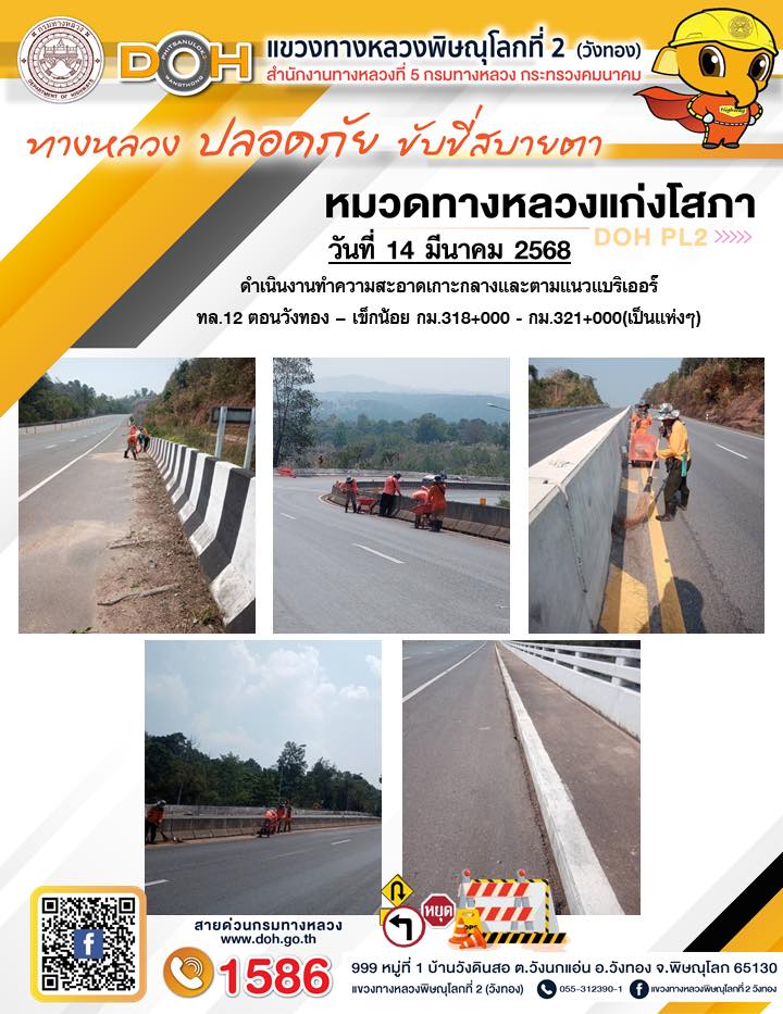 การปฏิบัติงานของ หมวดทางหลวง และ หน่วยงานในสังกัด เพื่ออำนวยความสะดวก และปลอดภัยให้กับประชาชนผู้ใช้เส้นทาง ประจำวันศุกร์ ที่ 14 มีนาคม 2568
