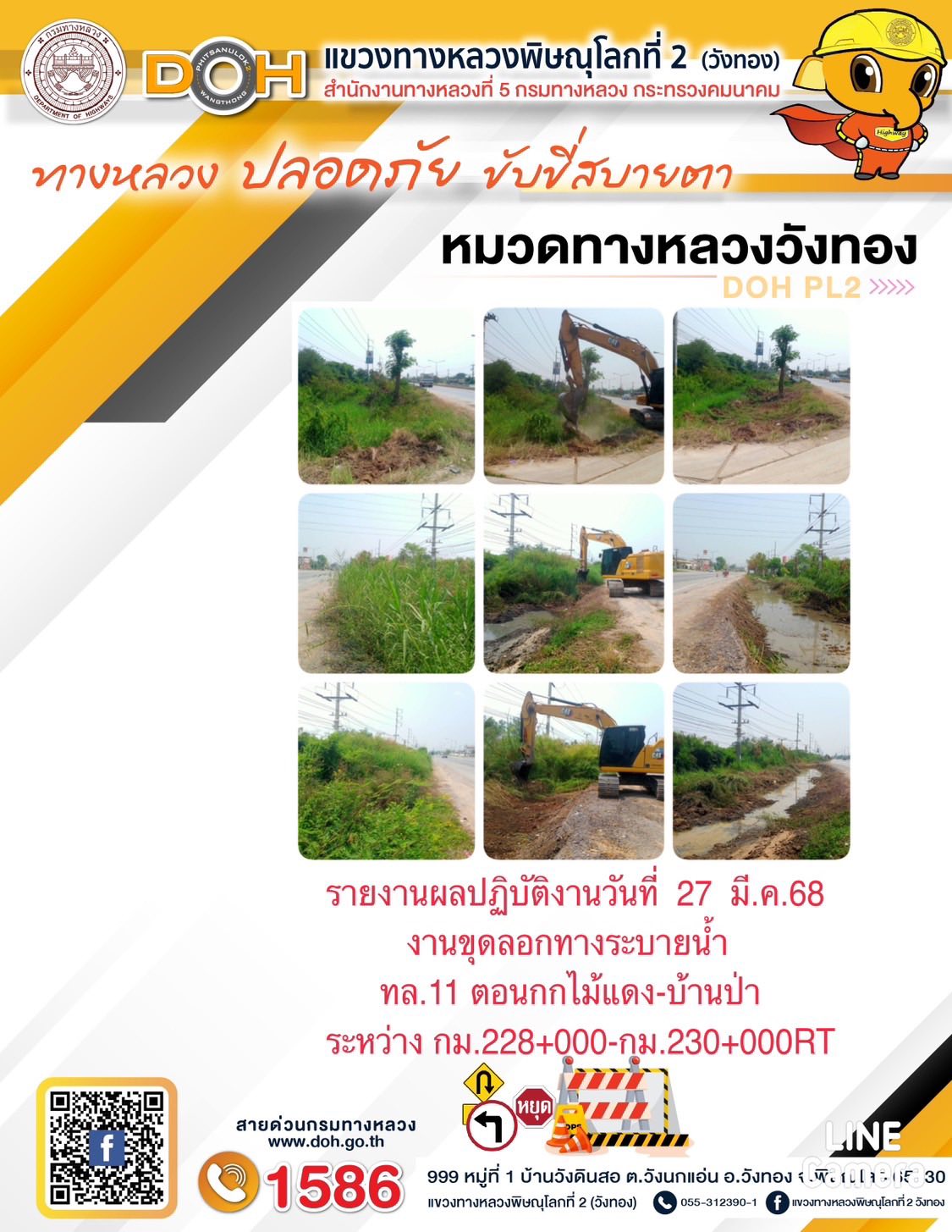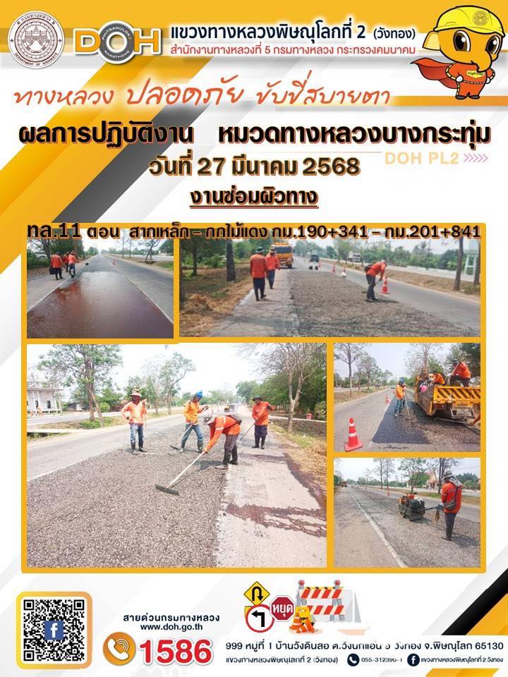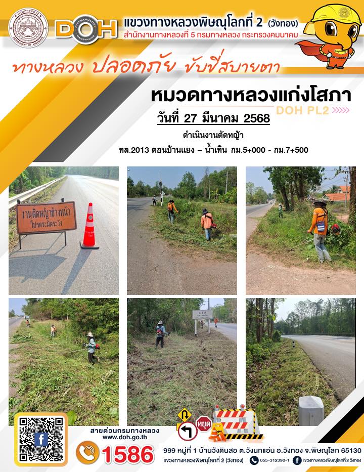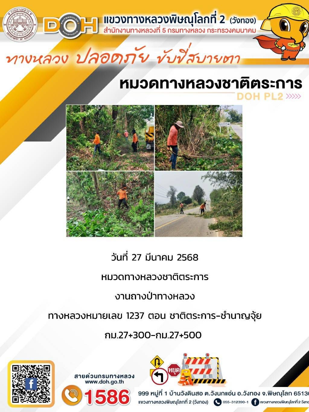 การปฏิบัติงานของ หมวดทางหลวง และ หน่วยงานในสังกัด เพื่ออำนวยความสะดวก และปลอดภัยให้กับประชาชนผู้ใช้เส้นทาง ประจำวันพฤหัสบดี ที่ 27 มีนาคม 2568