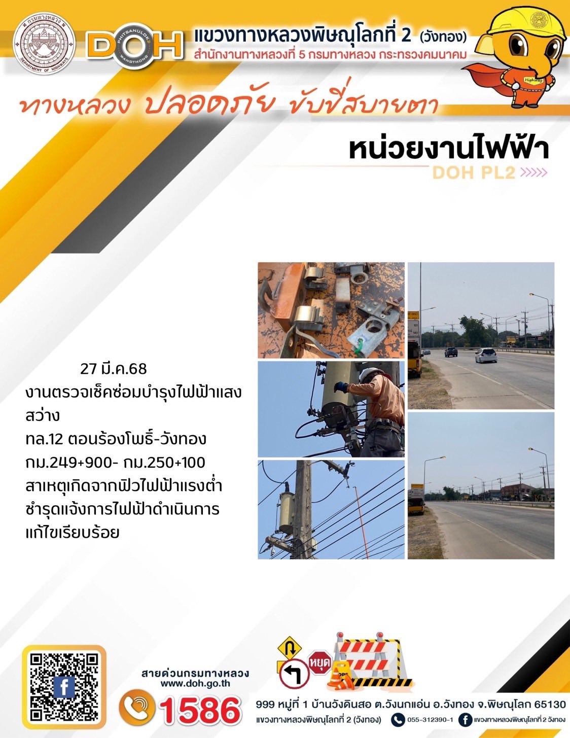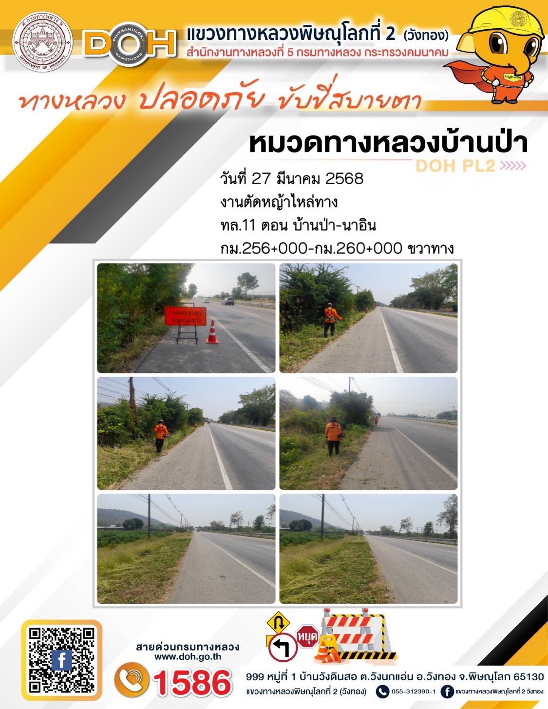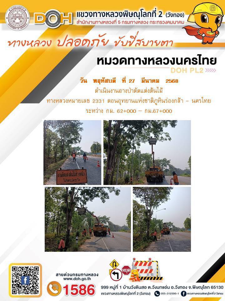 การปฏิบัติงานของ หมวดทางหลวง และ หน่วยงานในสังกัด เพื่ออำนวยความสะดวก และปลอดภัยให้กับประชาชนผู้ใช้เส้นทาง ประจำวันพฤหัสบดี ที่ 27 มีนาคม 2568