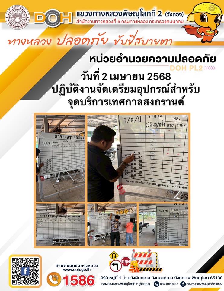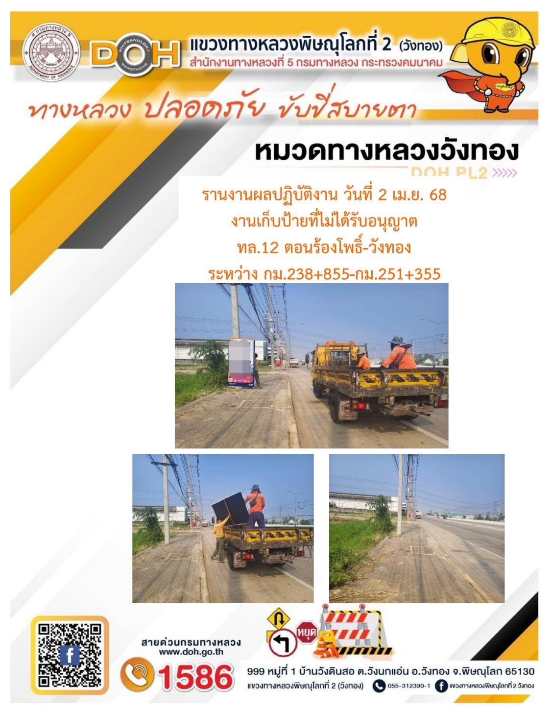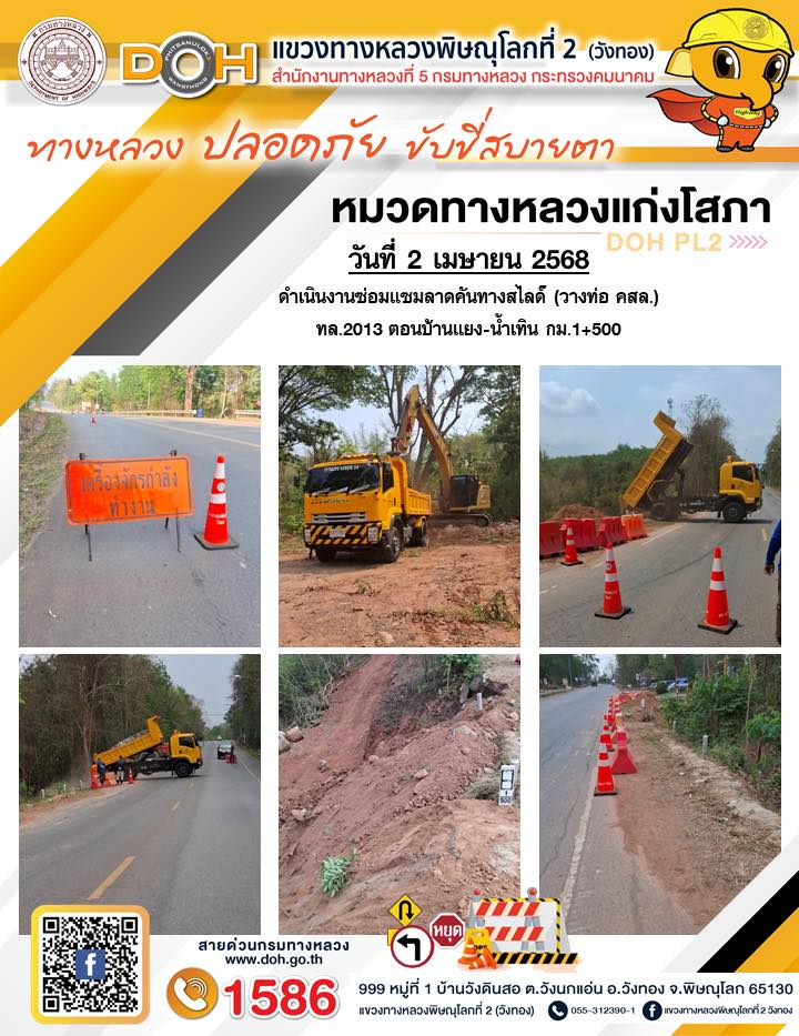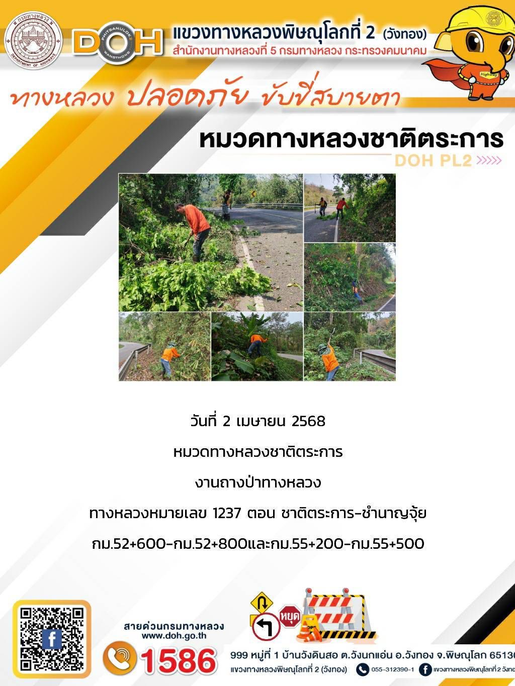 การปฏิบัติงานของ หมวดทางหลวง และ หน่วยงานในสังกัด เพื่ออำนวยความสะดวก และปลอดภัยให้กับประชาชนผู้ใช้เส้นทาง ประจำวันพุธ ที่ 2 เมษายน 2568