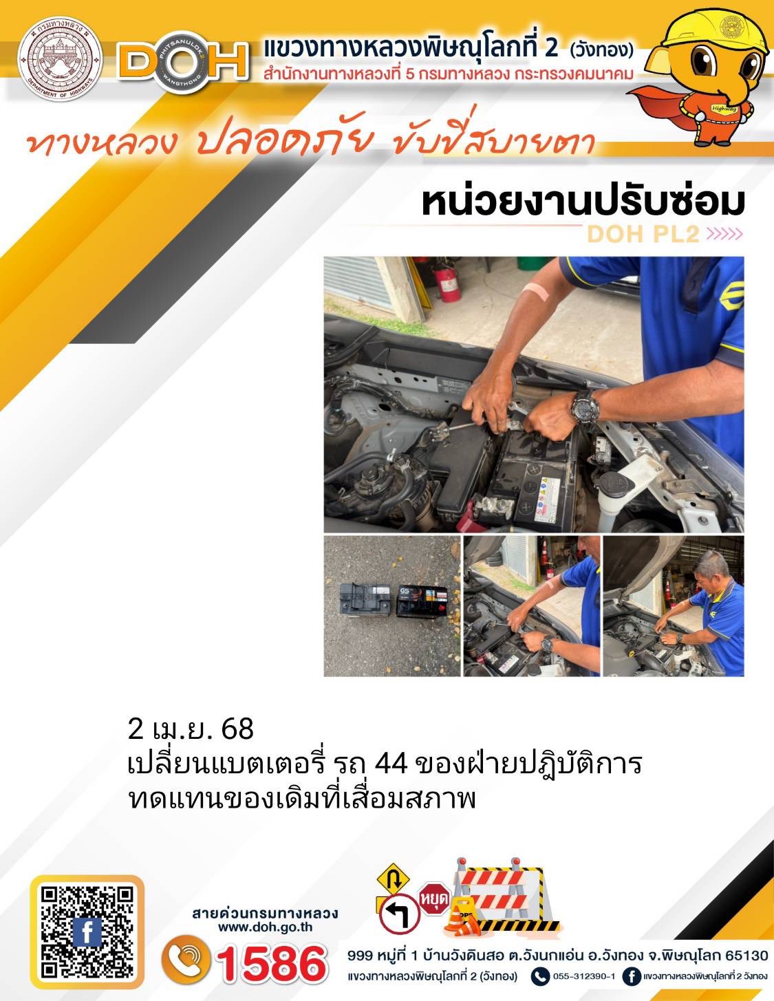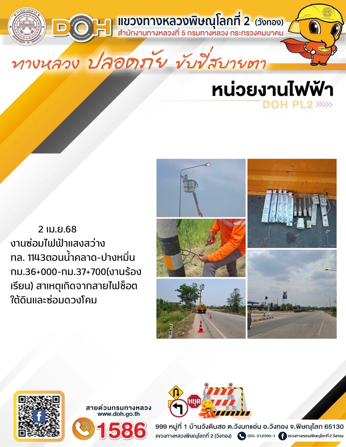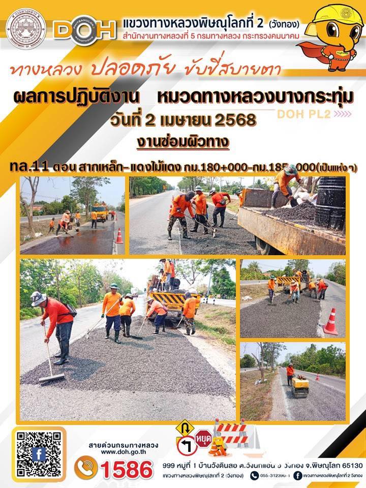 การปฏิบัติงานของ หมวดทางหลวง และ หน่วยงานในสังกัด เพื่ออำนวยความสะดวก และปลอดภัยให้กับประชาชนผู้ใช้เส้นทาง ประจำวันพุธ ที่ 2 เมษายน 2568