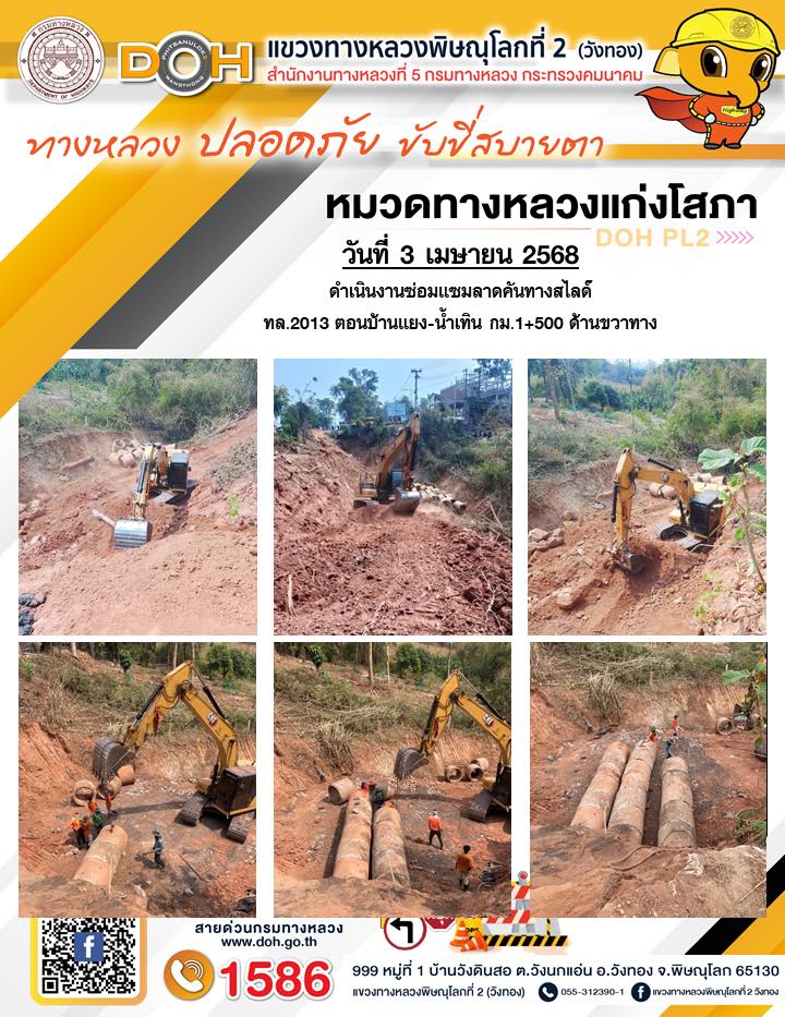 การปฏิบัติงานของ หมวดทางหลวง และ หน่วยงานในสังกัด เพื่ออำนวยความสะดวก และปลอดภัยให้กับประชาชนผู้ใช้เส้นทาง ประจำวันพฤหัสบดี ที่ 3 เมษายน 2568
