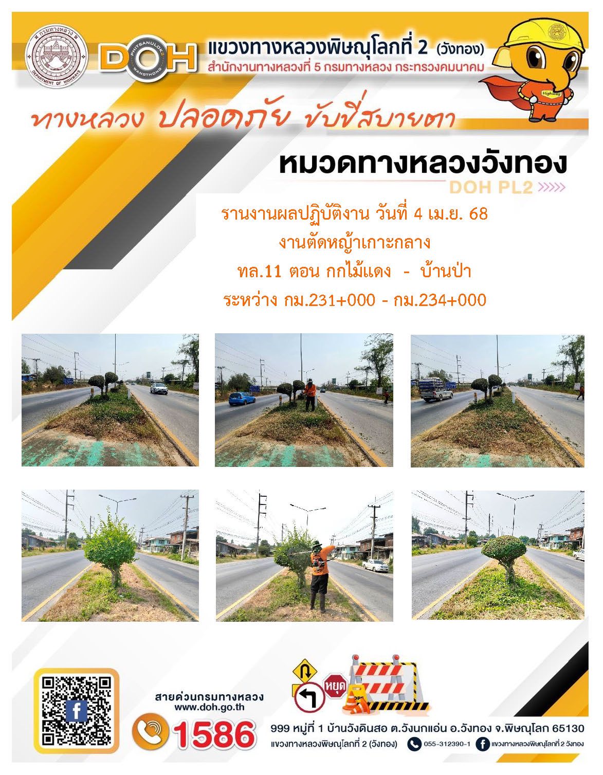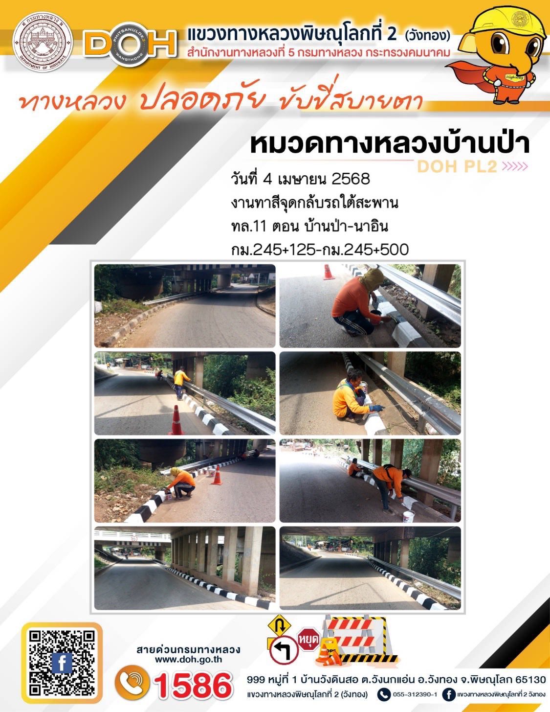 การปฏิบัติงานของ หมวดทางหลวง และ หน่วยงานในสังกัด เพื่ออำนวยความสะดวก และปลอดภัยให้กับประชาชนผู้ใช้เส้นทาง ประจำวันศุกร์ ที่ 4 เมษายน 2568