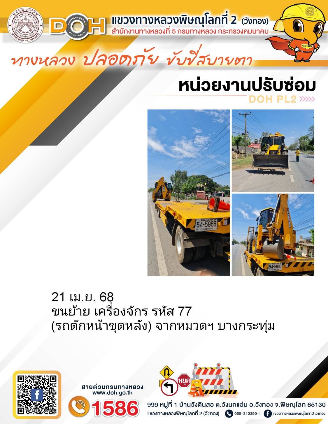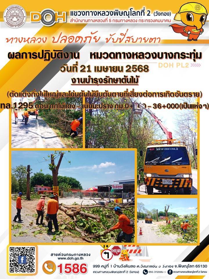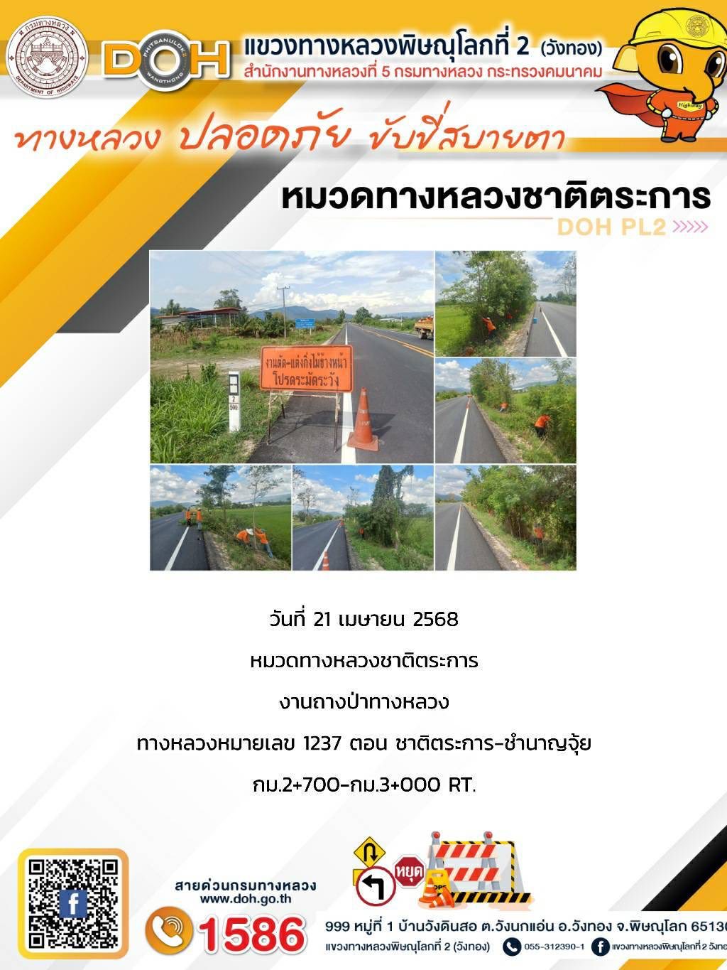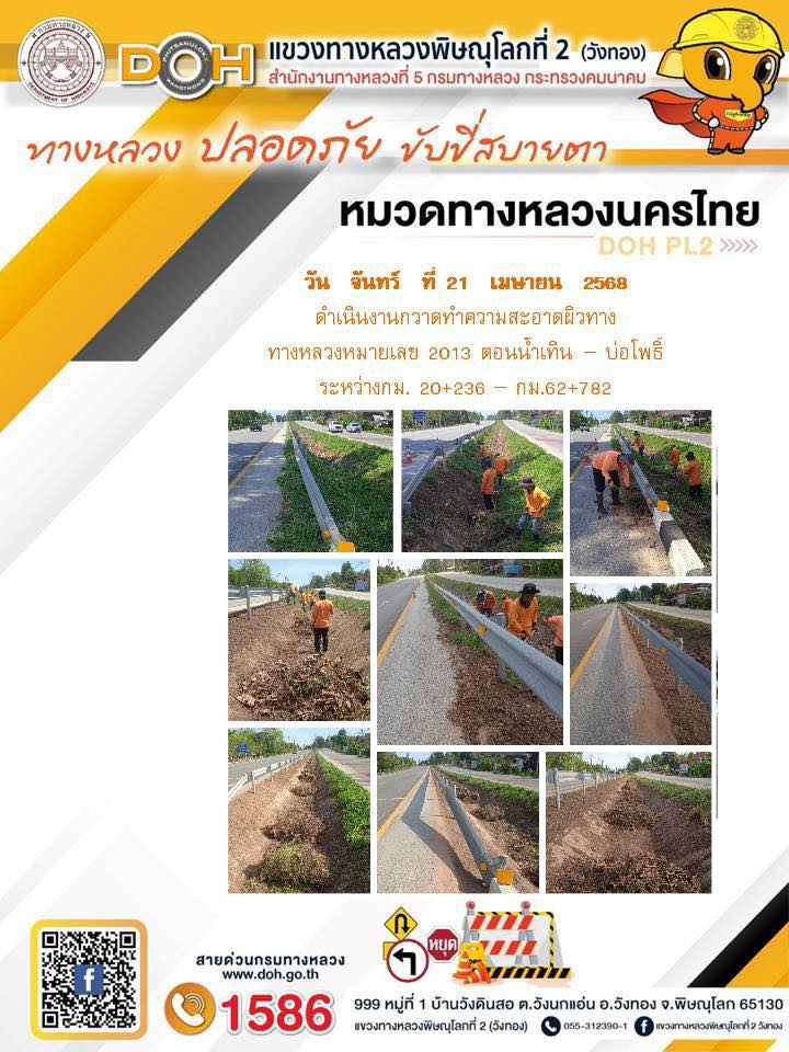 การปฏิบัติงานของ หมวดทางหลวง และ หน่วยงานในสังกัด เพื่ออำนวยความสะดวก และปลอดภัยให้กับประชาชนผู้ใช้เส้นทาง ประจำวันจันทร์ ที่ 21 เมษายน 2568